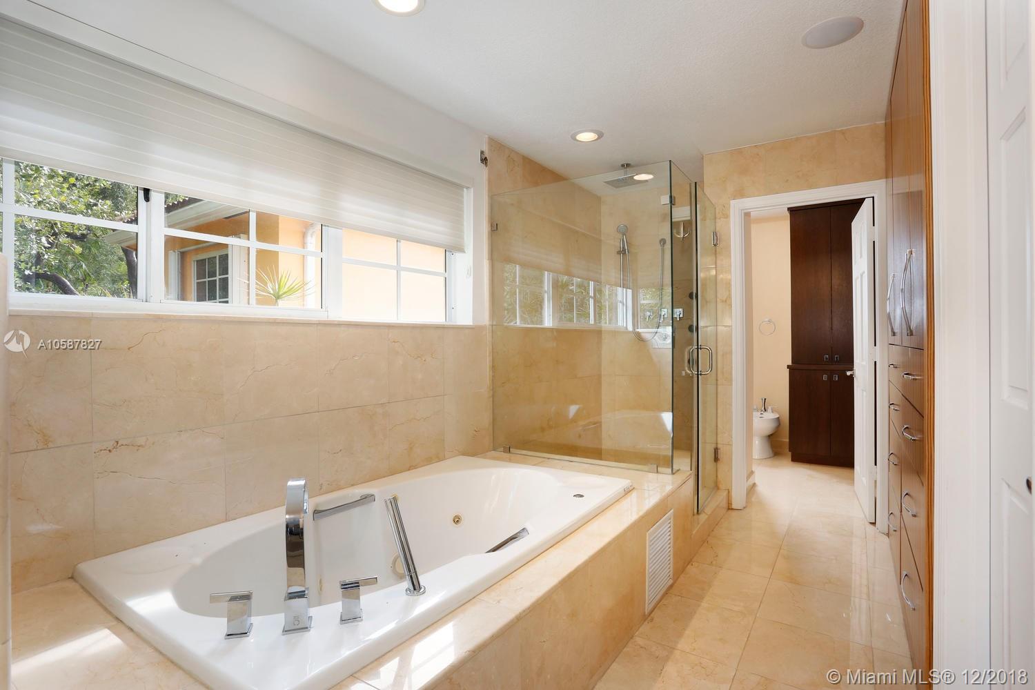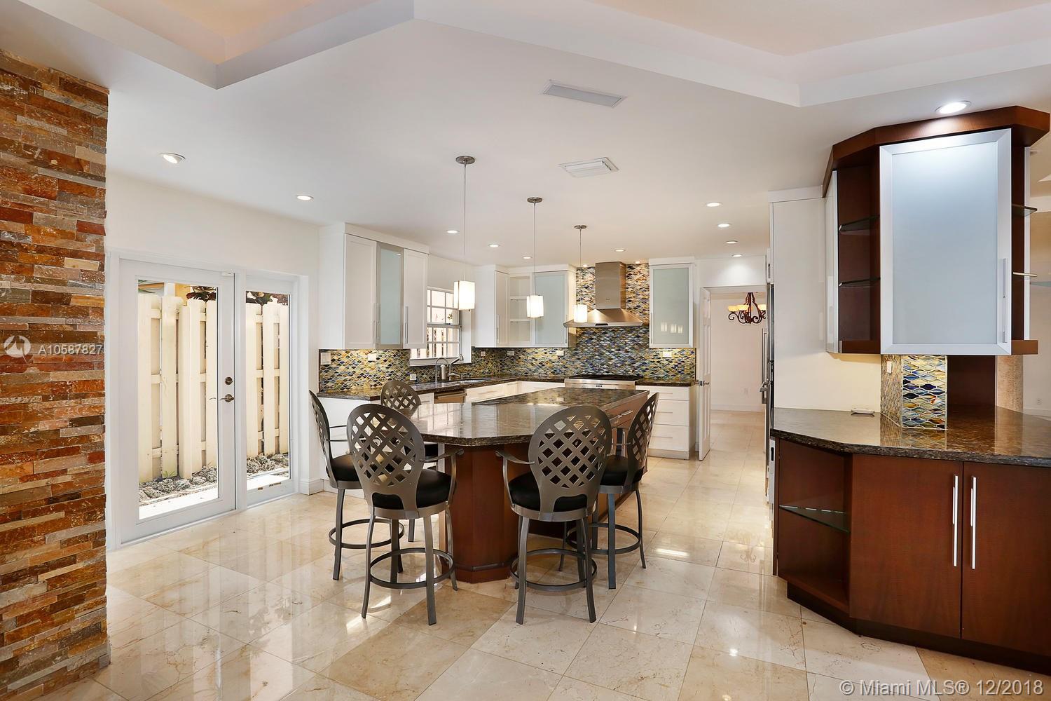 Live the Grove lifestyle in this lovely, gated home located at one of the highest elevations in Miami (not in a flood zone) yet just a short walk to bayfront parks & marinas. Light-filled living spaces w/ volume ceilings, stone & wood floors, custom built-ins and impact doors throughout. Expansive euro-style kitchen (updated/2012) features wood cabinetry, granite countertops, gas range, stainless appliances (including wine refrigeration) & large center island w/seating. Adjacent family room opens to recently renovated patio & tropical pool w/waterfall. Downstairs guest suite & 2nd level: 3 BR’s, including luxurious master suite that features sitting area, marble bath & large private terrace. Minutes to the Grove village and close to downtown, Coral Gables, Key Biscayne, MIA & the Beaches.