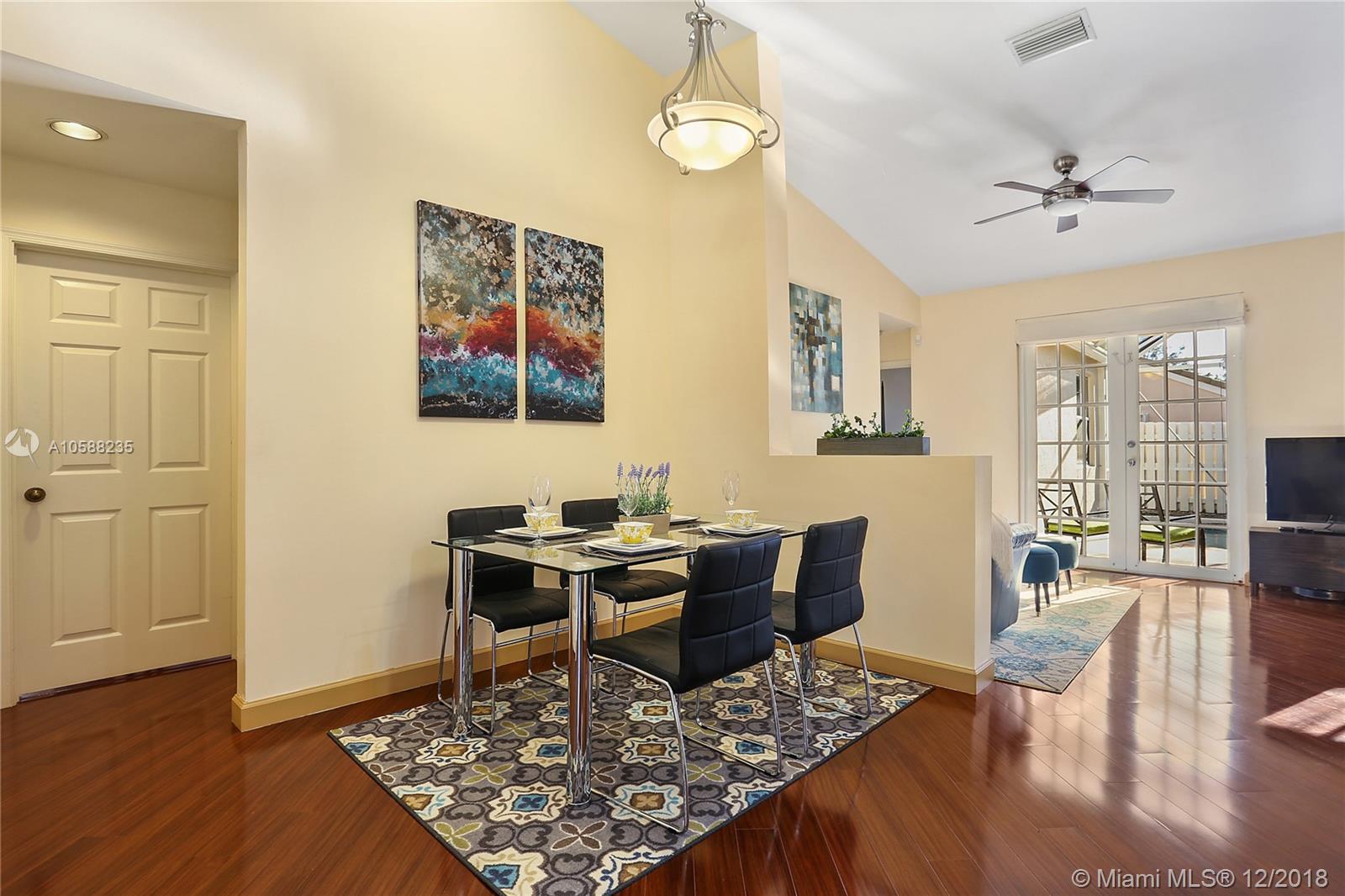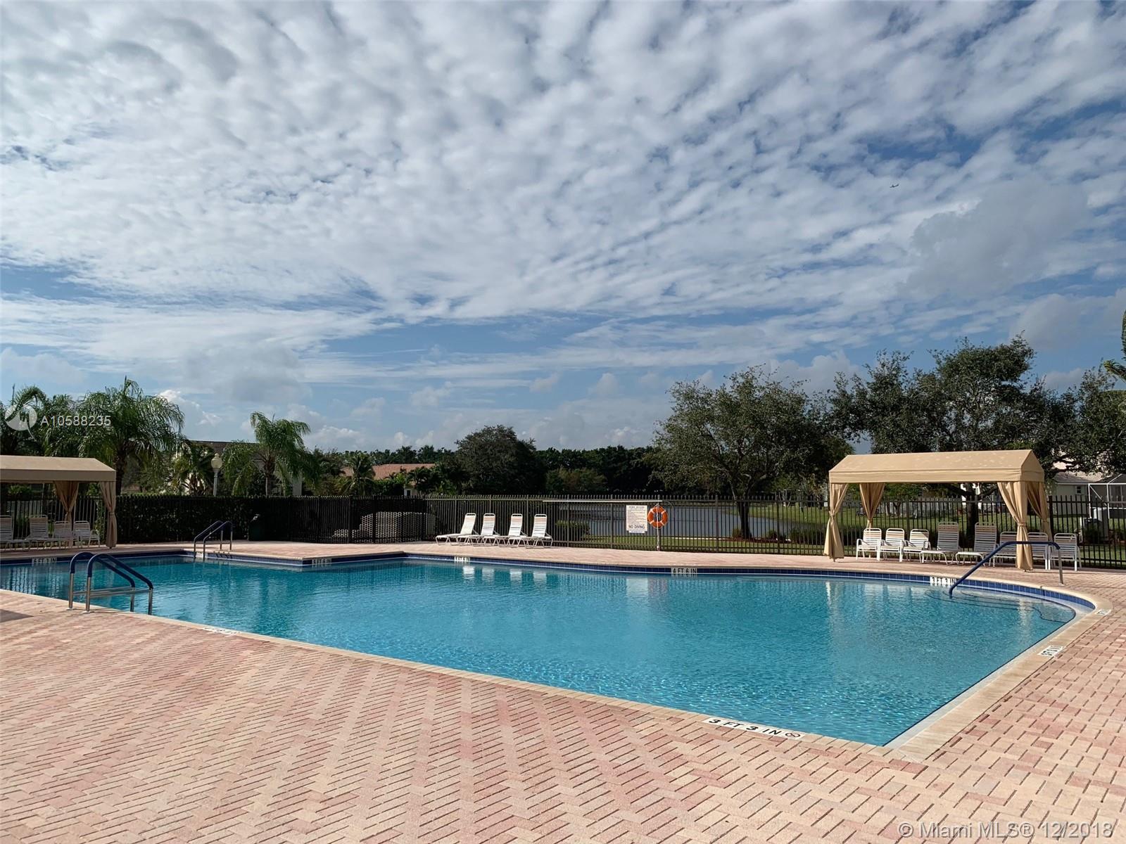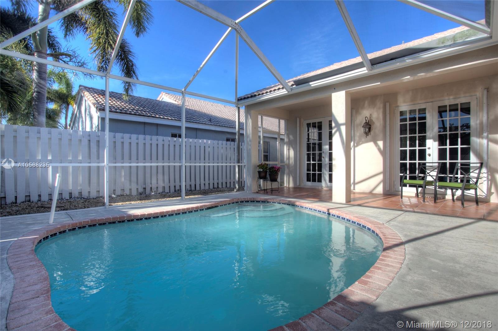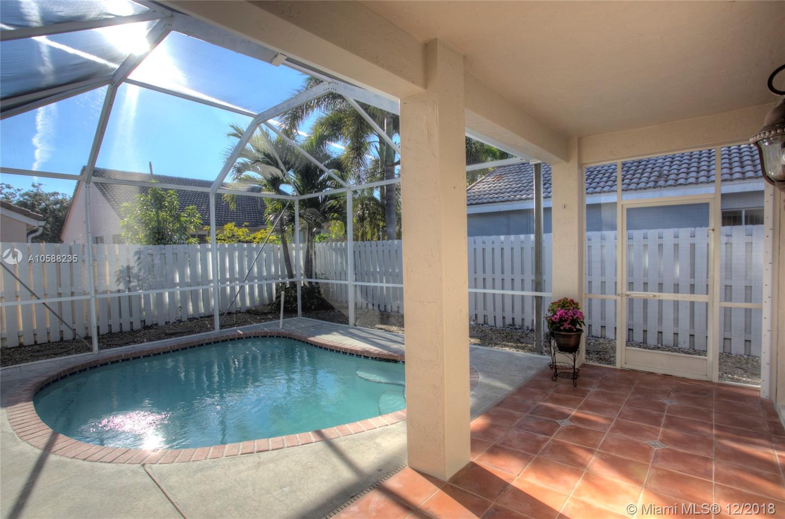 R.A.R.E find - Immaculate 3 bedroom 2 baths POOL home in The Falls gated community boasts beaming wood laminate floors throughout (tiles in bathrooms/laundry). The chef's kitchen features upgraded elegant wood cabinets, granite countertops & newer stainless steel appliances. Beautiful french doors opens up to a relaxing private pool area with screened in patio perfect for Al Fresco dining & relaxation! Sprinkler system. Hurricane Panels. Freshly painted. Steps away from the ultimate recreational facilities - community pool, basketball court, large green field, volleyball court and walking paths. Location is highly desirable with proximity to I75, grocery stores, coffee shop, restaurants, gas station, banks. Walking distance to Eagle Point Elem. & biking distance to Tequesta Trace Middle.