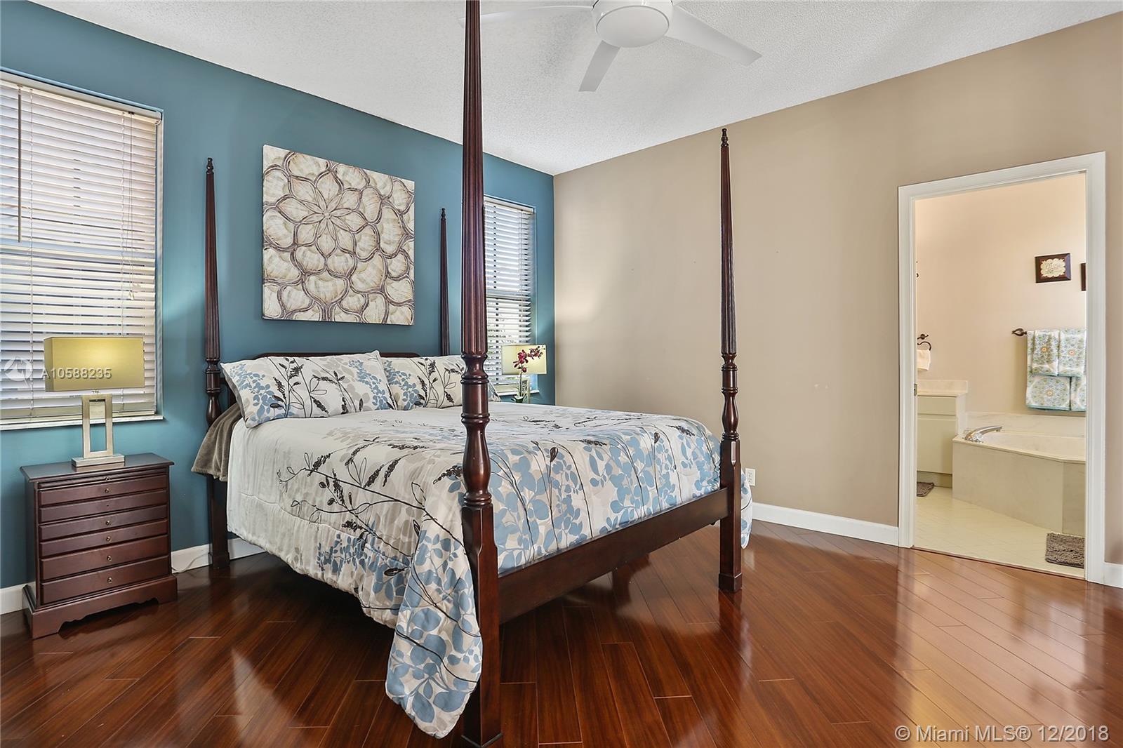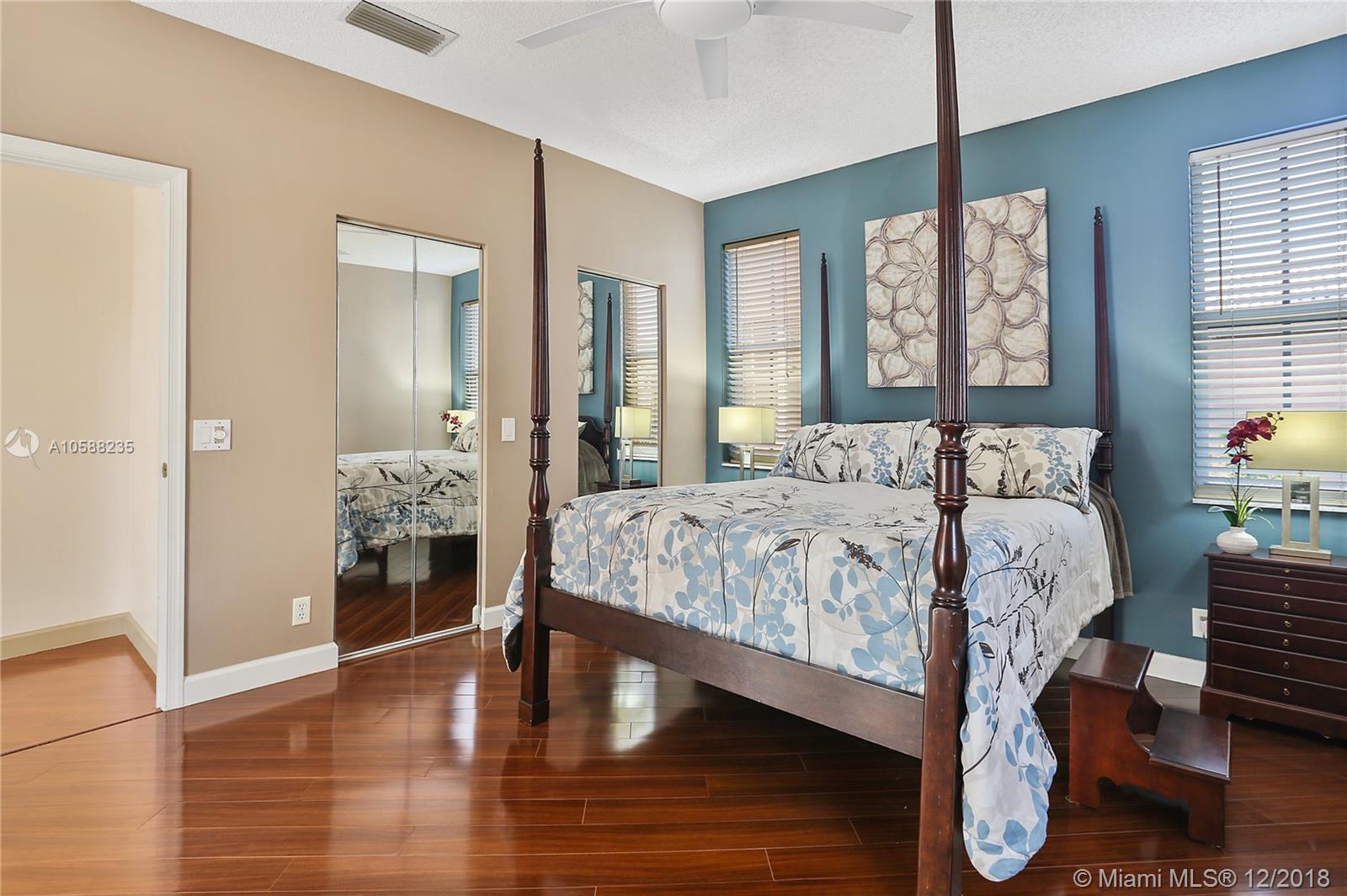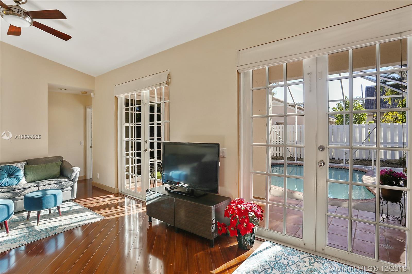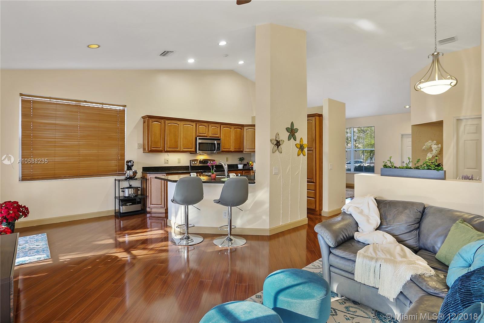 R.A.R.E find - Immaculate 3 bedroom 2 baths POOL home in The Falls gated community boasts beaming wood laminate floors throughout (tiles in bathrooms/laundry). The chef's kitchen features upgraded elegant wood cabinets, granite countertops & newer stainless steel appliances. Beautiful french doors opens up to a relaxing private pool area with screened in patio perfect for Al Fresco dining & relaxation! Sprinkler system. Hurricane Panels. Freshly painted. Steps away from the ultimate recreational facilities - community pool, basketball court, large green field, volleyball court and walking paths. Location is highly desirable with proximity to I75, grocery stores, coffee shop, restaurants, gas station, banks. Walking distance to Eagle Point Elem. & biking distance to Tequesta Trace Middle.