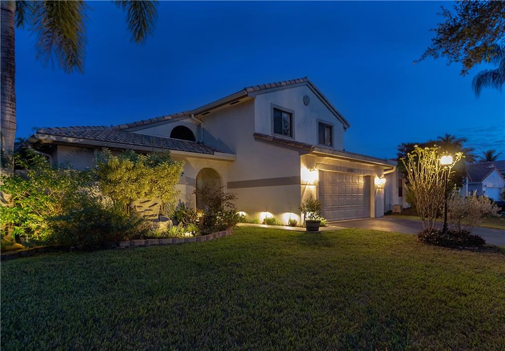 Beautiful 2-story, pool home on corner lot in one of most sought after neighborhoods in Davie. Freshly painted. Updated kitchen complete w/granite countertops, wood cabinetry, lg breakfast bar & huge pantry. 2.5 spa-inspired updated bathrooms, lg master bedroom downstairs featuring a remodeled master bath complete w/custom cabinets, vintage-style bath tub, gorgeous walk-in shower with frameless bathroom doors. Unique floorplan includes a loft that can be easily converted into 4th bedroom. 3rd bedroom is currently a home office. This home also features an oversized covered patio & large pool w/decorative tile & an eternity waterfall. Roof 2016. This home is also complete w/accordion shutters & impact glass for your protection. All surrounded by lush landscape & wood privacy fence.