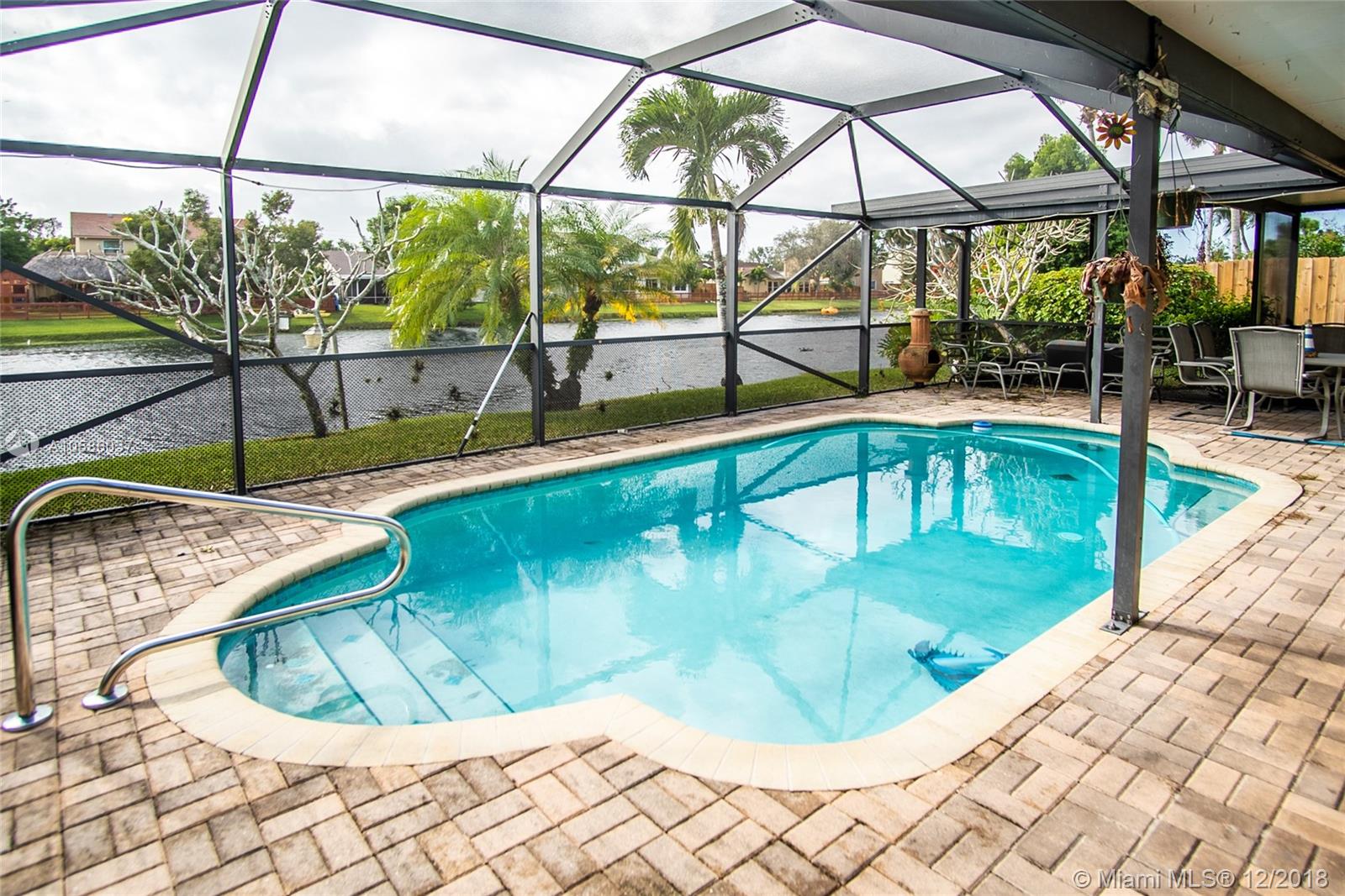 Lovely three bedroom two bathroom pool home on lake with two car garage. The roof was replaced in 2018 and has a transferable warranty, the central a/c system was replaced approximately four years ago. Home was built in 1993 and has accordian shutters to provide storm protection. Open living room with vaulted ceilings looking out over pool and lake. Enjoy the water view and fishing as you watch the sunset right from your backyard. This property has enough room for your children and pets to play. Roof and a/c warranties attached. Fully fenced, walking distance to Publix, close proximity to Turnpike and thirty minutes to beaches!