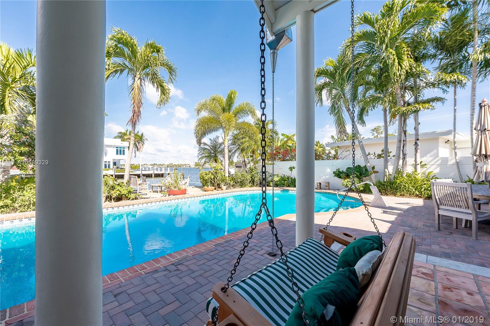 Ft. Lauderdale, 80' waterfront property in Lauderdale Harbor on a wide & deep canal less than 1 mile from open ocean access. It boasts a wide open floor plan, water views from almost every room, dock with two 50 amp power for up to 70' yacht, kitchen with island, living areas with impressive high vaulted ceilings, a fireplace, dining room, extra office and library. An open staircase leads to your master suite complete with his and hers walk-in closets, additional sitting area and a private waterfront terrace with stunning water views towards the Intracoastal. A ground floor bedR is currently used as 2nd office with french doors leading to the pool area, 3rd bedR has access to private & tropical courtyard. Other features are waterfront pool, impact windows, large utility room & art studio.