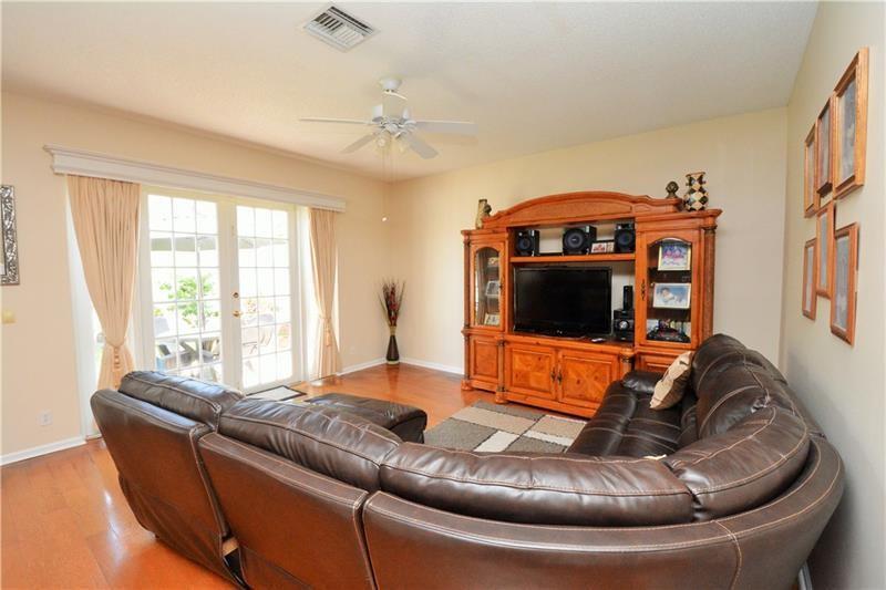 Beautiful home in Silver Shores. Featuring real wood floors on upper and lower level. Completely remodeled half bath with new sink. Newer A/C unit. Accordion shutters, for hassle-free protection. Upgraded lighting throughout. Decorative window cornices. Totally upgraded kitchen with granite counter tops, stainless steel appliances, snack bar, and breakfast area. Beautiful French doors open to private backyard. Custom poured landscape borders. The backyard is fenced with durable PVC material. Do not miss this gem of a home.