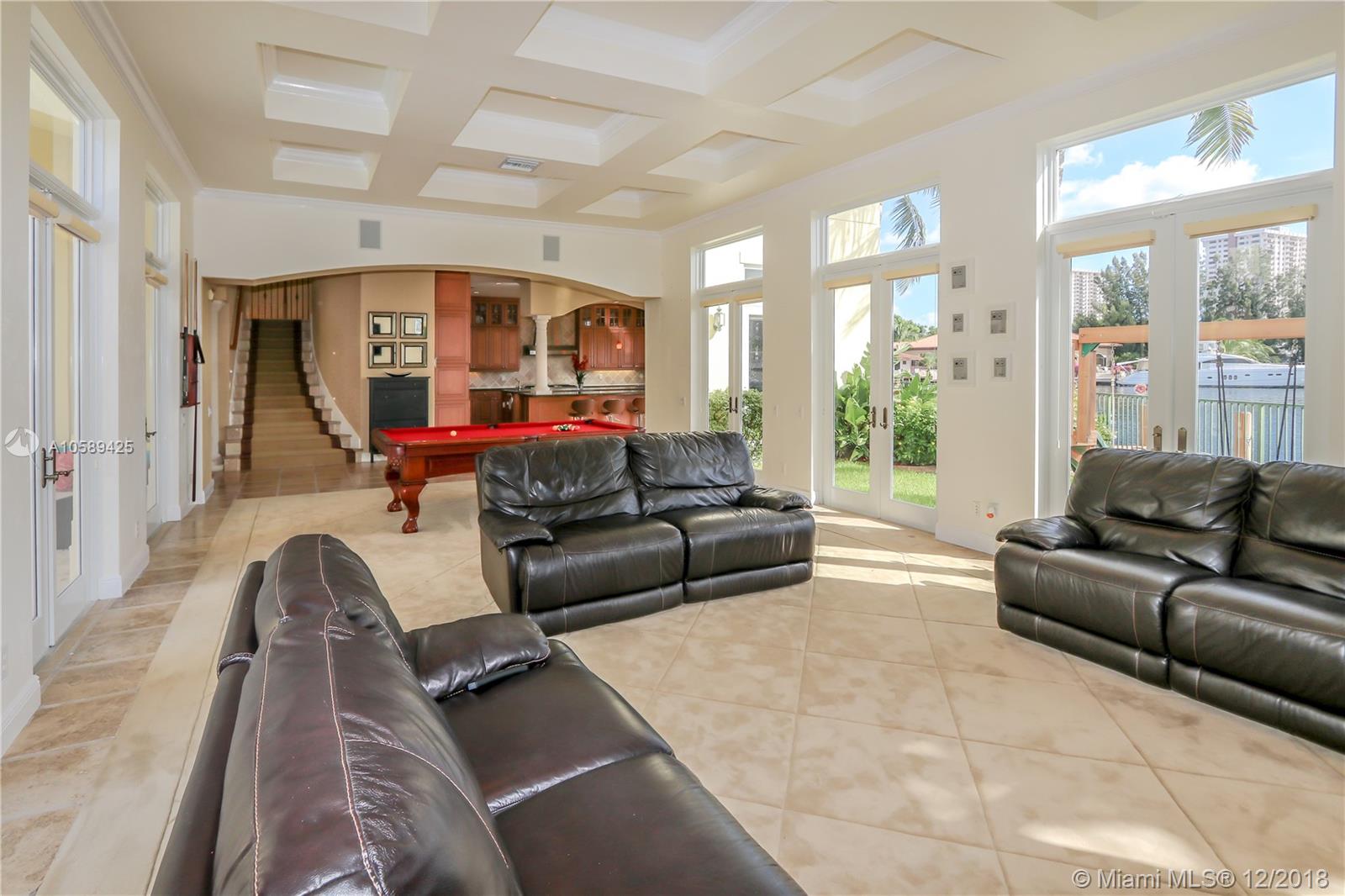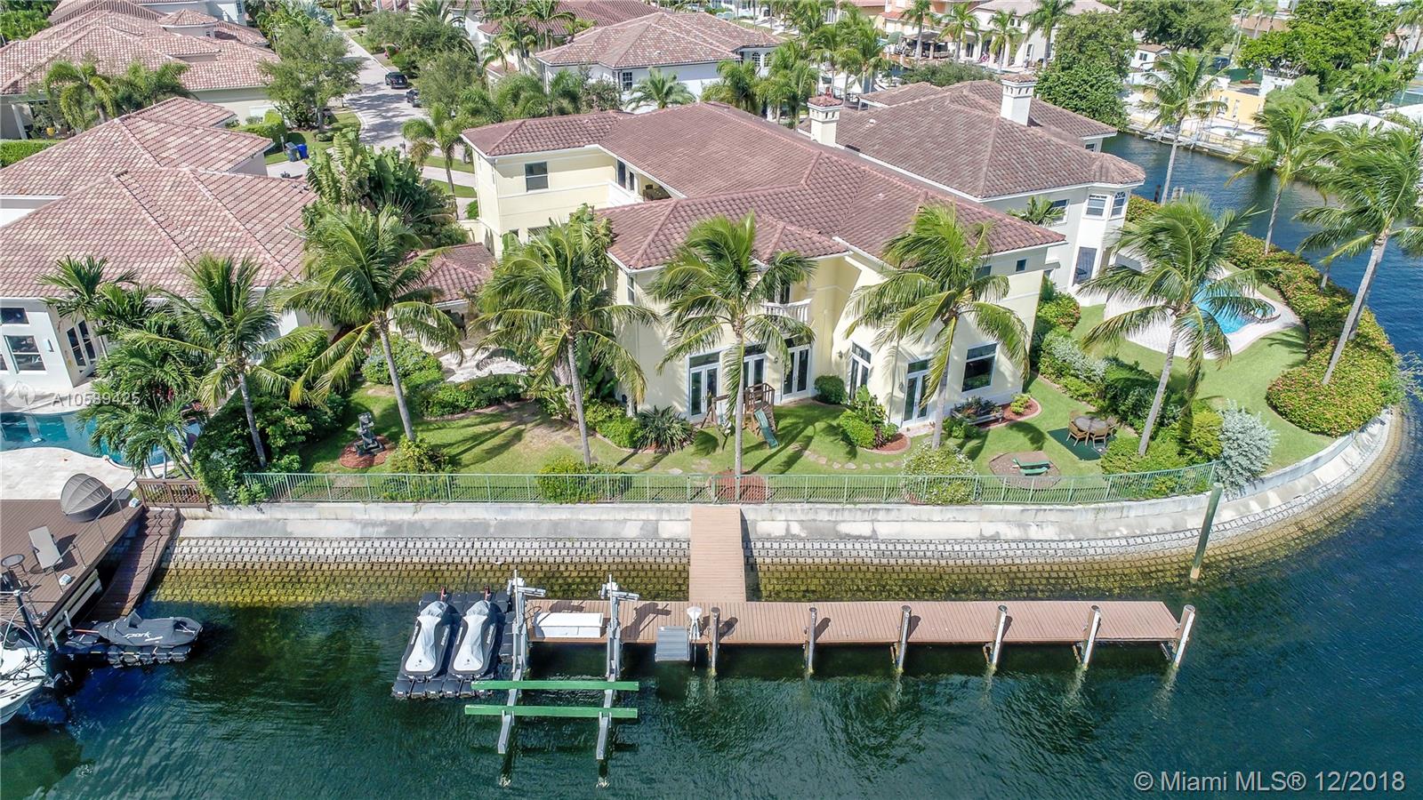 Incredible Mediterranean style home located in the gated Hollywood Harbor Islands with stunning views and ocean access. This beautiful home features a chef’s kitchen, butlers pantry living and formal dining room, and a family room overlooking the marina and courtyard that includes a pool and bbq area. The spacious master bedroom with luxurious en-suite bathroom and walk in closet also has views into the marina. This home also includes an office, den, 2 additional bedrooms with en-suite bathrooms, and pool house with an en-suite bathroom as well. This home also includes a large driveway, 2 car garage, a dock for boats and jet skis, and tropical landscaping. The community features a mommy and me park, clubhouse, gym, and walking path. Live everyday like it’s a vacation in this home.