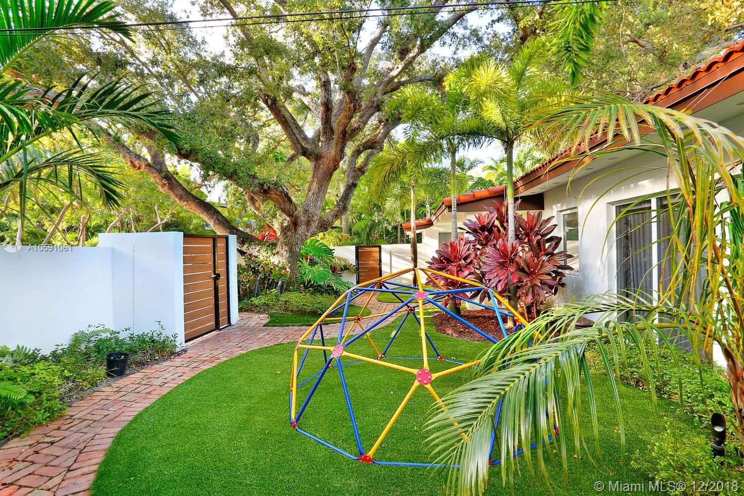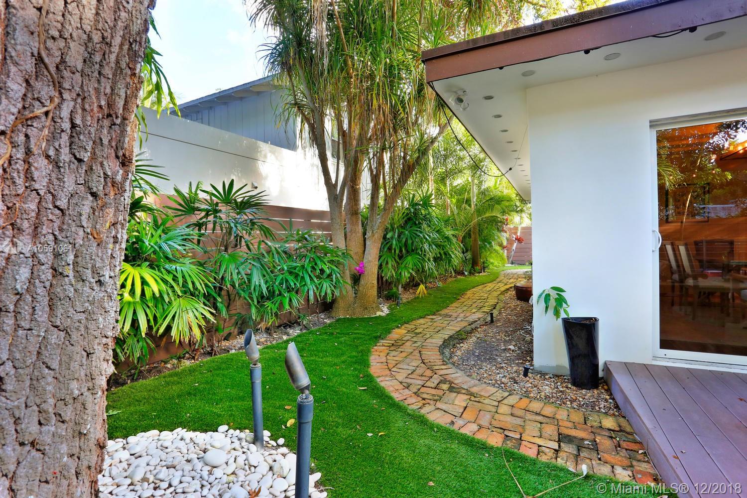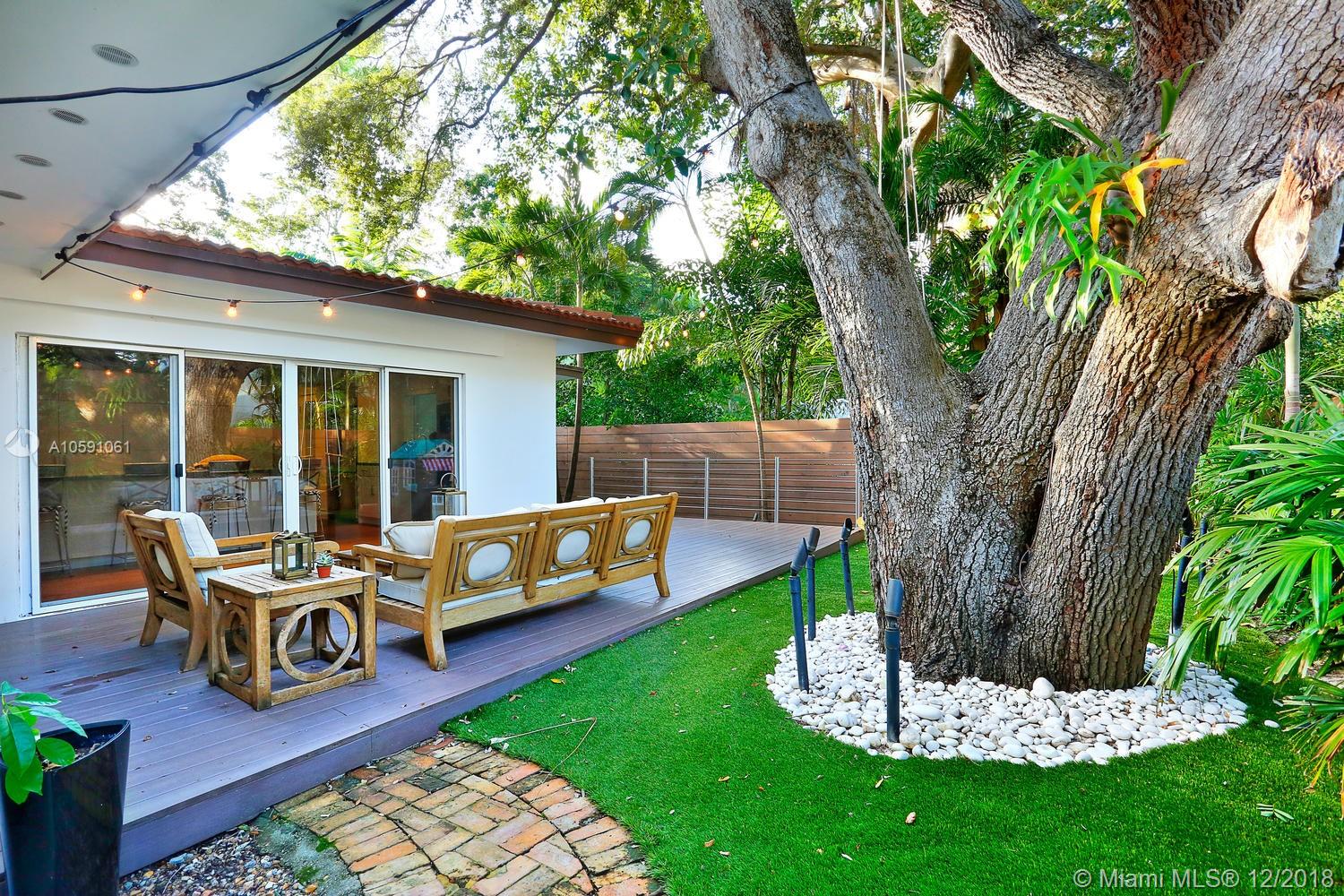 Stunning & ultra-private, walled North Grove home. Total designer renovation completed in 2013 w/ top-of-the-line fixtures & finishes throughout. Light-filled living spaces feature wood floors, custom millwork/ built-ins and walls of glass overlooking the lush garden that surrounds the home. Open kitchen w/classic white wood cabinetry, stainless appliances, quartz countertops, large island w/seating & adjacent breakfast area. The expansive master suite features a sitting area, 7’x14’ walk-in closet & sleek euro-style bath. Enjoy outdoor living & entertaining on the oak canopied wood deck. Located at one of the highest elevations in Miami (not in a flood zone), yet close to the Grove village center’s boutiques, cafes and bayfront parks & marinas. Minutes to downtown, MIA & the Beaches.
