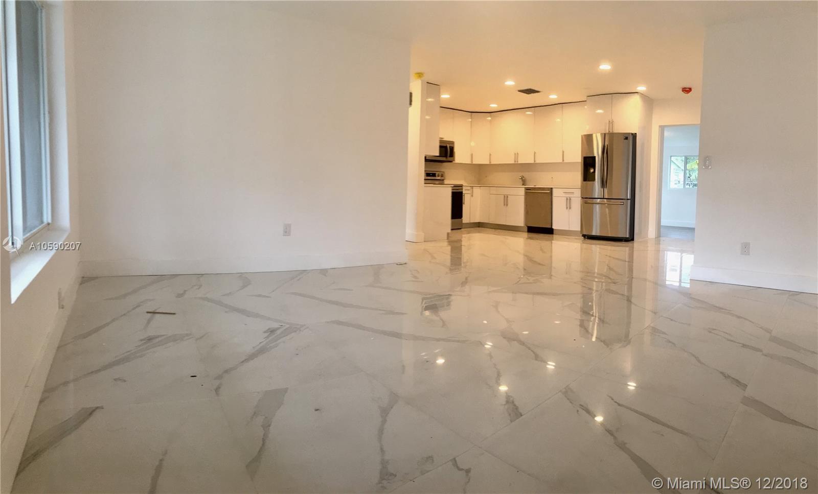 Look no further. This impeccable fully renovated four bedrooms two baths house is turn key and ready to move in. Just get the keys and enjoy new crisp, white cabinetry kitchen with quartz countertops and backsplash. All new Stainless Steel Appliances with washer and dryer. New porcelain floor in the living room and wood floor as well as recessed lighting throughout the house. New Impact Windows that provide ample natural light. Brand new A/C unit and Heater. New Roof and sprinkler system. Great home for any family. Must see to appreciate