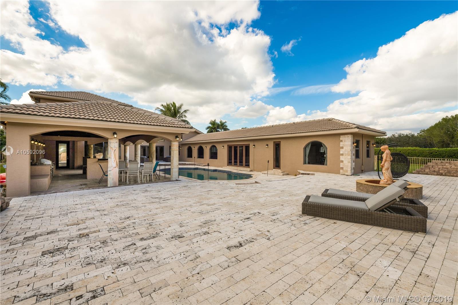 Spectacular Renoir model with 6 beds, 5.5 bath. This home has been customized with an extra wing with an in-law's suite, gym, sauna, hot tub and covered terrace with BBQ/summer kitchen. This home has all the bells and whistles; marble and cherry wood floors, european kitchen with stainless steel appliances and granite counter tops, huge loft upstairs, 3-car garage, community tennis/basketball courts adjacent to home, new airs (2018) and new pool heater. Most east facing windows and doors are hurricane impact glass. A-rated school district, 24 hour security and so much more!!