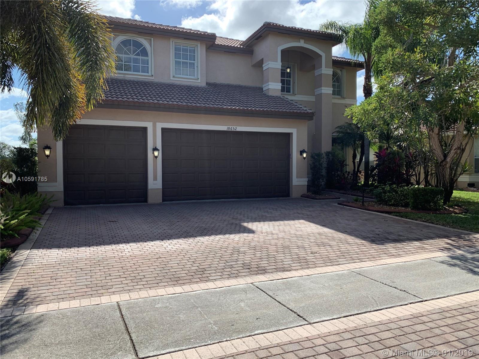 Ready to move in beautiful big house in one of the best neighborhoods of Miramar. Stunning central stairs with iron-cast handrails. Great distribution, no wasted space. Amazing balcony terrace, travertine patio and pool, built in 2015. New whole house floors with flat-side porcelain tiles downstairs and hardwood upstairs. Crown molding in the whole house and several raised ceilings give this house a very refined look. 5 bedroom upstairs, and one downstairs, perfect for game room or guest. Every upstairs bedroom has walk-in closets. Oversized master bathroom with jacuzzi for 2 people, and double walk-in closets in the master. Granite and stainless kitchen with new appliances. 3 car garage. Do not miss this dream house!