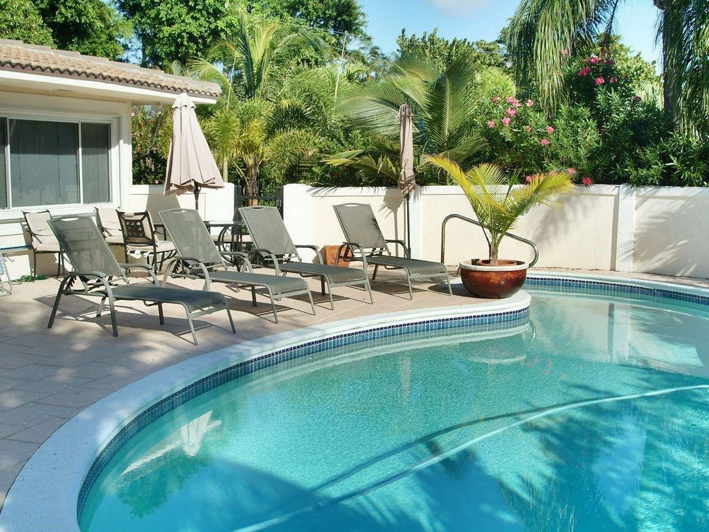 Sitting 1 block West of the historic Hillsboro Lighthouse and Atlantic Ocean lies a tropical paradise nestled in the desirable Hillsboro Shores neighborhood! This beautiful 3125 sqft home showcases an open concept split floor plan with 4 bedrooms, 4 bathrooms, small den, sophisticated kitchen, family room and large living/ dining area. Wake up every morning to your pool view in the large master suite that includes a walk-in closet and beautiful master bath. Located on an oversized corner lot, the home is surrounded by lush landscaping, tall palms and, free form pool, hot tub, and private courtyard area. With two separate drive-ways, you will never run out of are space for your guest to park. Private beach access is a short walk from your front door. This Florida-style home is a must see