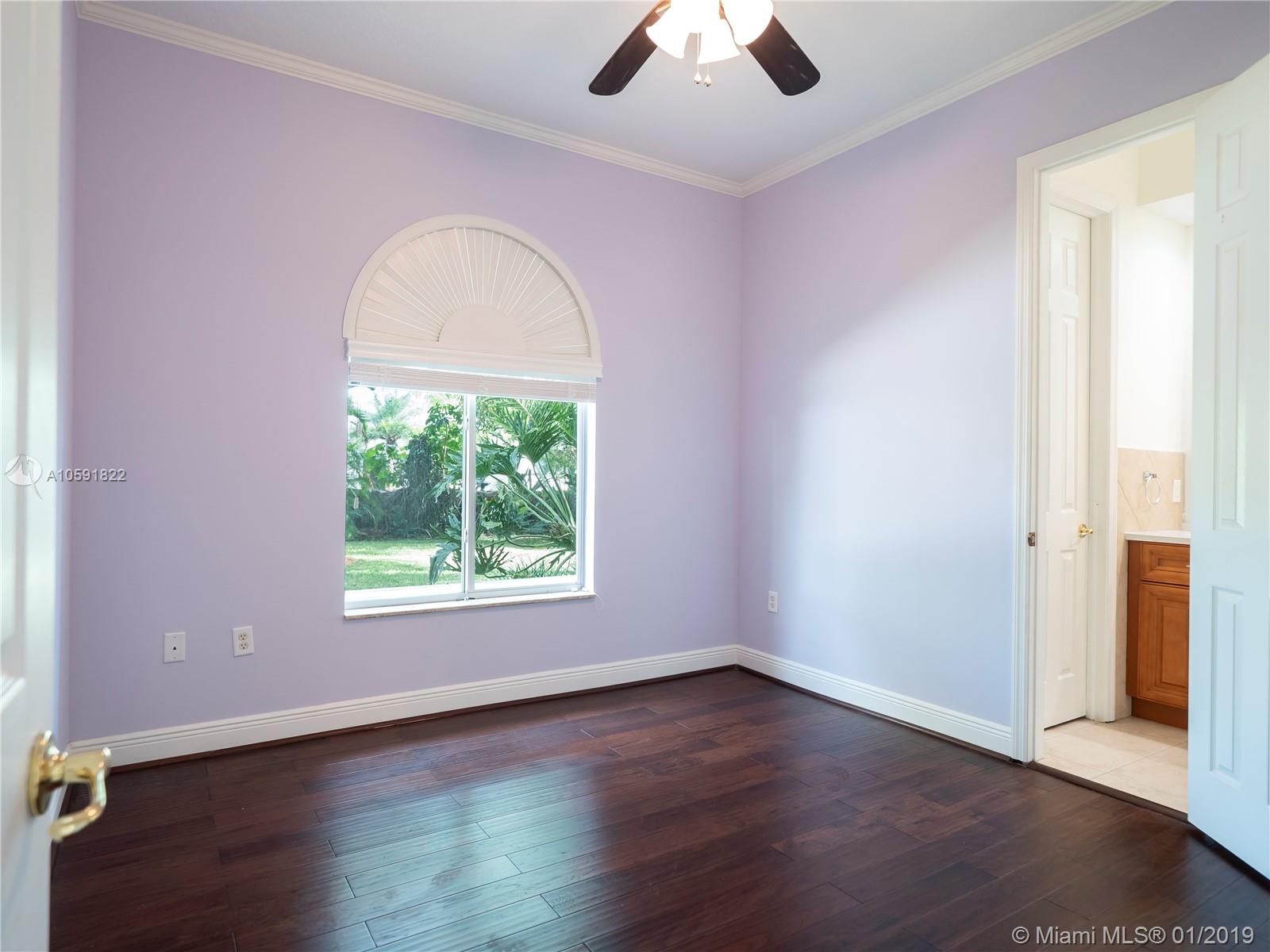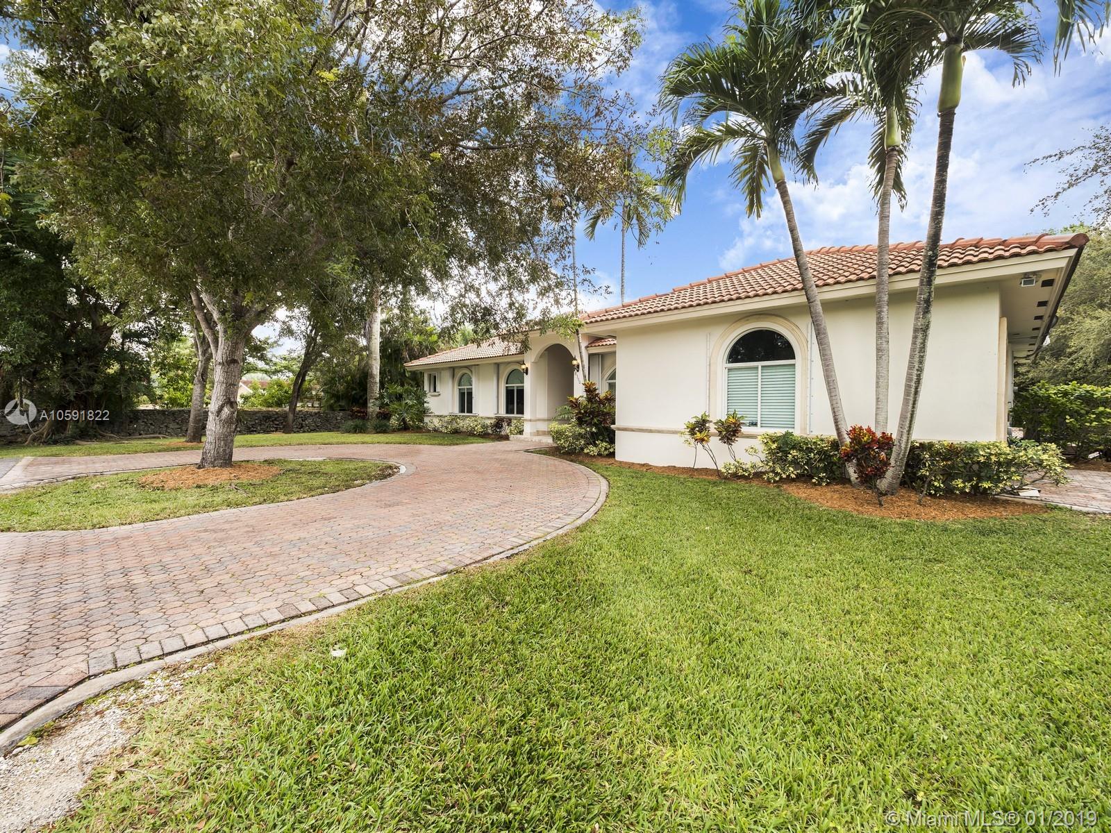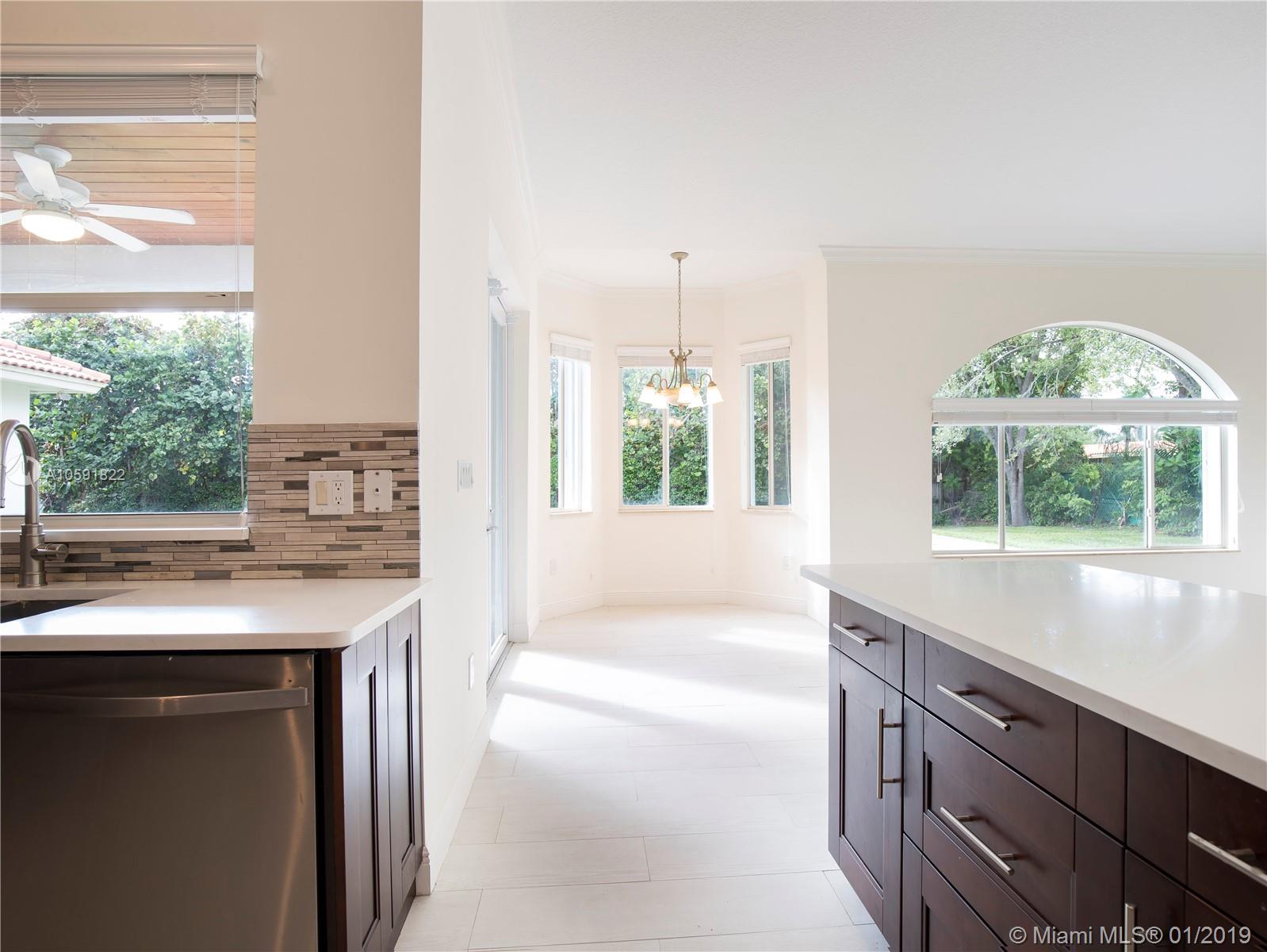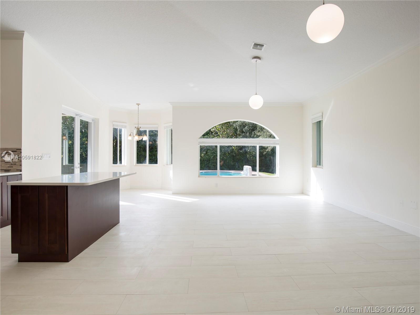 Lovely updated 4 bedroom, 3.5 bath home, offers great and spacious features: Private Entrance with beautiful Coral Rock Wall,luscious landscape, Family room, high ceilings, new tile floors throughout, and 2,840 SF of living area. Beautiful arched windows in the Dining and Family room, French Doors in Living room overlooking the pool/patio. Ample New kitchen with stone counters tops, Stainless Steel appliances integrated with the spacious Family room. Great master suit/bath with double vanities and Jacuzzi tub! Great patio for entertaining.Two car garage circular driveway.