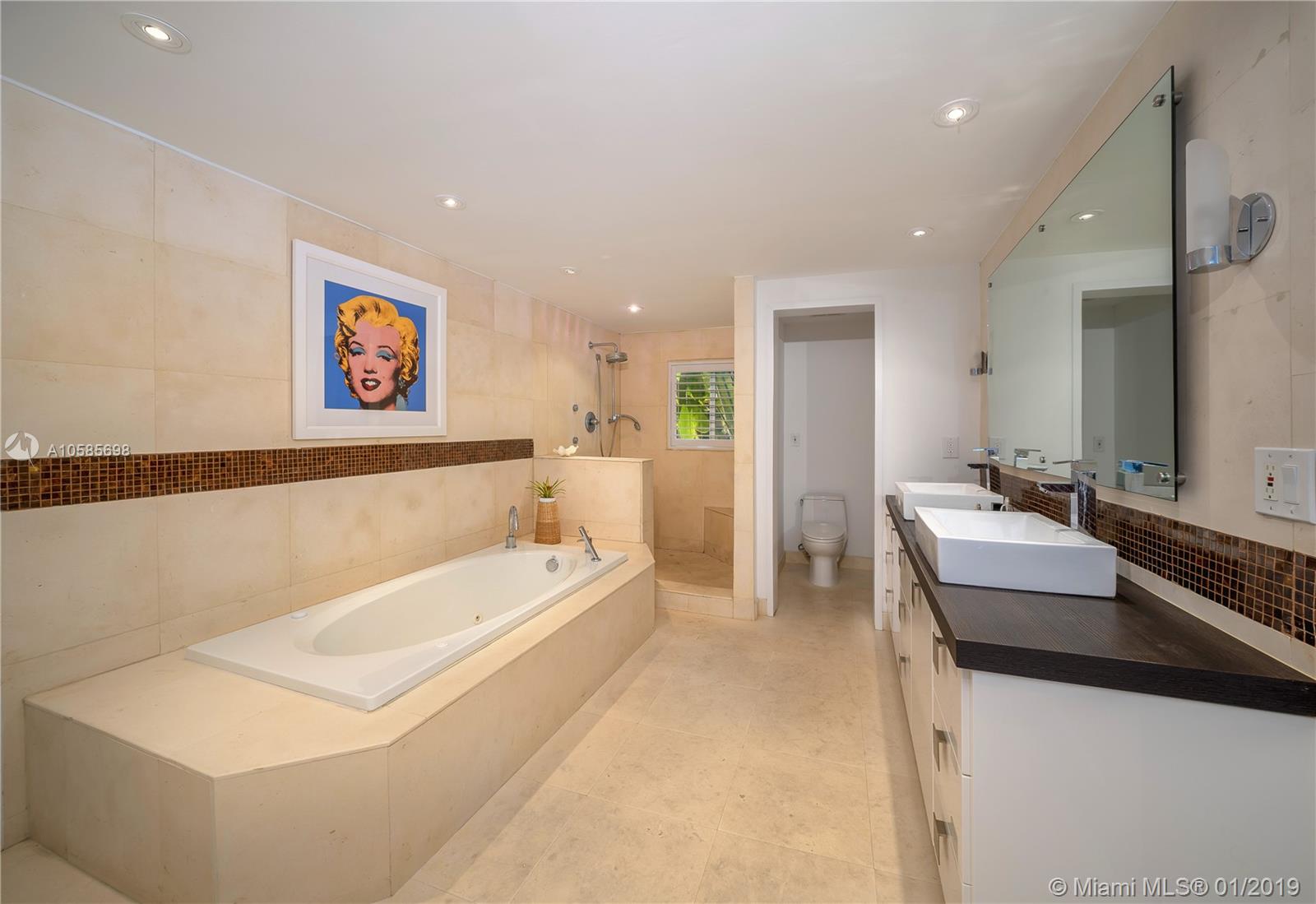 WALK TO THE BEACH ! perfect beach house. Saint Barth feeling all the way. Open kitchen, impact glass doors and windows. covered terrace by the pool adds space and a lot of charm to this island home. Two master suites. two additional bedrooms plus staff. two bedrooms overlooking pool area, one the largest bedroom has a little terrace for breakfast al fresco. Living room offers different areas of entertainment , formal dining, informal breakfast area, large and bright reception area overlooking pool and garden. You can walk or bike to the coffee shops, you can walk or bike to the beach. a dream of house.a real Key Biscayne home updated to perfection.