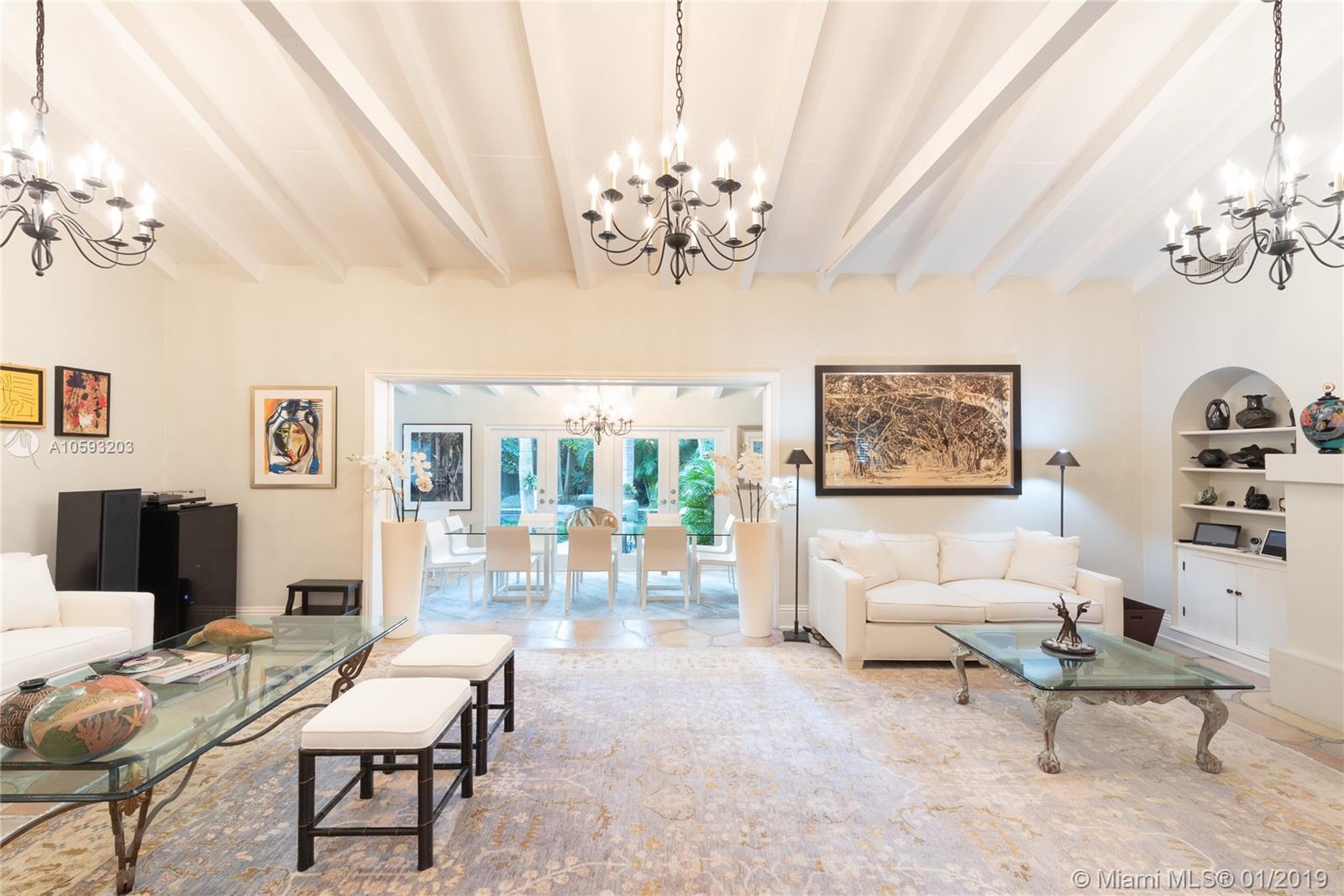 New Listing located in the Golden Triangle on a block-long street between Toledo and Durango near the Biltmore Hotel. This one-story 3 bedroom/3 bath oasis has 3,000 adj. sq. ft with a 13,000 lot and has been extensively updated for a private retreat. Surrounded by royal palms and exotic plants, this home is one of a kind. A meandering walkway leads to covered porch. High-beamed ceiling, living room with fireplace opens to a spacious dining room that has French doors to a lushly landscaped garden, patio, and lagoon pool with waterfall. Updated kitchen. Library, Family room, Office plus "game room" that could be a fourth bedroom. Impact Windows, and many other extra features. Priced to sell!