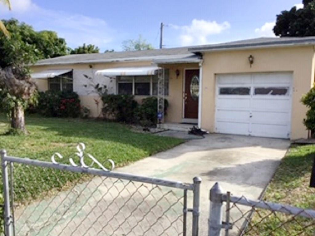 2 bed 1 bath home with garage. New front door with glass, all new interior doors with new molding, new 2018 cent A/C & ceiling fans, terrazzo floors throughout, new tile floors in bathroom. Chain link fence in front & back, sidewalks in front. Auto sprinklers, shingle roof, hurricane shutters on all windows. Newly painted.