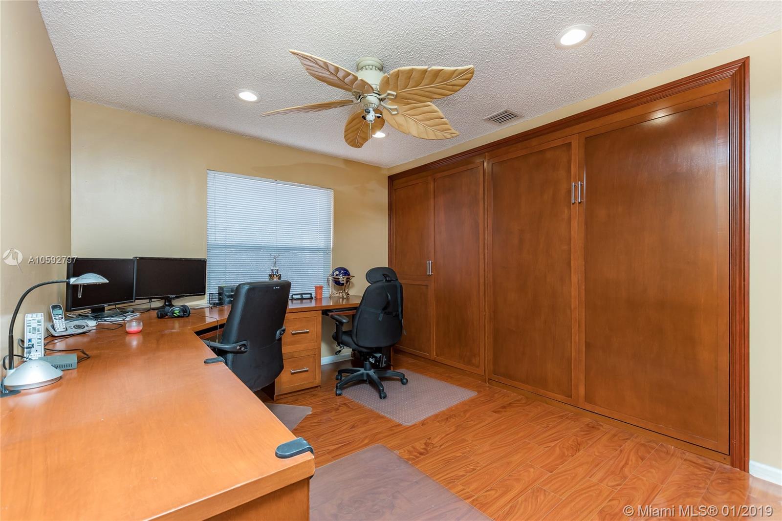 Don't miss this spectacular Smart home with activation voice controlled by Alexa. This meticulously maintained 1 story home features 4 bedrooms, 2 1/2 bathrooms, and a 2 car garage. Entering through the double entry doors, you are greeted by a formal living room and dinning room. This open floor plan is perfect for entertaining with a spacious kitchen/family room combo. Cathedral ceilings, large kitchen with wood cabinets, granite counters, eat-at kitchen bar, and master bedroom with walk in closet and all part of this fabulous home. Outside you can enjoy a screened patio overlooking the lake. The community features Low H.O.A fee, all rated A schools, Great location, easy access to major highways, shopping, entertainment, downtown, and Fort Lauderdale International Airport. Don't miss out!