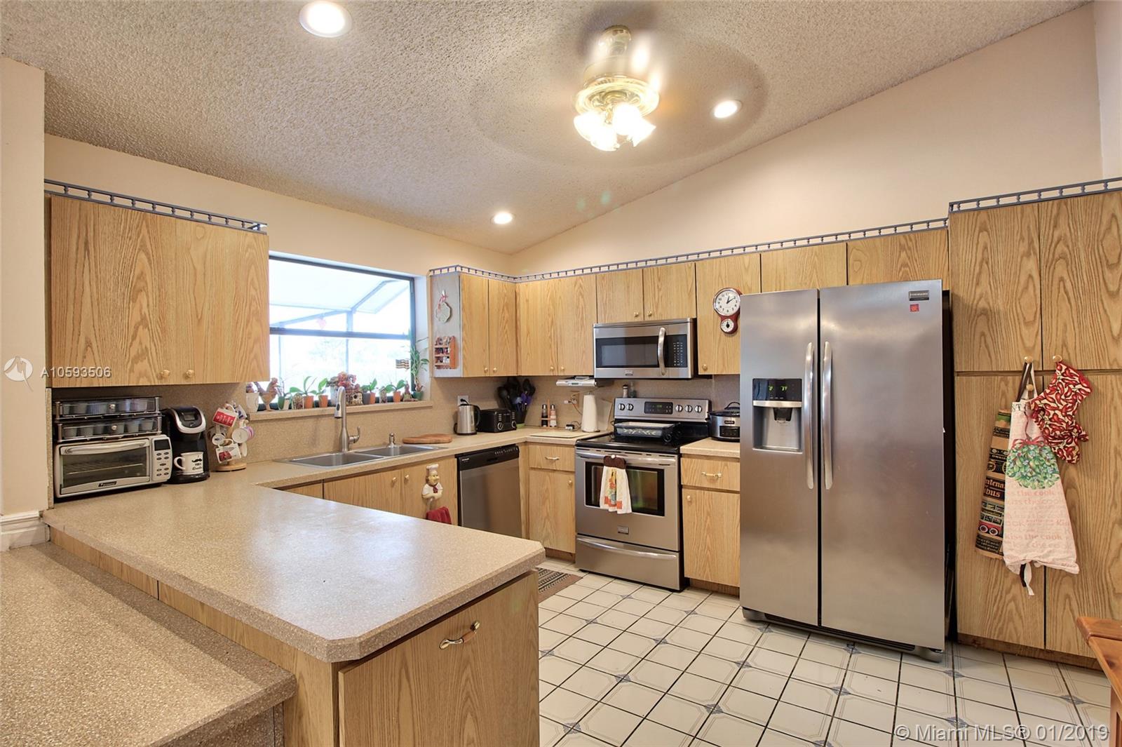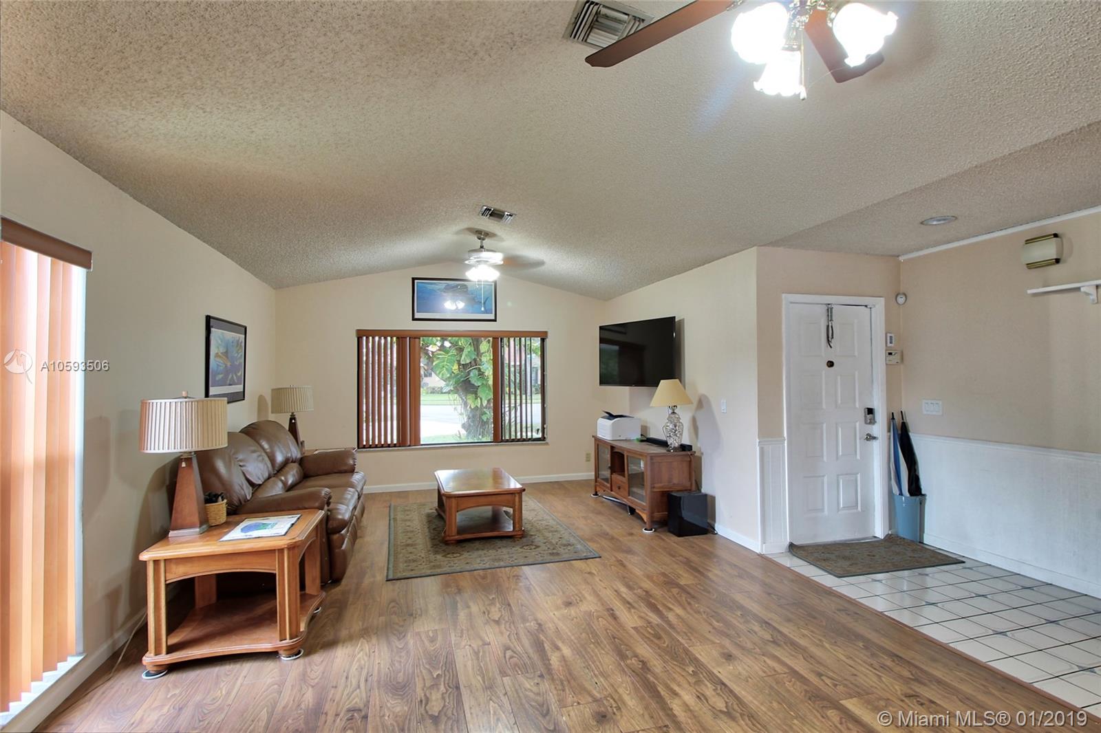 You'll fall in love with this beautifully charming lake front pool home on over a 10,000 square foot lot that is close to Davie's Most Sought After Schools. This 3 bedroom 2 bath home with a huge over sized screened-in patio is great for entertaining. The 2nd bath has a cabana bath entry to the patio. The pool includes a built-in spa for your relaxation. This spacious open floor plan boasts with new wood like laminate floors, modern stainless steel appliances and a laundry room. This extra large lot home is looking for its new owners...Don't miss out on this chance as it can be yours!