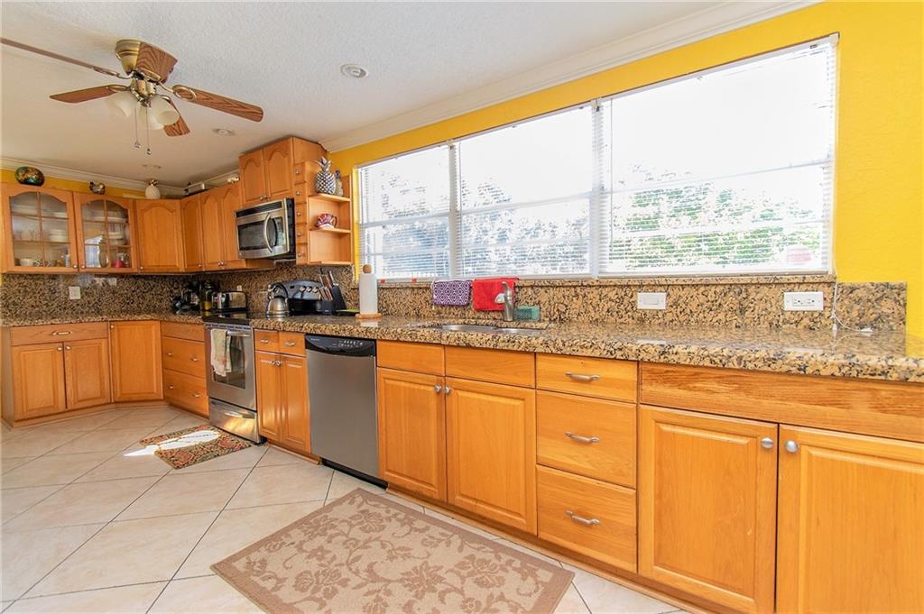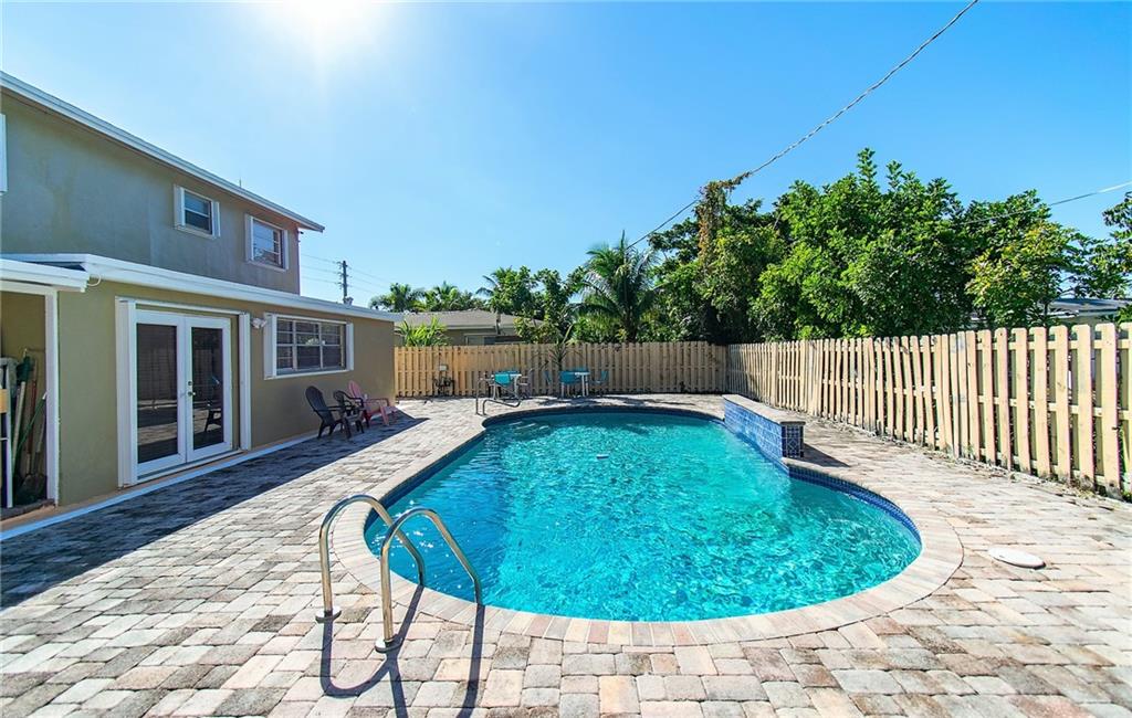Spacious 5 bedroom home with an open layout. Walking distance to schools and Pompano Park. Large patio with pool is great for entertaining. Updated kitchen with granite counter tops. Separate laundry room. 2 zone air conditioner. 130 gallon hot water heater, tile and wood floors, crown moldings. Brand new hurricane rated according shutters all around.