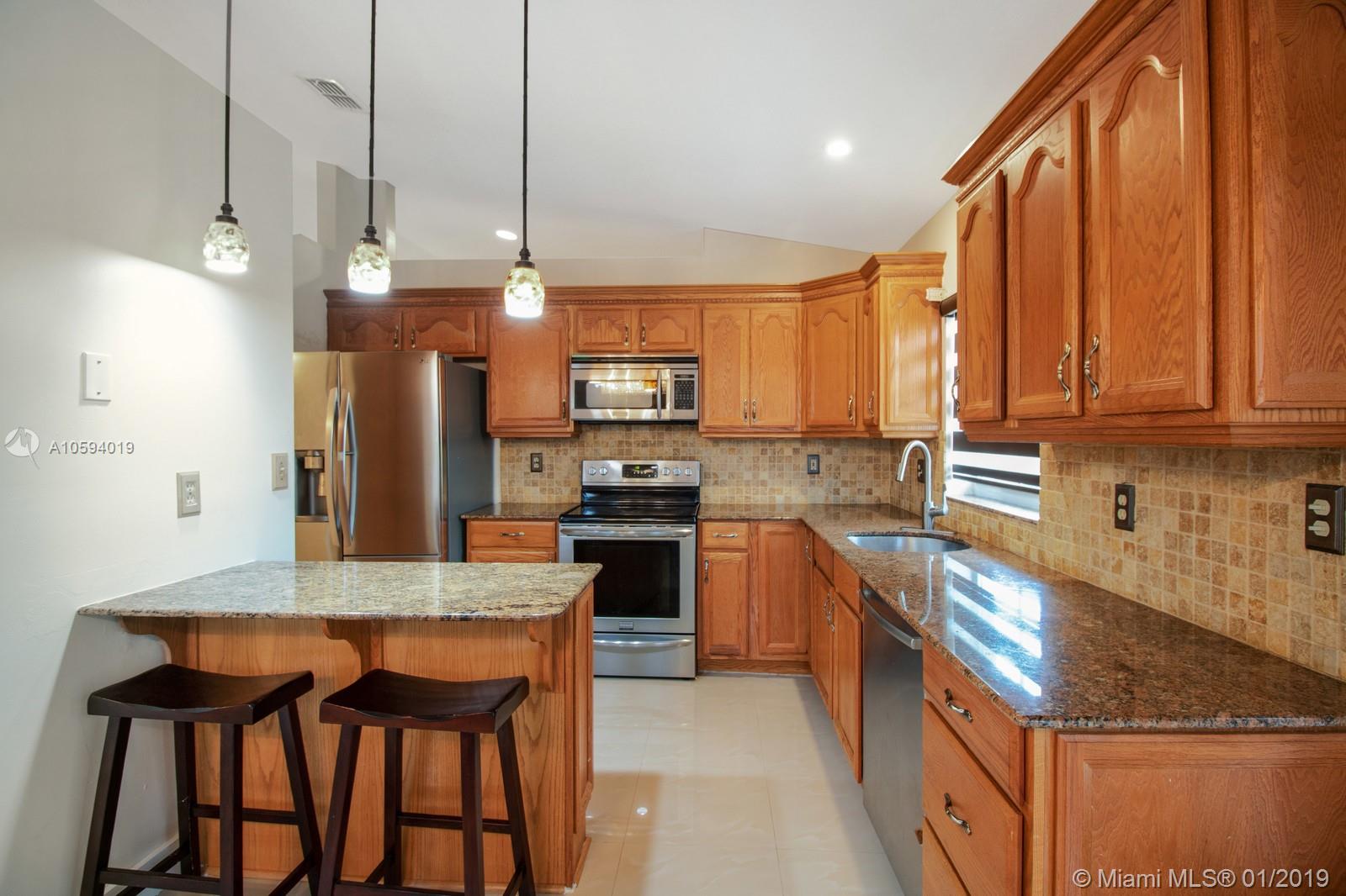 Look no further your home awaits! Beautifully upgraded 4 bedrooms 2 baths with 2 car garage home in desirable Apple Creek Davie a private community. Home features volume ceilings, freshly painted neutral colors. Beautiful porcelain tile floors throughout. Granite counter tops and stainless steel appliances. Split bedroom floor plan. Master suite has a walk-in closet. Upgraded bathrooms, Master bath has double sinks. Custom window treatments, hurricane shutters. Sits on a huge corner lot with great outdoor space for entertaining. Enjoy the community pool. Great location close A+ schools and colleges and highways. NO HOA APPLICATION Process LOW HOA fees. Hurry won't last!