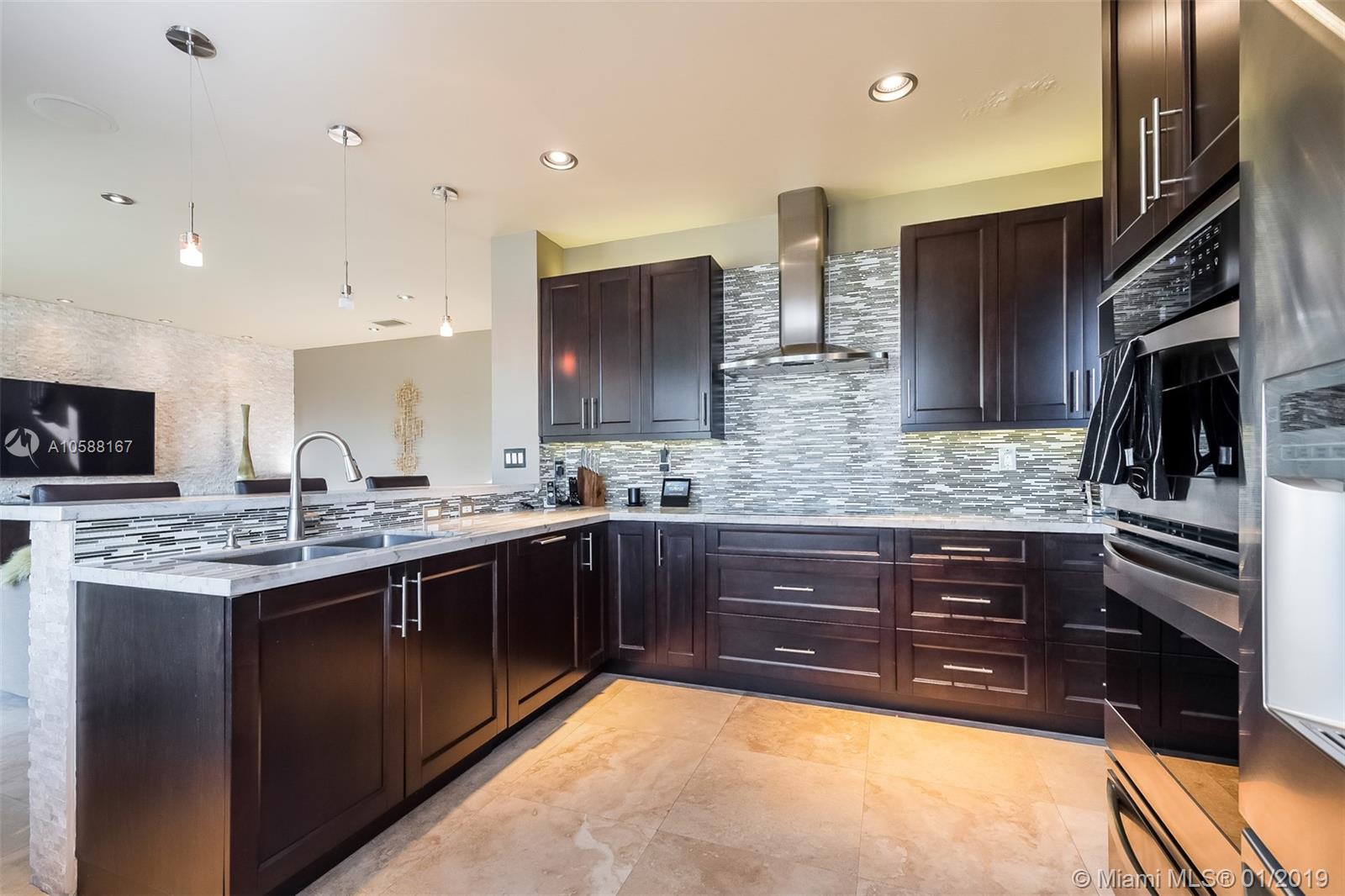 Beautiful, lakefront, two-story home at gated Melrose Landings in Monarch Lakes. This 4 bedroom and 3 bathroom house has a completely remodeled downstairs featuring: new travertine floors; impressive volume ceiling in living and dining rooms; built-in bar with wine cooler; remodeled kitchen with new SS appliances, wood cabinetry, granite countertops and snack bar; breakfast area with lake views; family room with gorgeous stone wall and built-in cabinets. Great layout with one bedroom and one full, remodeled bath downstairs and master suite plus 2 bedrooms and full, remodeled bath upstairs. Exterior has been freshly painted and landscaped. House has Cat 5 wiring, alarm, keyless entry, automated window coverings, speakers. Location offers easy access to I-75 and Turnpike.