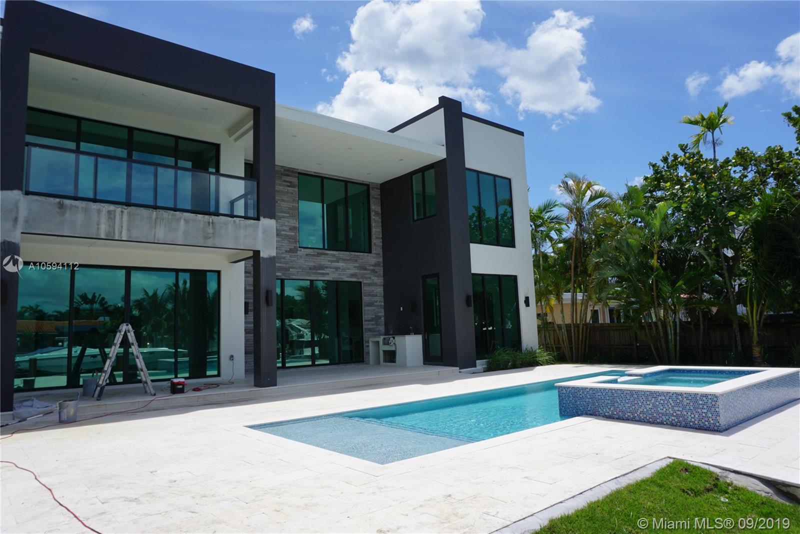 "CONTEMPORARY""NEW 2019 WATERFRONT CONSTRUCTION" WITH THE MOST EXQUISITE FINISHES! "30'HIGH CEILINGS" 1ST AND 2ND FLOORS SOLID CONCRETE!! 2 X 4 ft. "LARGE FORMAT PORCELAIN PLANK FLOORING", GORGEOUS GLASS TILE BATHS, NATURAL GAS GOURMET CENTER ISLAND KITCHEN W/SUBZERO & WOLF APPLIANCES, ITALIAN DESIGNER WHITE LACQUER WOOD CUSTOM CABINETRY & WHITE QUARTZTOP COUNTERS, HUGE MASTER SUITE WITH DOUBLE WALK-IN CLOSETS, FLOATING MODERN TUB AND SEPARATE BODY-SPRAY SHOWER, HURRICANE IMPACT GLASS and 10' FLOOR TO CEILING GLASS SLIDING DOORS. HEATED POOL WITH INFINITY JACUZZI WATERFALL BUILT-IN. NEW 75'of DEEPWATER DOCKAGE AND SEAWALL !! 1 YEAR WARRANTY COMES WITH HOME AT CLOSING, COMPLETION DATE Sept. 2019. EASY ACCESS TO SHOW, BROKERS OFFICE ONLY A 1/4 MILE AWAY.