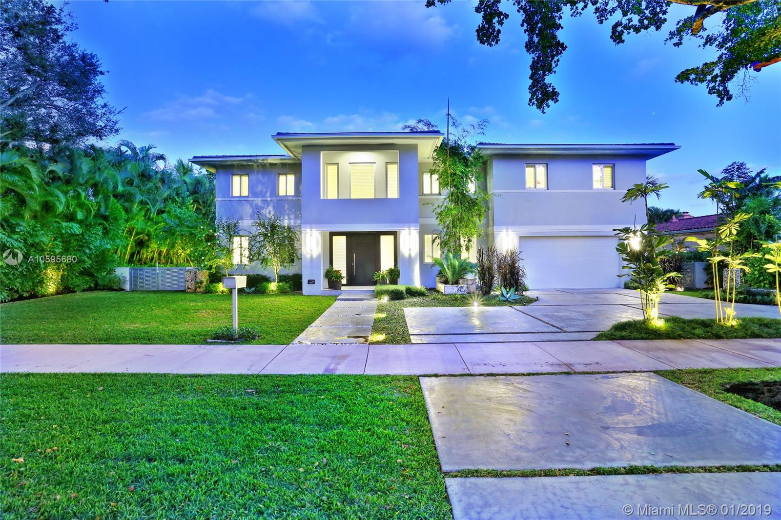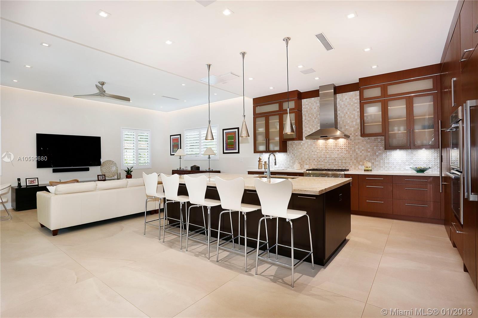 This amazing, contemporary, new construction home is anything but the white box! Custom built the details are endless including high ceilings throughout, grand foyer w/ solid mahogany front door & gorgeous floating staircase encased in glass, uniform Italian floor throughout, fab open kit w/ island w/ Quartzite top & the finest appliances, walk-in pantry, African Wenge cabinetry & seamless wall coverings. Spectacular outdoor area w/ wood beamed ceiling, summer kit, clean pool & patio & yard w/ 50+ plant species. 5 br/5ba home w/gracious master w/ walk-in closet, sleek bathroom w/ enclosed bath & shower, & covered patio overlooking the back yd. Handicap accessible br & ba downstairs, 2 car gar w/ temp control, art room/office down, upstairs laundry. Truly special!