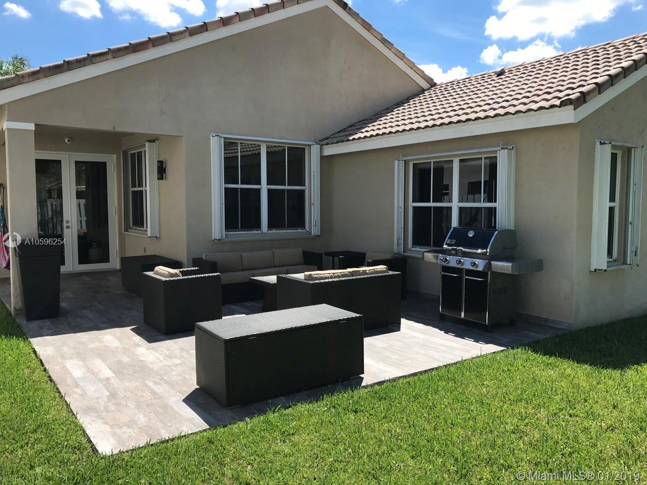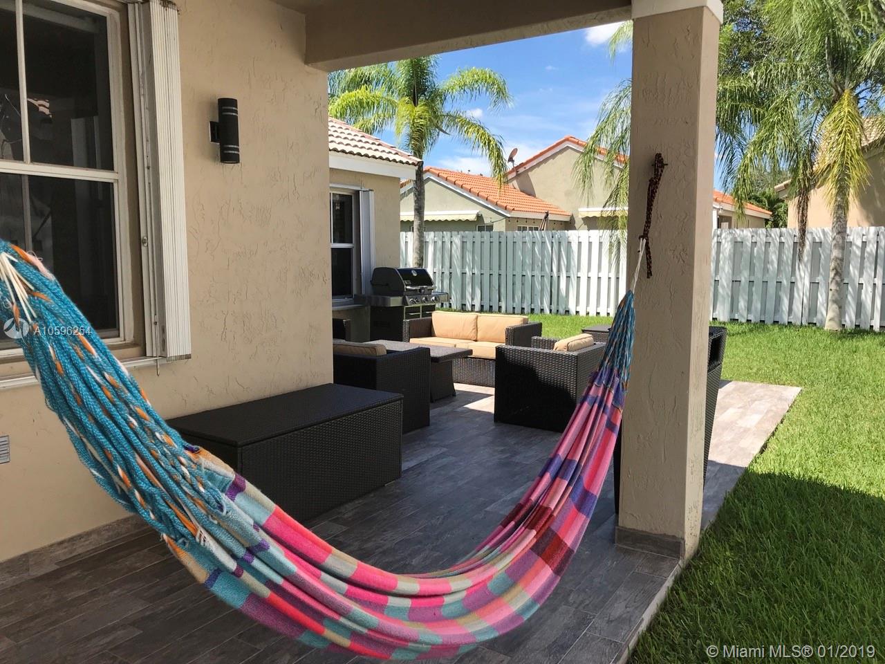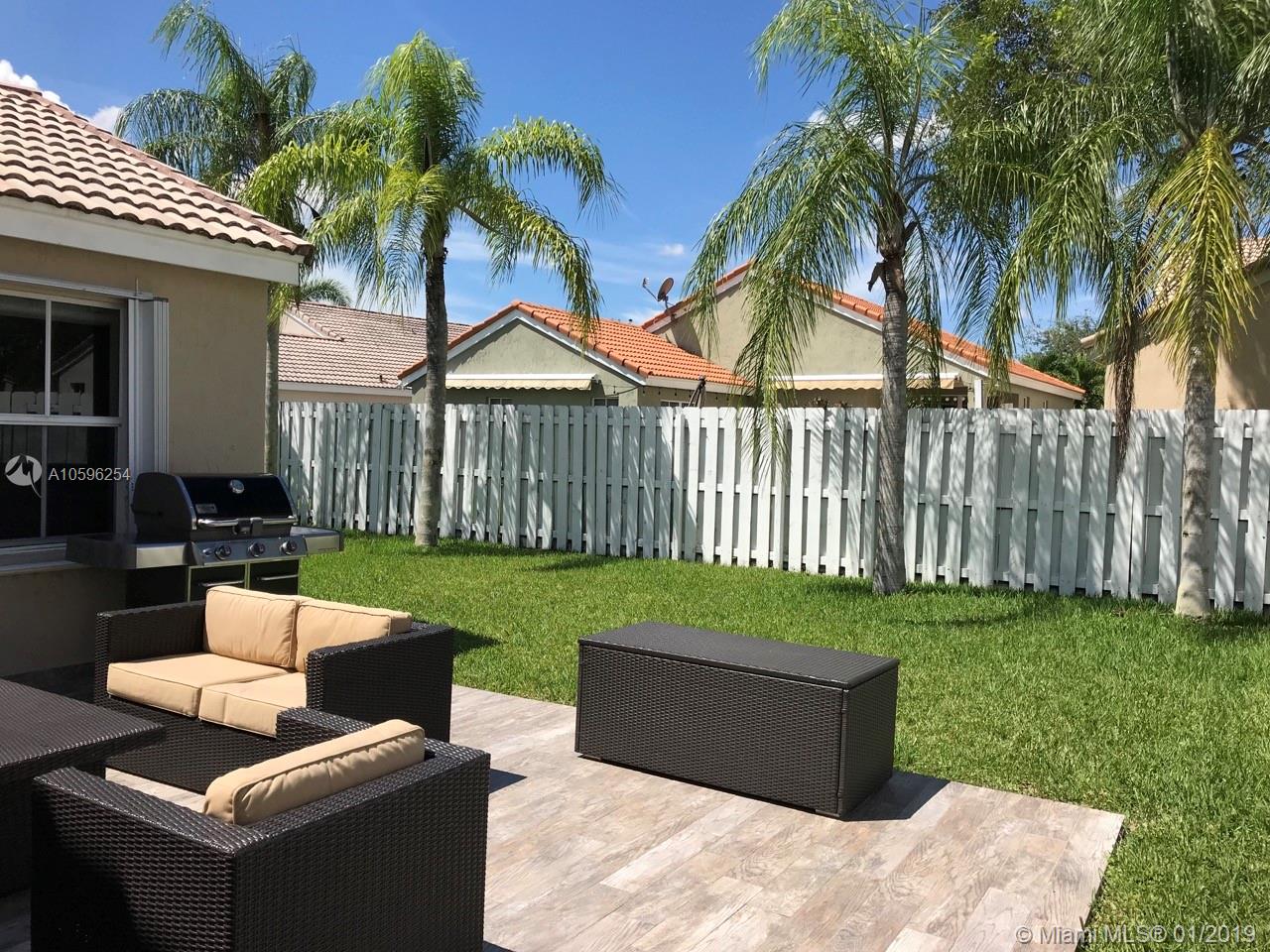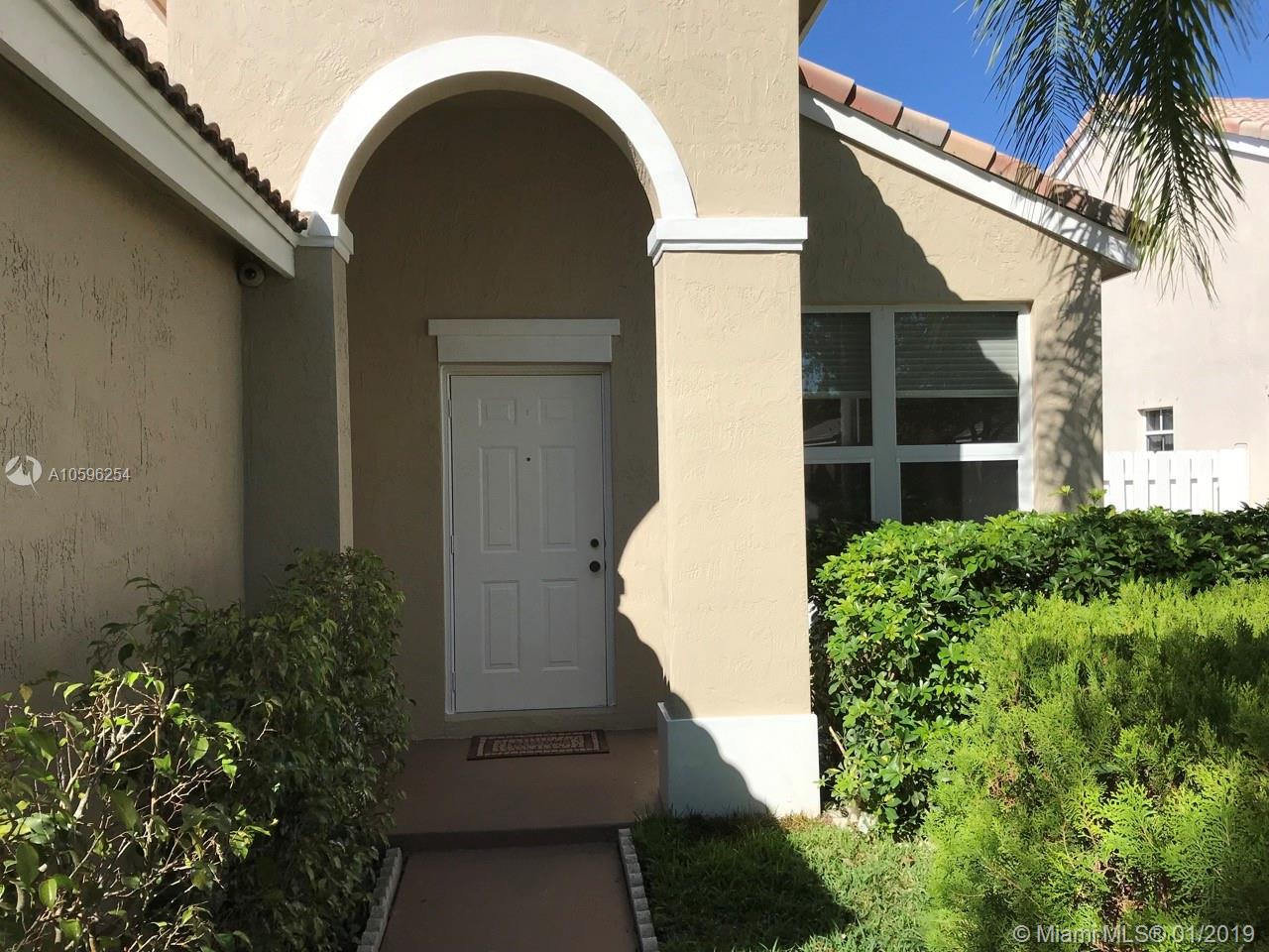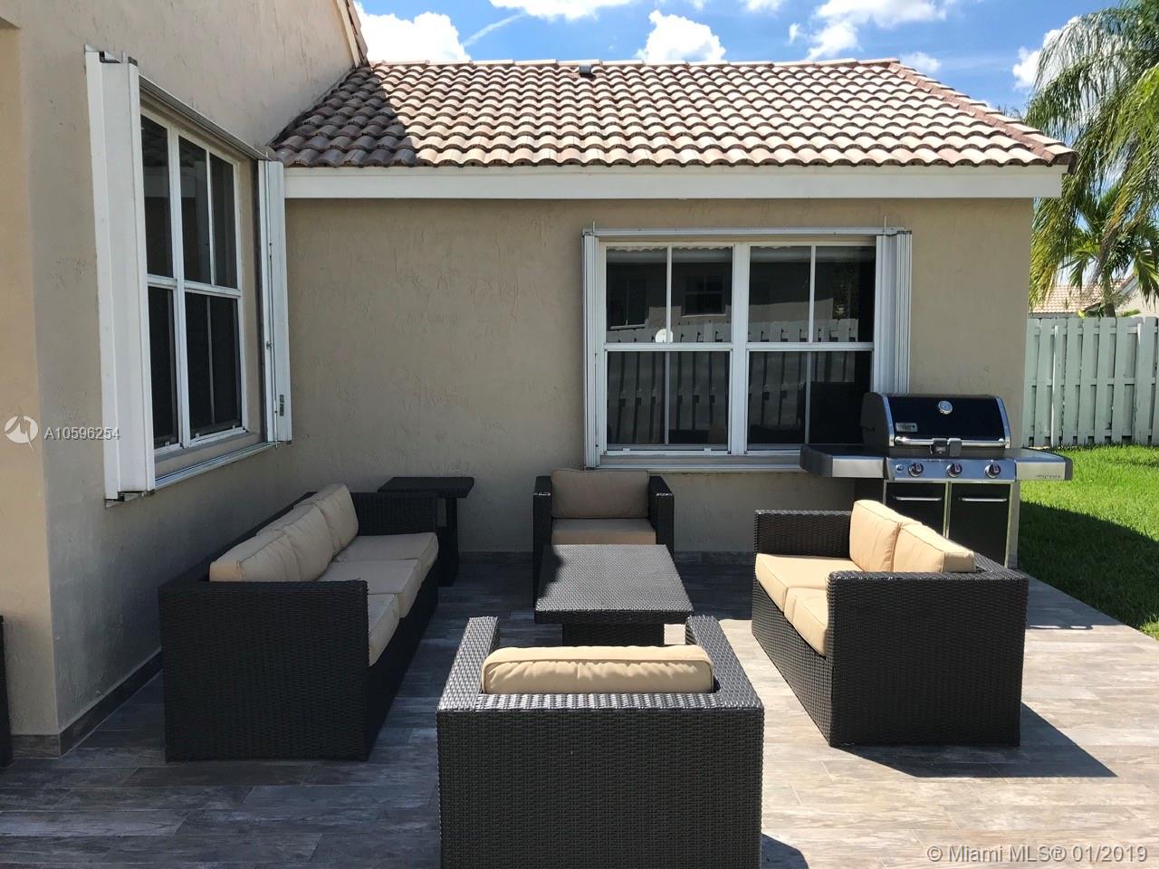 Beautiful 3 bedroom 2 bath home in The Falls gated community of Weston. Exterior and interior are freshly painted. Half the windows are impact and half have accordion shutters. Brand new impact french door to patio. Laminate flooring in the bedrooms and engineered wood in the common areas. Custom closets in all bedrooms and laundry. Custom garage closets and flooring. House includes a fully wired 3 camera network video recorder with views of the driveway, door entrance and patio, leaving cameras and viewing monitor. It can record up to 90 days of video. You will never run out of hot water with the tankless water heater. Roof inspected in Nov/2018 and all issues were corrected. Ultra efficient (20 SEER) Trane XL20i. Patio completely redone. House is fully fenced on all sides. Must see.