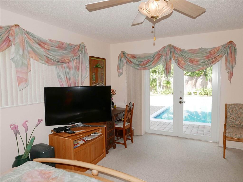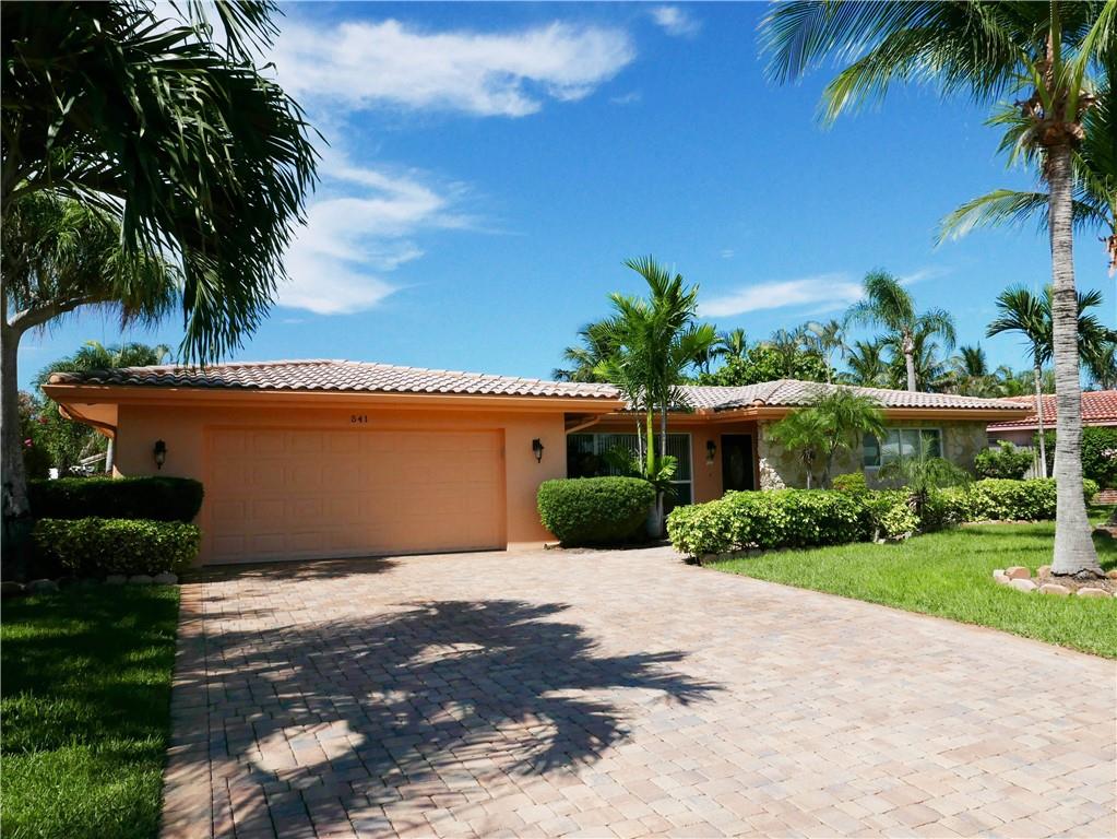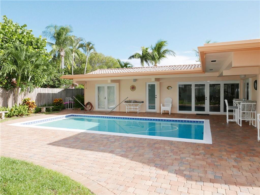 This immaculate home is only about 3 miles away from one of our most expansive & beautiful beaches! You'll appreciate the recently painted exterior, sealed driveway & patio pavers, garage cabinetry from the Closet Factory, AC replaced 2014, newer AC duct work, gutters around the home, outdoor speakers by the pool & so much more! From the moment you walk in you will love the layout; the split bedrooms, the generous room sizes, the beautiful custom built dry bar, & the updated hallway bath. The master bedroom is enormous & the other two are well apportioned also. The common living area is bright with natural light overlooking the swimming pool & gardens. The kitchen, updated a few years ago is well planned & very spacious. There is plenty of storage in the home as well. You'll love it here!
