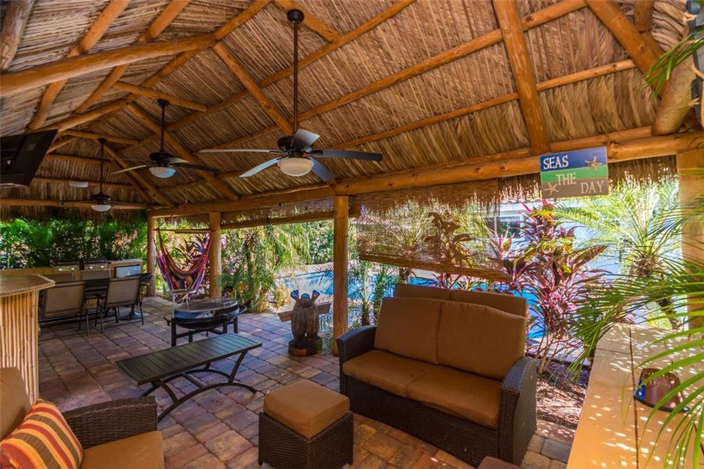 This home represents the best of Florida’s lifestyle. From the bright living area and eat in kitchen where many happy moments will be enjoyed to the outdoor living area which is just fantastic. Roof is brand new. Hurricane Impact windows and doors. New pavers around the pool. Gorgeous Tiki hut with electric. This home has 3 large bedrooms each with great closet space. The master bedroom is very large and has a cabana full bath and a nice set of double glass sliding doors to enjoy the pool view. The bright updated kitchen has room for a dining table. The pool area is open and bright with many areas to enjoy. Close to beach, shopping and great restaurants. Golf, tennis, and pickleball around the corner!