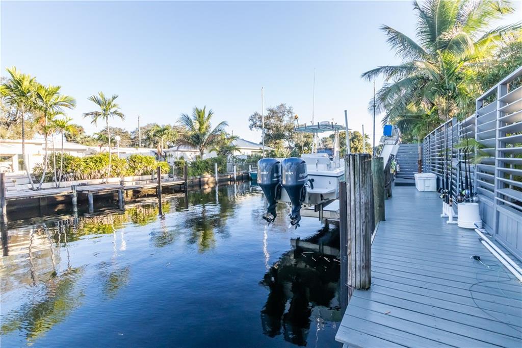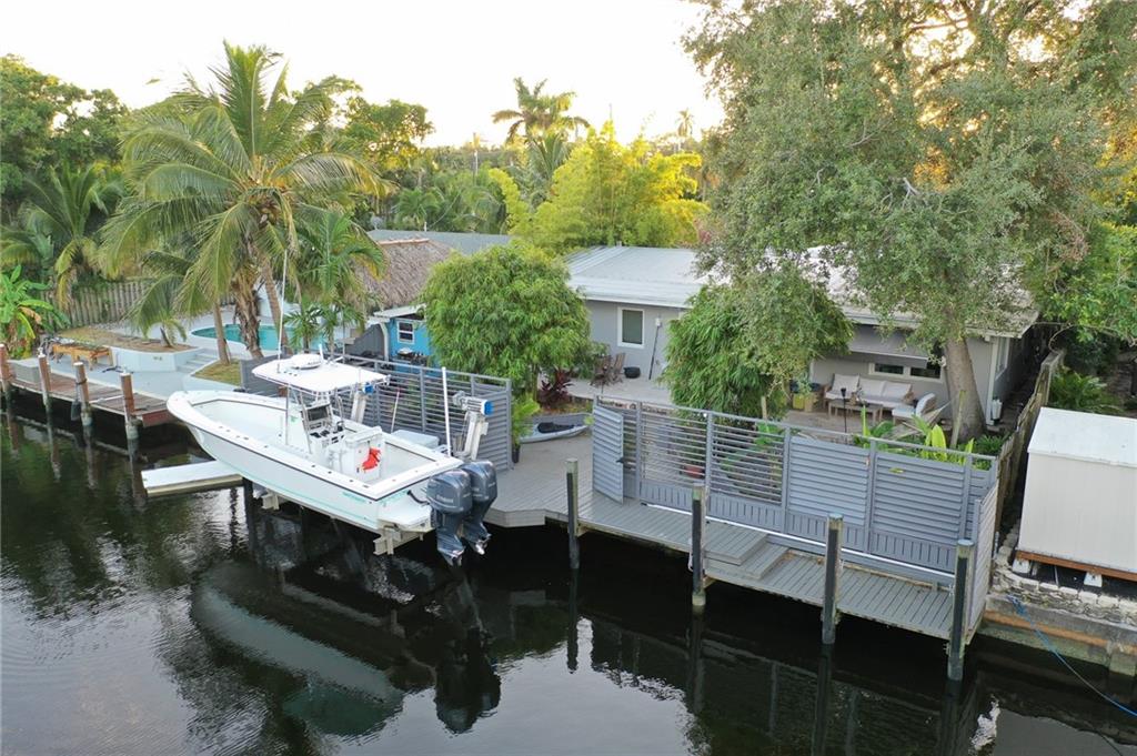 Beautiful waterfront 3/2 home with a 1 car garage located in Sought after Shady Banks neighborhood. Metal Roof and remote security gate. Vaulted ceilings & exposed ducts welcome an airy & open industrial feel with lots of natural sunlight. Home upgraded top to bottom in 2007 w/ New Metal Roof, Windows and doors, Electric, plumbing, saltwater pool. New Flat roofs 2016. Private outdoor area has pool, ambient lighting and a tropical feel. 60' of canal front dock 16,000 lb boat lift, and no fixed bridges. 1 Block from 5 Acre Park w/ Basketball, Volleyball, Tennis, Baseball, Yoga Center, Kids Playground and Exercise Path. 1.5 Miles to 2nd ave restaurants and Performing Arts Center, 1.8 miles to Las Olas Shopping and dining, and under 4 Miles to the Ocean!
