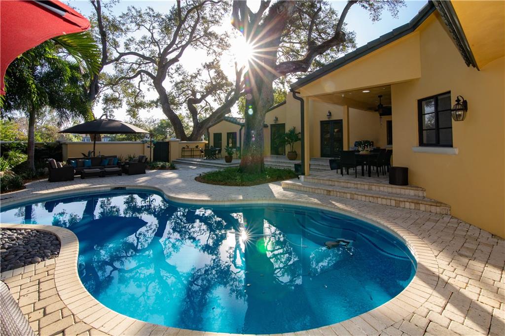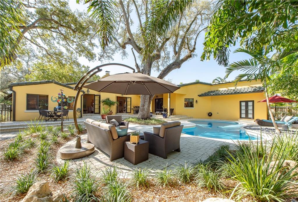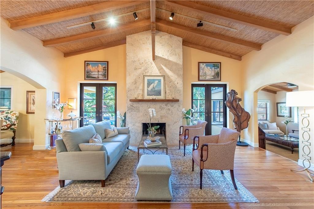 SINGLE LEVEL LUXURY LIVING IN VICTORIA PARK! Abounding with old Florida charm this beautifully restored and remodeled residence is situated on a DOUBLE LOT overlooking Victoria Park and features original oak floors, wood burning Coral rock fireplace, vaulted wood beam ceilings, original mosaic tile flooring, impact windows, gourmet kitchen, skylights, newer master bedroom and bathroom wing, covered patio for entertaining, LED pool lighting, air conditioned storage room(possible office) & more. This meticulously maintained residence has a privacy wall around the huge pool-patio area as well as a separate yard completely secured by a custom decorative fence. Fourth bedroom is currently a den. Roof, plumbing, AC & electric were all updated in 2015. An absolute must see!