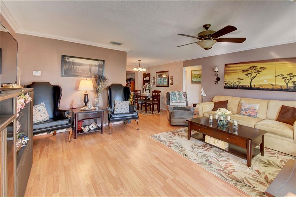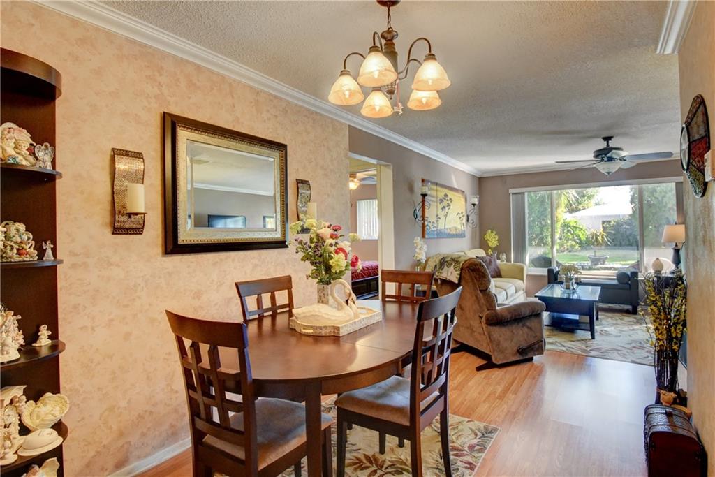 Welcome home. The pride of ownership is evident in this well kept and updated 2/2 with a 1 car garage in Leisureville. But don't let the name fool you. Leisureville is a very active community with 2 Clubhouses with heated pools, Sauna, Billiard Room, Library, and game tables. $8 golf for owners, security, shuttle bus, and more. Your new home features IMPACT WINDOWS, Laminate and Ceramic tile flooring throughout. Crown molding. New facets. New light fixtures and ceiling fans. New electric panels, Newer A/C and Newer water heater. New exterior and interior doors. Washer and Dryer included. This is a turnkey home (unfurnished), with no work needed. Move right in and enjoy the peace and serenity of your private screened in patio area. This spacious and affordable home will not last long.