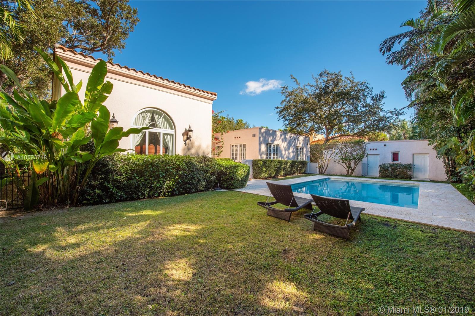 A delightful new listing just north of Coral Way. This 1920's home was brought back to life in 2010 when the noted architect, Herbert Brito, came to its rescue. Besides extensive restoration, a 2000 adj.sq.ft addition was added to this gracious home to include a second master suite plus a Family room with gas fireplace, and a pool. The home now has almost 4000 adj.sq.ft that includes four bedrooms and four baths in the main house as well as a one-room guest suite with full bath next to the sparkling open pool and patio. 12,500 square foot, walled corner lot. There is a formal dining room and the original main living room with cathedral ceiling. Impact glass doors and windows... Circular drive and carport. Visit today!