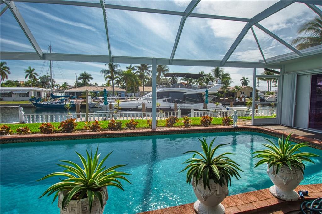 Desirable Harbor Village – southern exposure! A boater’s dream with a wide, deep water canal, 80’ water frontage, 55’ dock with electric and water. A 50’ yacht is currently renting dock space for $550 a month. He could stay if buyer wanted. Ocean access with with no fixed bridges. Gorgeous ranch style home 3 bedrooms, 3 baths. A large, panoramic view, screen enclosure with pool and large seating area, allows you to open your home to the beautiful Florida weather. Great views of the canal from the kitchen and dining area make this the perfect home. Convenient to Pompano’s great beaches, excellent restaurants and shopping. A must see.