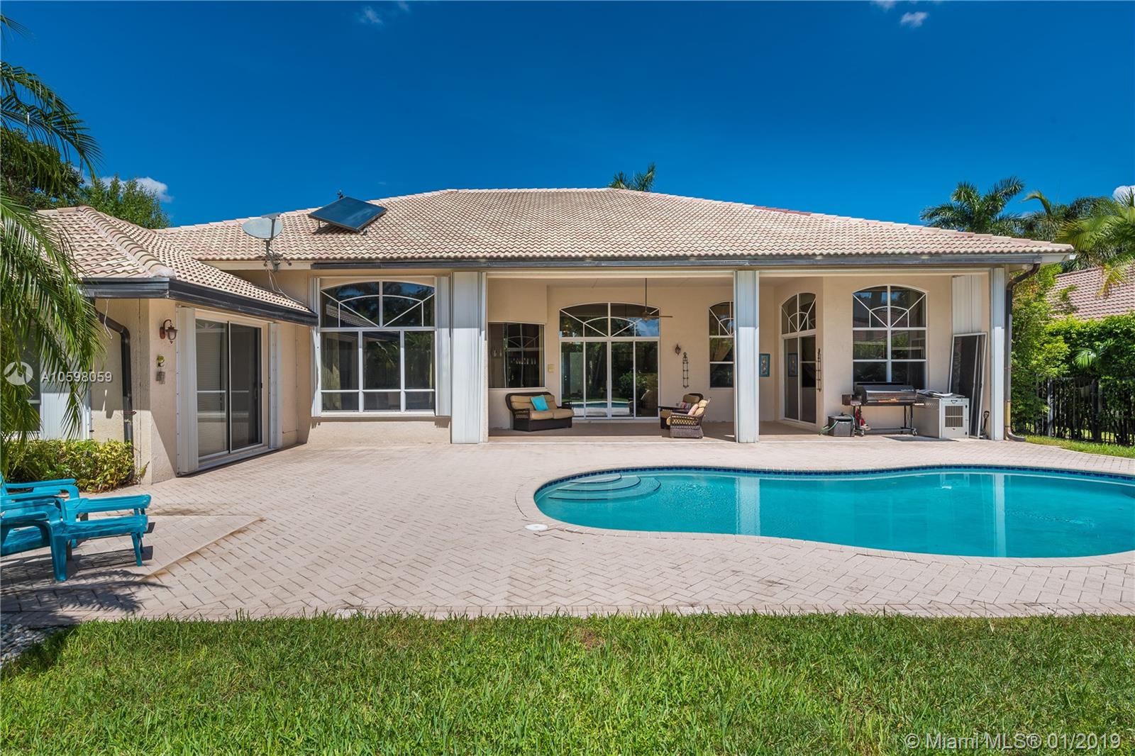 Magnificent private home in Poinciana, Weston Hills with great pool and patio. Great house to entertain. High ceilings. 5 Bed plus office. Beautiful built in closets in all bedrooms. 4 1/2 bathrooms. Fully fenced in yard. Best Weston schools.