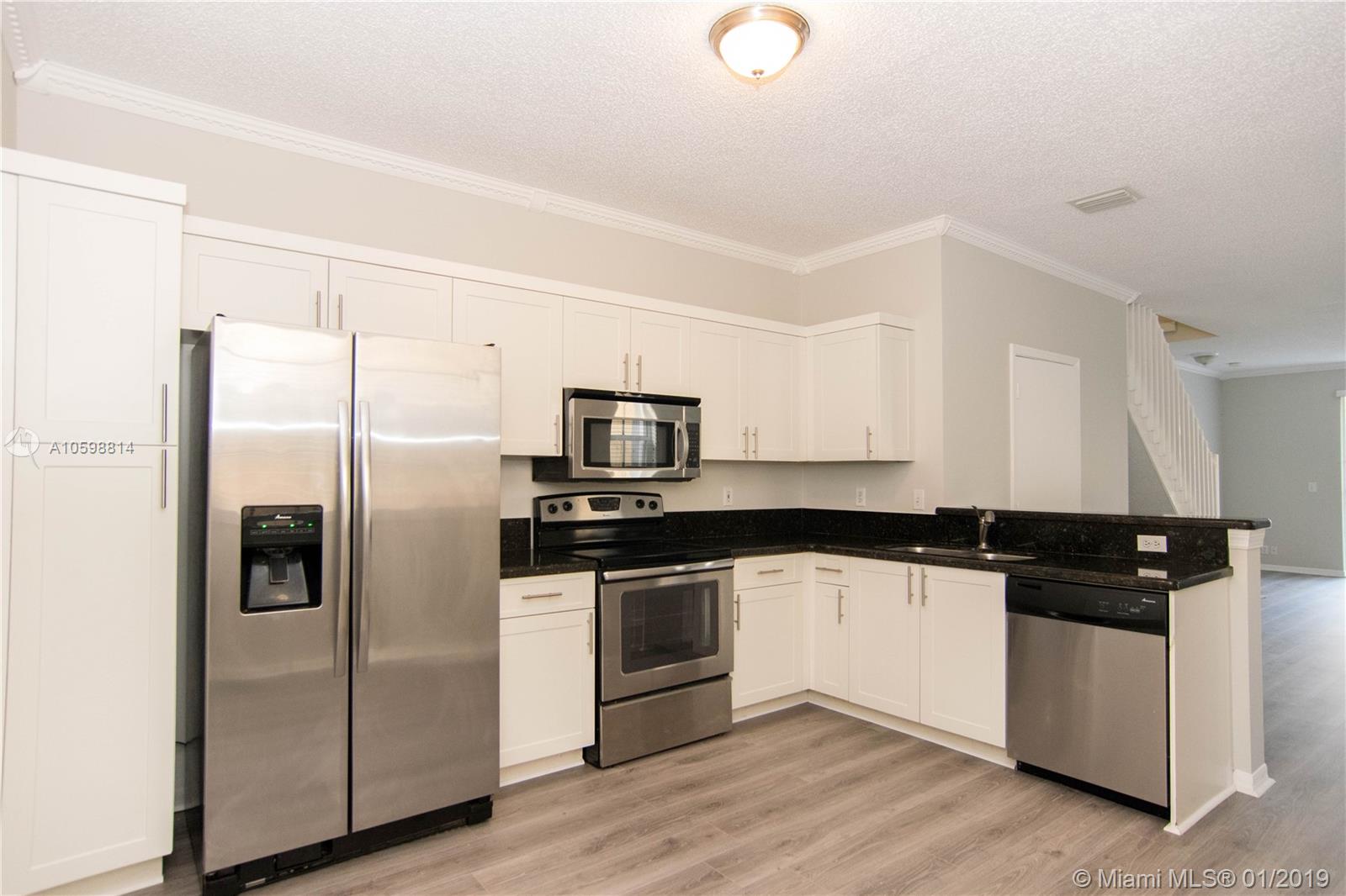 Ready to move San Simeon townhome. Brand new laminated on the first floor and brand new modern carpet on the second floor. Beautiful kitchen with granite counter top and stainless steel appliances. The unit has been freshly painted. Great community near to the most desirable schools in Broward County. You will love it!