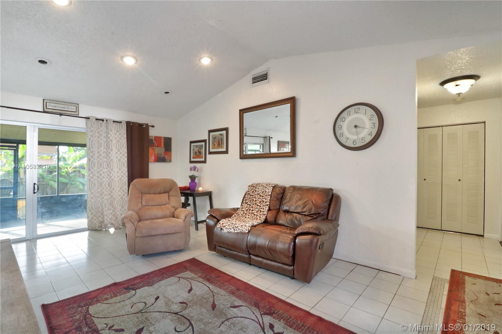 Beautiful 4 bedroom / 2 bathroom / home located in a great community in the county line between Miami Dade & Broward. This property feature Tile floor, Granite counter top and stainless steal appliances. Sliding glass door leading to patio is hurricane impact. There are also hurricane shutters for all around. Home has a nice layout and a big back yard featuring a screened-in terrace, great for entertainment, and a big storage shed. Close to all points of interest and main highways such as Palmetto, turnpike, I75 & I 95.
