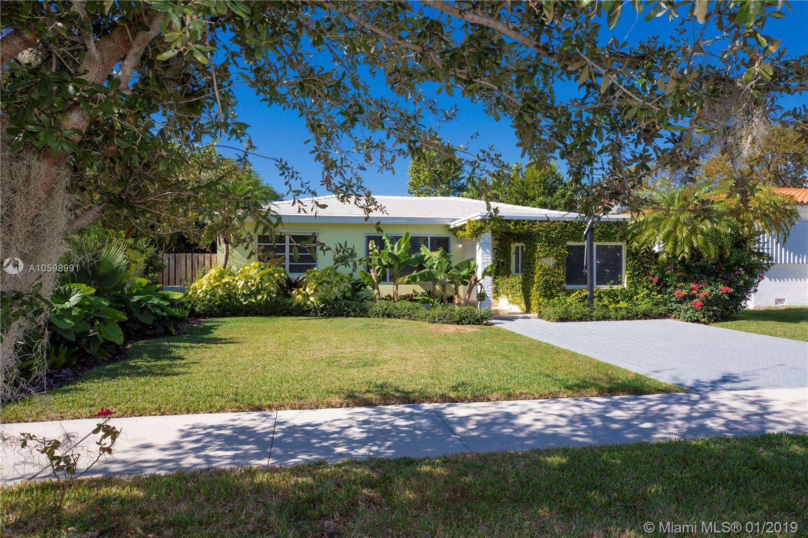 Nestled among million-dollar waterfront estates in Biscayne Point, this fully-updated North Beach 3/3 is ready for you to move in! Sleek, open concept MIMO-styled home is anchored by a modern white kitchen featuring a glass backsplash & granite countertops. Master bedroom has wood floors & a walk-in closet; both guest rooms have extensive custom built-ins. French doors in main living area open to an awning-covered patio overlooking a sparkling pool, lush tropical landscaping featuring exotic palms and expansive artificial-turfed green space. Updated electric, plumbing, roof, bathrooms and a brand new 5-ton A/C make this home a perfect 10! Enjoy living in the exclusive Biscayne Point with a 24-hr guard gate & located just minutes to the Beach & luxurious shopping. Sq Ft per tax rolls.