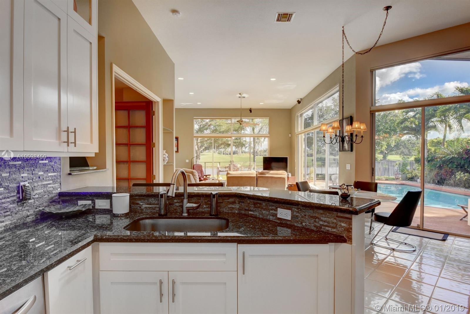 LOOKING FOR A RARE GOLF & LAKE VIEW? WALKING DISTANCE TO WESTON HILLS CC AND WESTON TOWN CENTER. TUCKED IN THE GATED COMMUNITY OF GRAND PALMS. CUSTOM BUILT REGENCY HOME WITH OVERSIZED 13,394 SQ FT LOT, COVERED PATIO/POOL, FULLY FENCED WITH RARE GOLF/WATER VIEWS. SOARING CEILINGS, SHOW LIGHT AND BRIGHT. BRAND NEW CONTEMPORARY WHITE KITCHEN SHAKER CABINETS*STUNNING GRANITE COUNTERTOPS*STAINLESS APPLIANCES*DBL OVEN*UNDER MOUNT SINK* VERY RARE GAS STOVE,DRYER, AND 2 WATER HEATERS * GREAT SQUARE FOOTAGE WITH OVER 3100 SQ FT UNDER AIR.3 SPACIOUS BEDROOMS, 3 RENOVATED BATHS. IMPECCABLY MAINTAINED WITH AMAZING SUPERSIZED FAMILY ROOM (CAN CONVERT TO MORE ROOMS)ACCORDION SHUTTERS.HURRICANE IMPACT FRONT DOOR* RENOVATED CABANA BATH*NEW GARAGE DOORS*NEWER A/C AND ROOF*REMODELED MASTER BATH