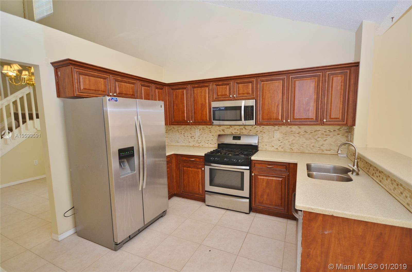 Spacious and bright 3 bed,2.5 bath, 2 car garage two story home located in a great community in Miramar. This home offers over 2000 sq.ft.under air. Great floor plan master bedroom on the first floor, vaulted ceilings, brand new carpet in the bedrooms and tile floors in living areas, recessed lighting. Home freshly painted inside. Details include kitchen with granite countertops and updated kitchen cabinets, stainless steel appliances and gas range. Newer gas water heater. Master suite with walk-in closet. Large master bath with separate shower and tub, and double sinks. Large fenced backyard with room for a pool. A must see.