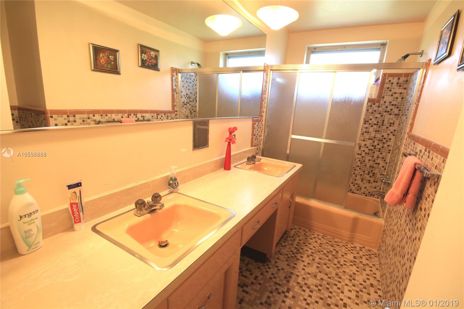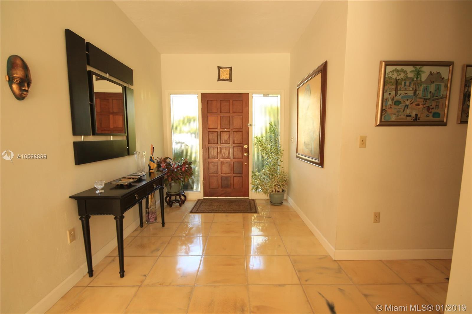LOCATION, LOCATION, LOCATION…. This hidden gem has 3 bdrms, 3 baths + den. located in a quiet street lined with matured trees. This home boast large and rare Cuban tiles in the foyer, living room/dining room combination & the den could be used as a 4th bedroom. The bedroom floors are fully covered with laminated wood design. The home has new appliances, new granite countertops, new Trane A/C, solar heated 15’X30’ pool with new water pump. 2-car garage. Tropical fruit trees adorn the backyard. This home is centrally located and close to Miami International Airport, U of M, Dadeland & Merrick Park Malls in Coral Gables, Downtown, Coconut Grove and the Brickell Financial District., Hospitals and children parks. Also included is custom designed, easy to install hurricane shutters.