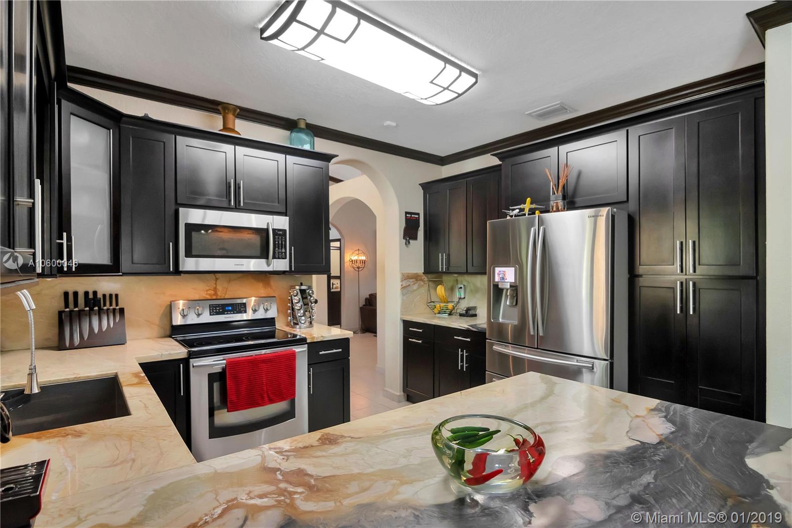 Spectacular one-story home in Miami Lakes area with NO HOA! 4 bedrooms and 2 1/2 baths. The house has been upgraded with no expenses spared in the renovation. Amazing Kitchen with beautiful Granite Countertops, real wood cabinetry & Top of the Line Stainless Steel Appliances. The home features renovated bathrooms, New high efficiency Lennox A/C unit, Custom Blinds, Crown Molding, Impact windows and new lighting fixtures from Restoration Hardware. The home is freshly painted and new built-in cabinetry has been installed in all the bedroom closets. It has a beautiful Salt water POOL with security fence, 8 security cameras around the house, professional Landscaping and newly installed outdoor fence. NO ASSOCIATION FEES! LOW TAXES NO CDD!!! Conveniently located off of I-75