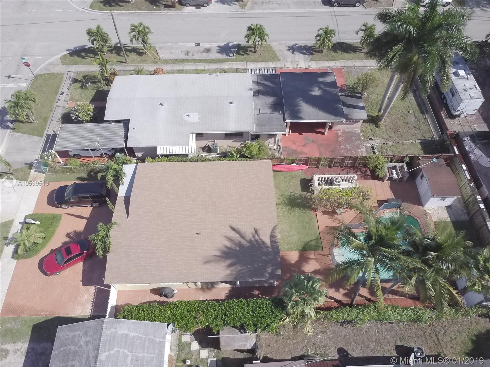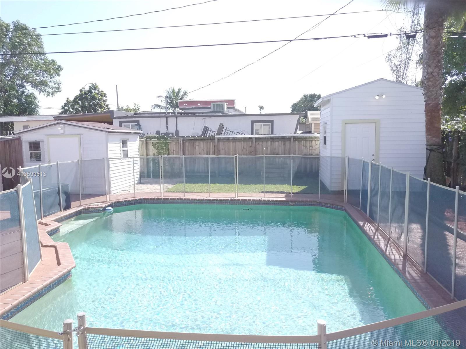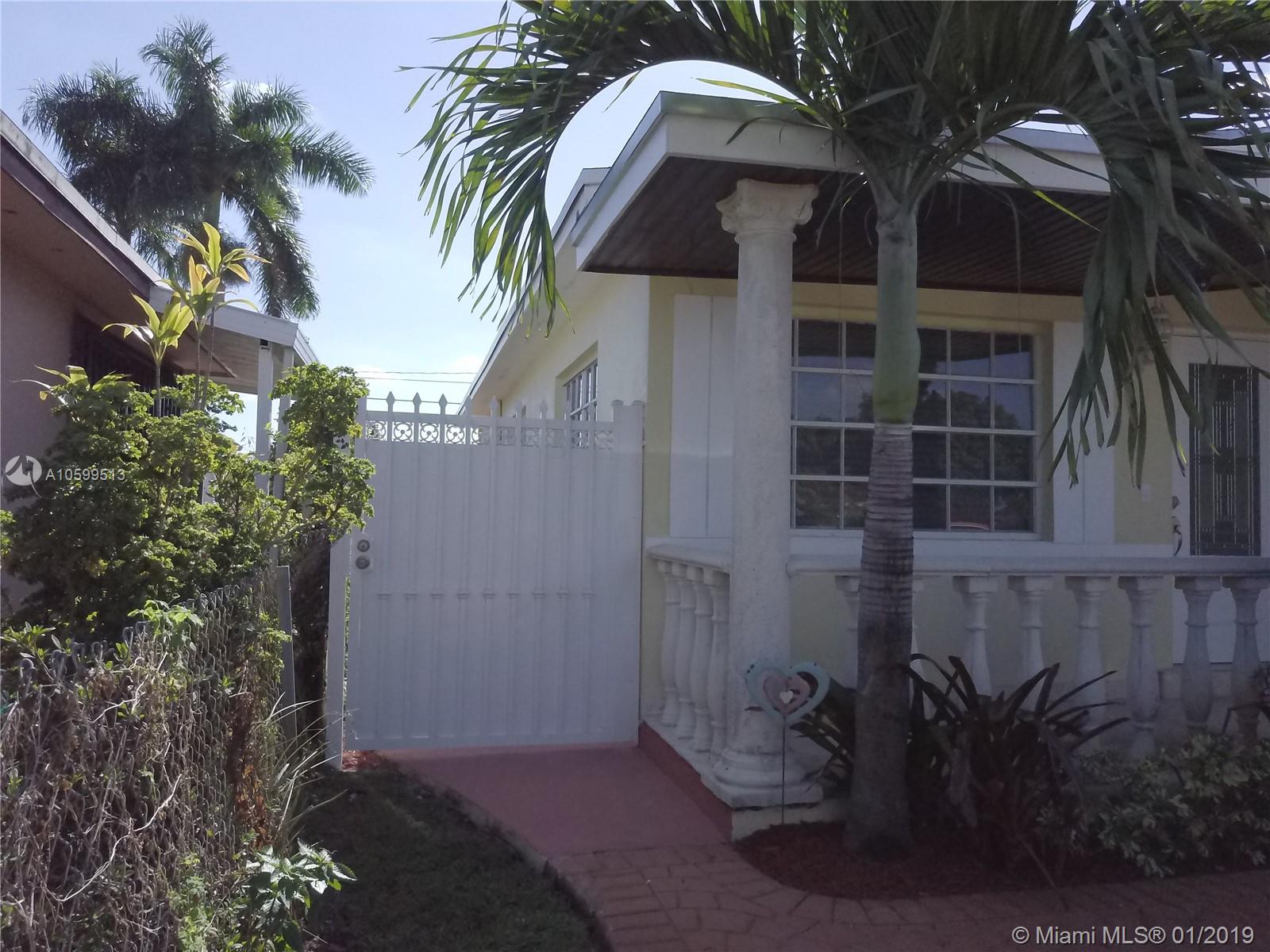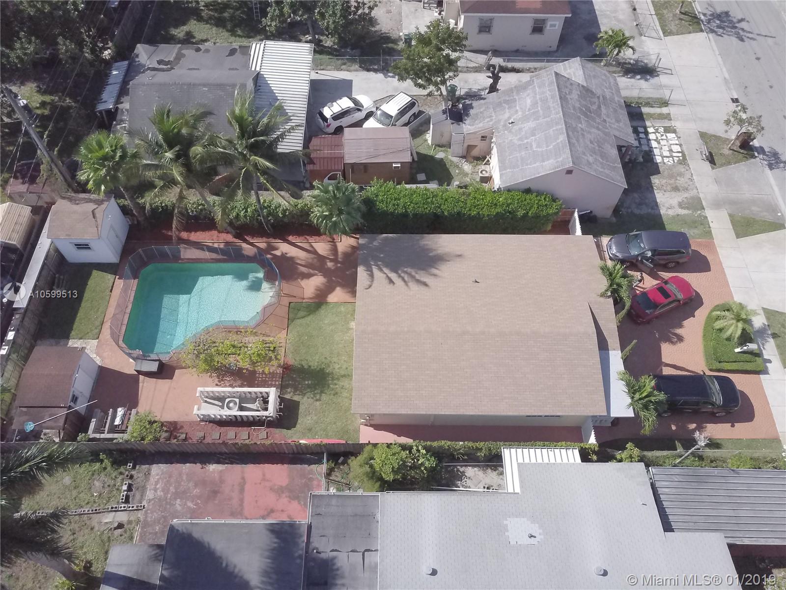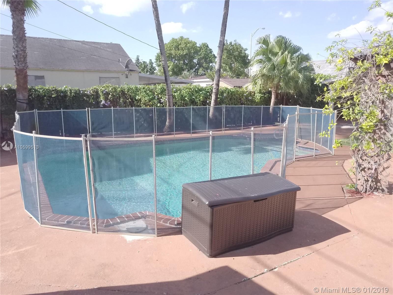 Lovely 3 bedroom 1 bath single family home on a large lot with an enchanting landscape. Key West style coconut and palm trees surround an oversized pool, with climbing vines in the back. Bonus 2 garages in the back yard, one of them being a 12 x 10 x 12 ft high garage with a shingle roof and running electricity that can easily be converted into an office or an efficiency. Brand new roof, installed less than 4 months ago, with permits and receipts. This tropical oasis takes you to an abstract relaxation far beyond the purchase price of the Hialeah neighborhood.
