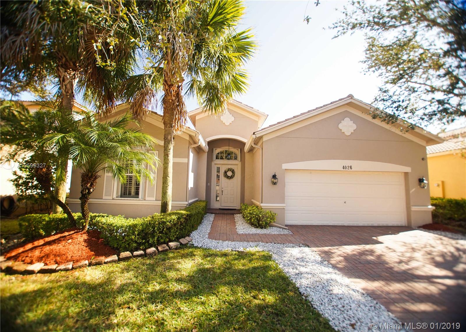 DESIRABLE WHITEWATER MODEL IN ISLES AT WESTON. THIS BEAUTIFUL 1 STORY 4BR/3BA SPACIOUS HOME IS LOCATED ON THE LAKE ACROSS FROM THE MAGNIFICENT CLUBHOUSE. UPGRADED WITH DIAGONALLY INLAID TILE IN THE SOCIAL AREA & LAMINATE WALNUT PIANO-FINISHED FLOORING IN BEDROOMS. TASTESFULLY UPDATED KITCHEN WITH GRANITE COUNTER TOPS, SS APPLIANCES & WOOD CABINETS. HURRICANE PROOF FRENCH DOORS LEADING TO THE PATIO AREA & HURRICANE SHUTTERS ON ALL OTHER WINDOWS. DECORATIVE BALANCES & CURTAINS PLUS PLANTATION SHUTTER STYLE WINDOW BLINDS. BUILT IN MASTER CLOSET & DUAL SINKS IN MASTER BATHROOM. SECURITY CAMERAS INSTALLED. ELECTRICAL PANNEL HAS BEEN WIRED FOR GENERATOR USE IF NECESSARY. WHOLE HOME SURGE PROTECTION. BACKYARD AREA HAS SPACE FOR A POOL, TOTALLY FENCED WITH A PRIVACY HEDGE ON BOTH SIDES. MUST SEE!