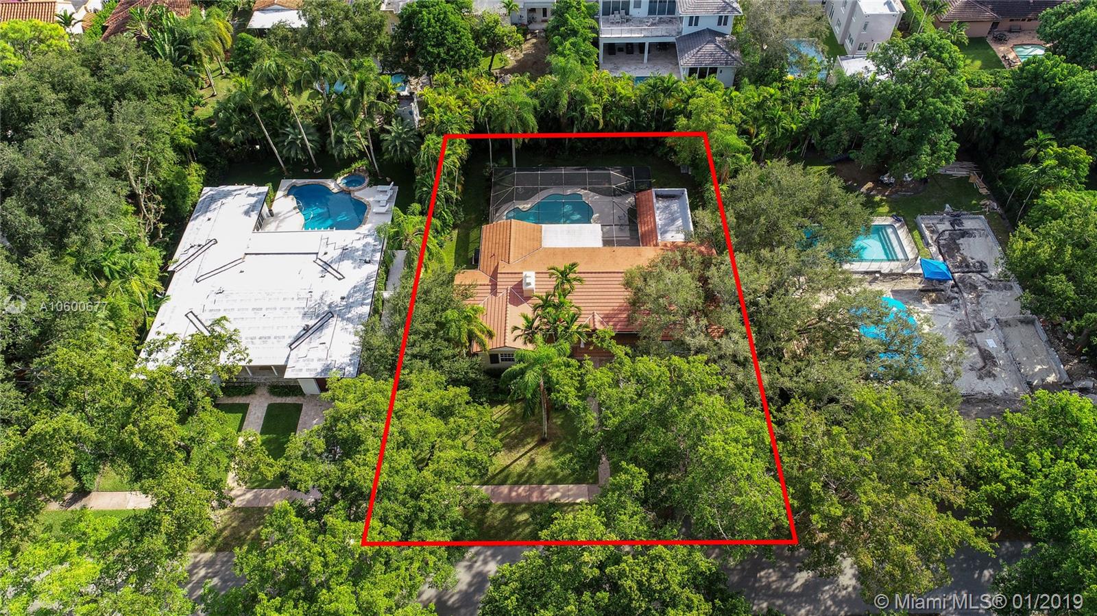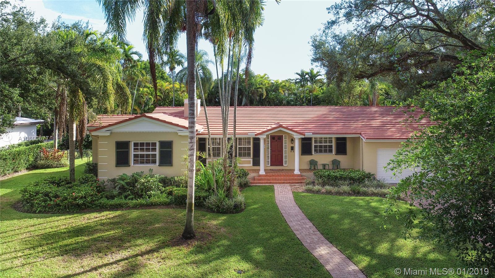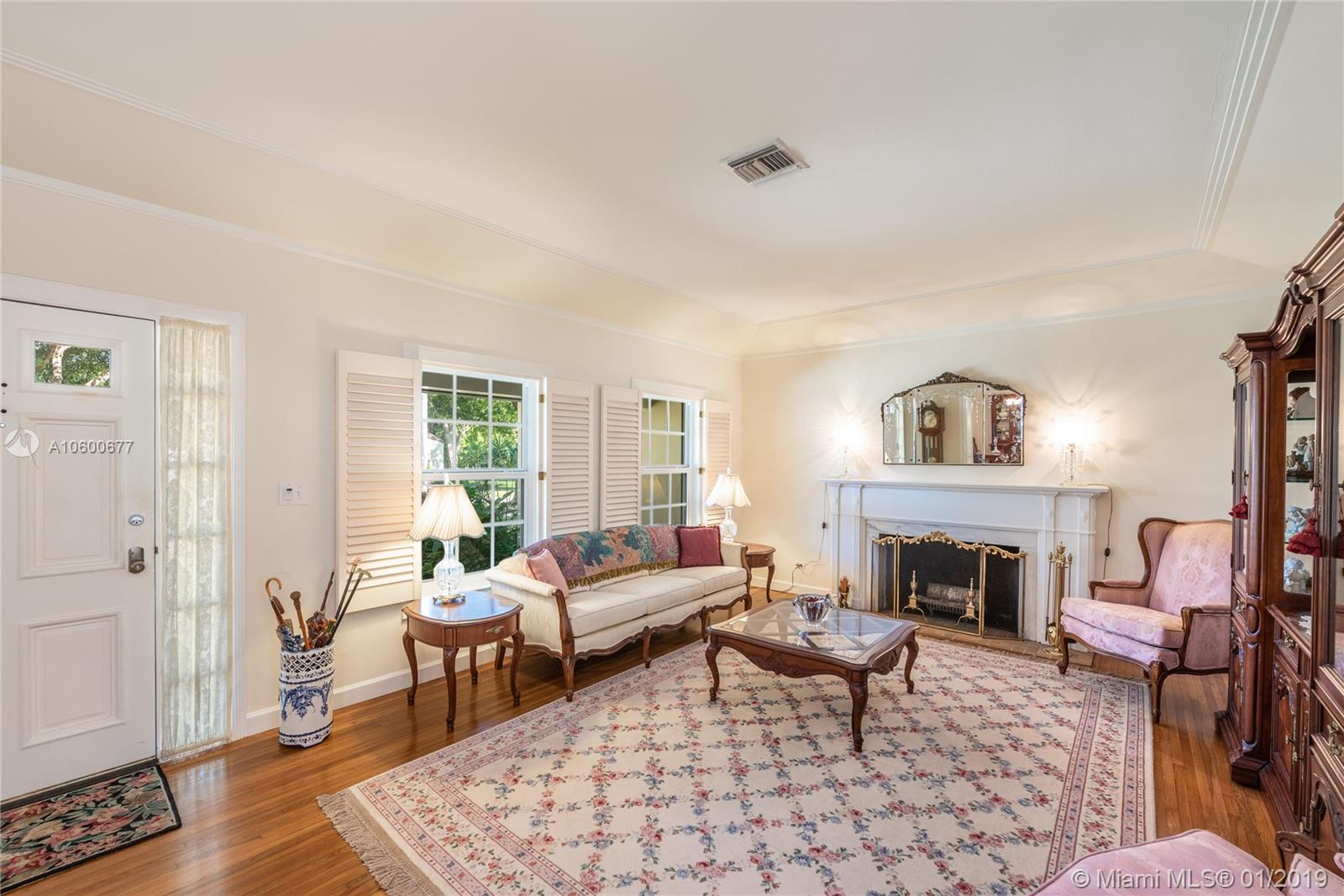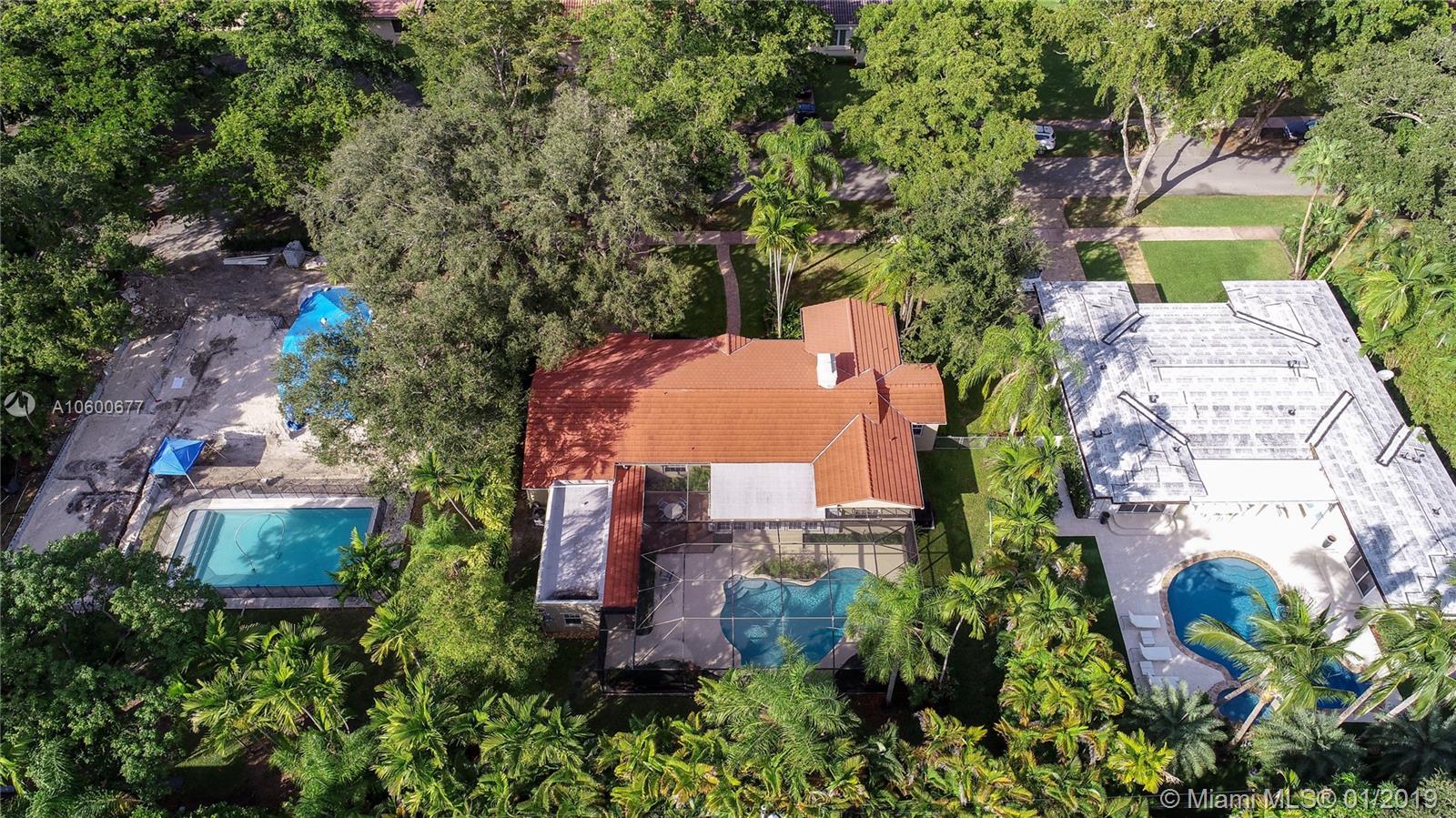New Listing in the Golden Triangle near the Gables Library. One-story traditional home. 3 bdrm/2 bath + separate guest quarters (in-law suite) with a bath that overlooks the pool. Another full bath is next to the laundry room which could be a pool bath. (4/4 total). Also, space to create a large office under an existing roof. Living room w/fireplace and Formal dining room. A large Family room w/beamed ceiling has a wall of glass doors to the sparkling pool. Light, bright kitchen with new appliances and expansive counter space. The 2-car garage has a wide Chicago brick driveway. Over 2,500 adj.sq.ft on a 13,900 lot. Hardwood floors. Crown moldings. Newer roof. Impact windows/shutters for doors. Some updating will make this house a very special home for your family. FIRM PRICE. Easy to show.