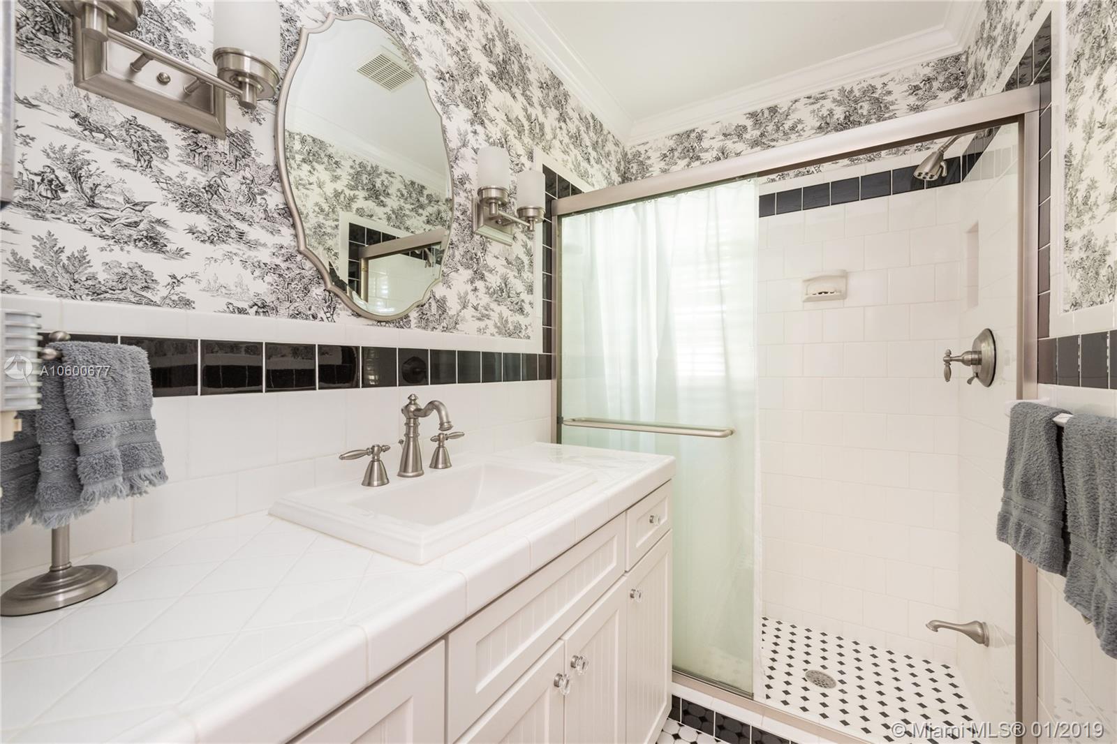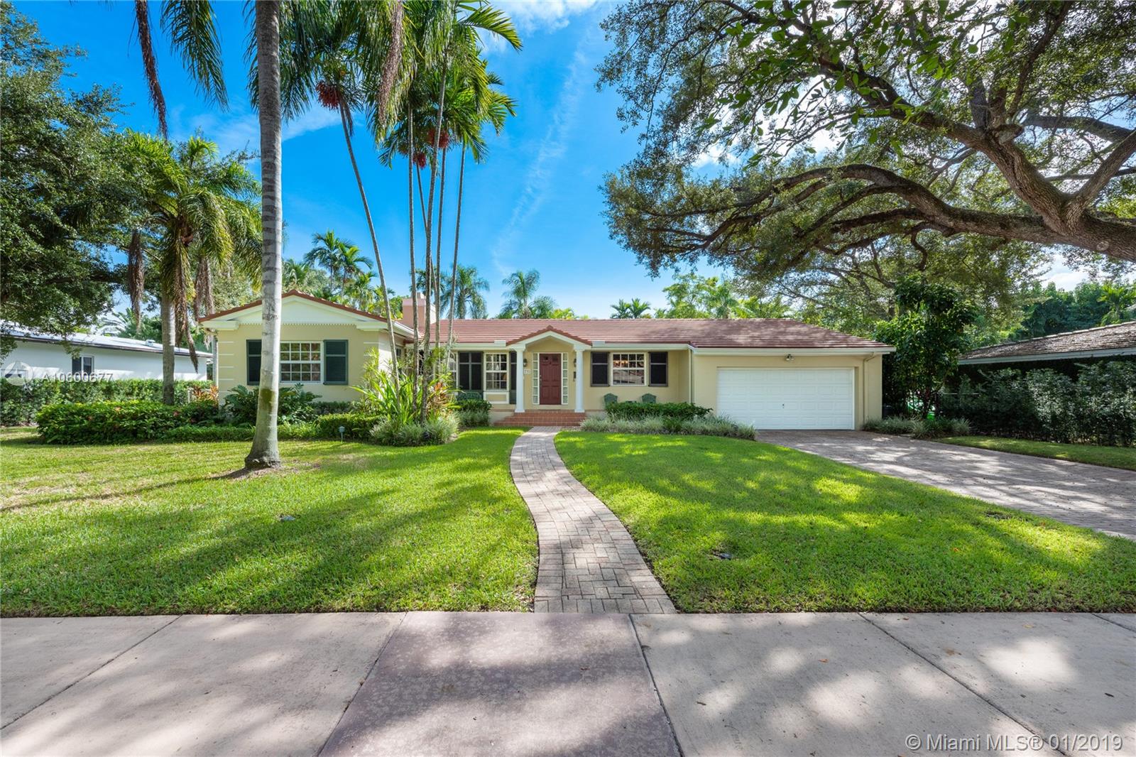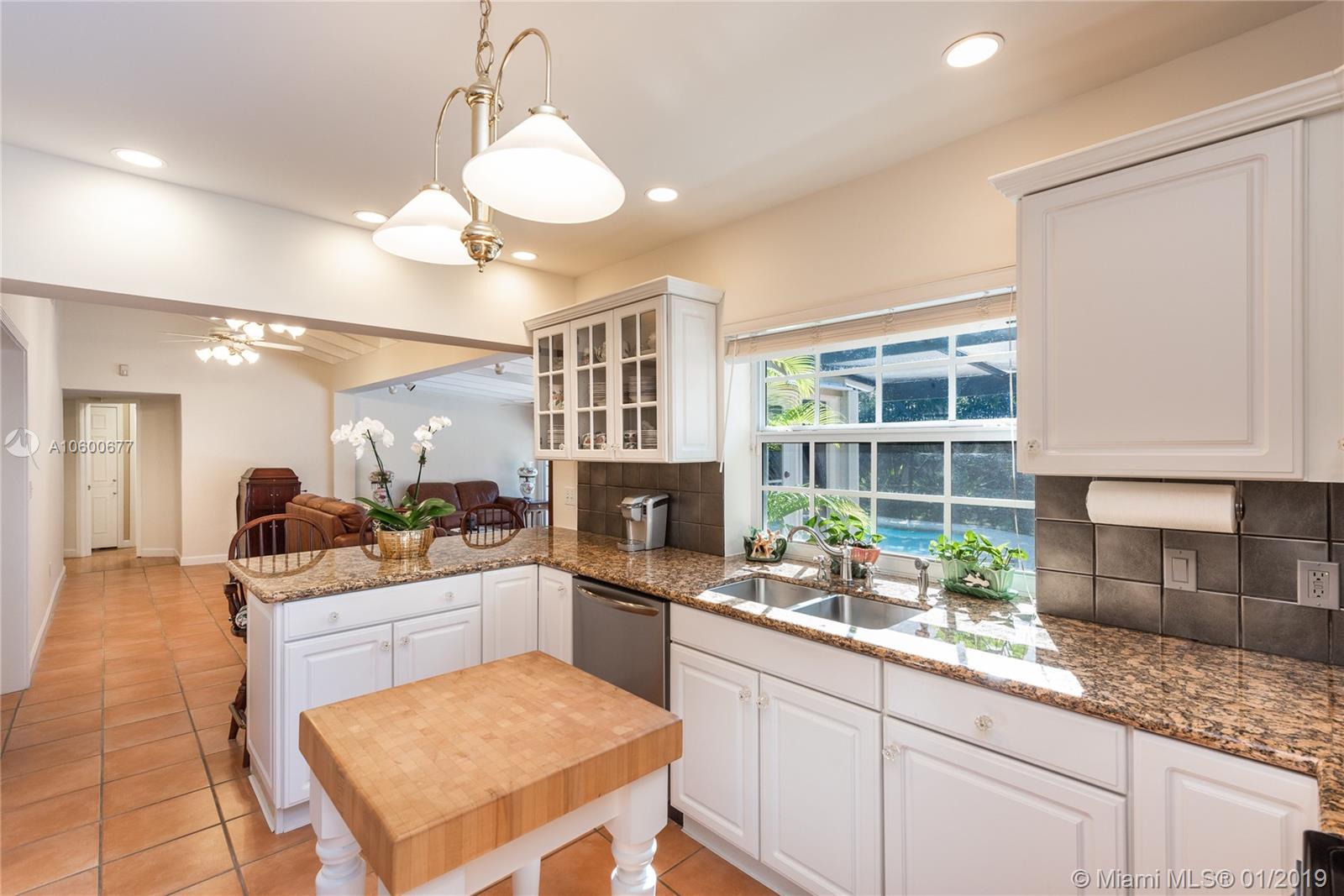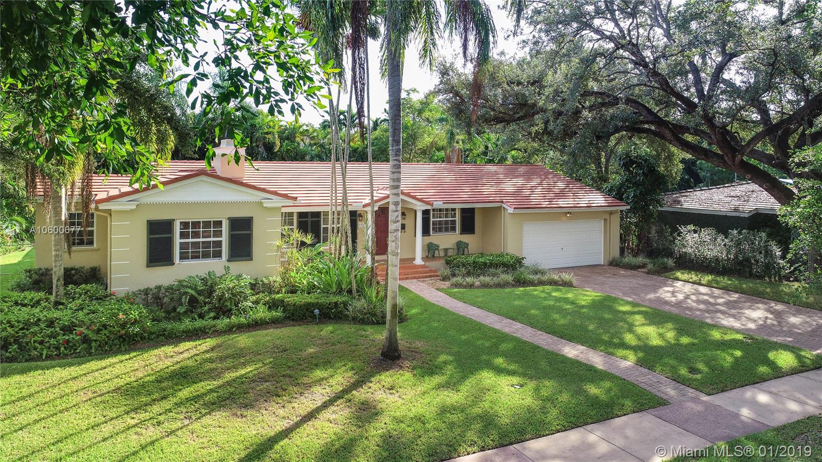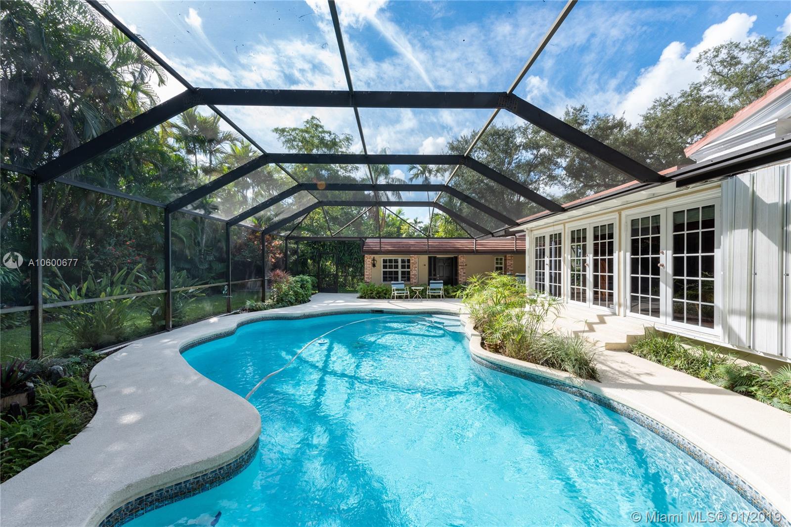 New Listing in the Golden Triangle near the Gables Library. One-story traditional home. 3 bdrm/2 bath + separate guest quarters (in-law suite) with a bath that overlooks the pool. Another full bath is next to the laundry room which could be a pool bath. (4/4 total). Also, space to create a large office under an existing roof. Living room w/fireplace and Formal dining room. A large Family room w/beamed ceiling has a wall of glass doors to the sparkling pool. Light, bright kitchen with new appliances and expansive counter space. The 2-car garage has a wide Chicago brick driveway. Over 2,500 adj.sq.ft on a 13,900 lot. Hardwood floors. Crown moldings. Newer roof. Impact windows/shutters for doors. Some updating will make this house a very special home for your family. FIRM PRICE. Easy to show.