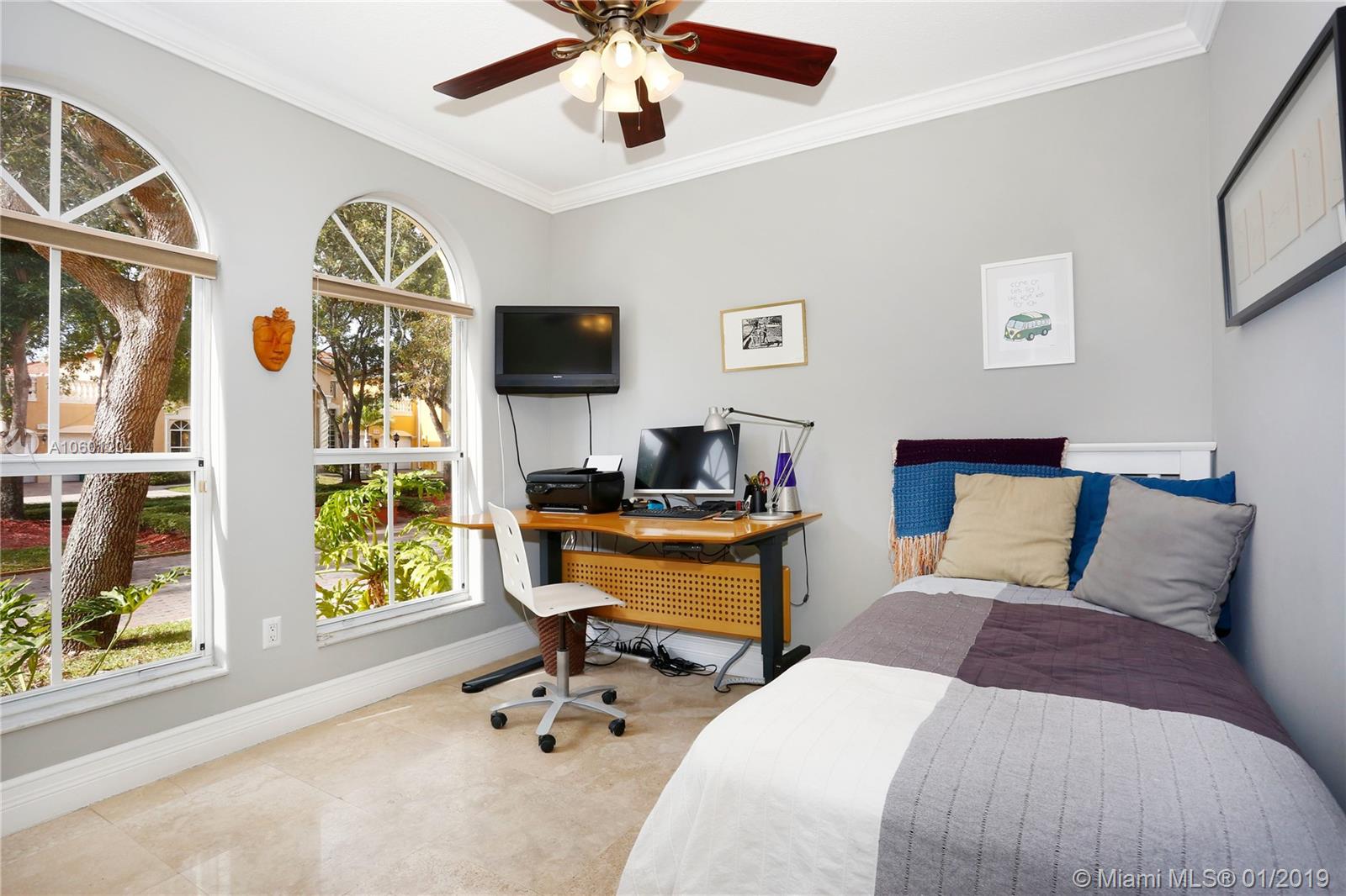 The lovely play of high volume ceilings, natural light and a rich palette of wood, travertine and granite makes this home come alive. Living and entertaining space extends outdoors to the large, private patio and the rooftop garden terrace. Open loft, with huge windows will be everyone’s favorite spot; it's perfect for a home office. Thoughtful design choices allows a full spectrum of design options from traditional to modern decor. Newer AC and appliances, upstairs baths both renovated. Located in the small community of Piazza Vecchia. This stunning home sits across from the community’s signature feature, a beautifully shaded Piazza where you will find yourself each afternoon enjoying a shady spot in the park with the company of neighbors— a little bit of Italy in Doral. Two car garage.