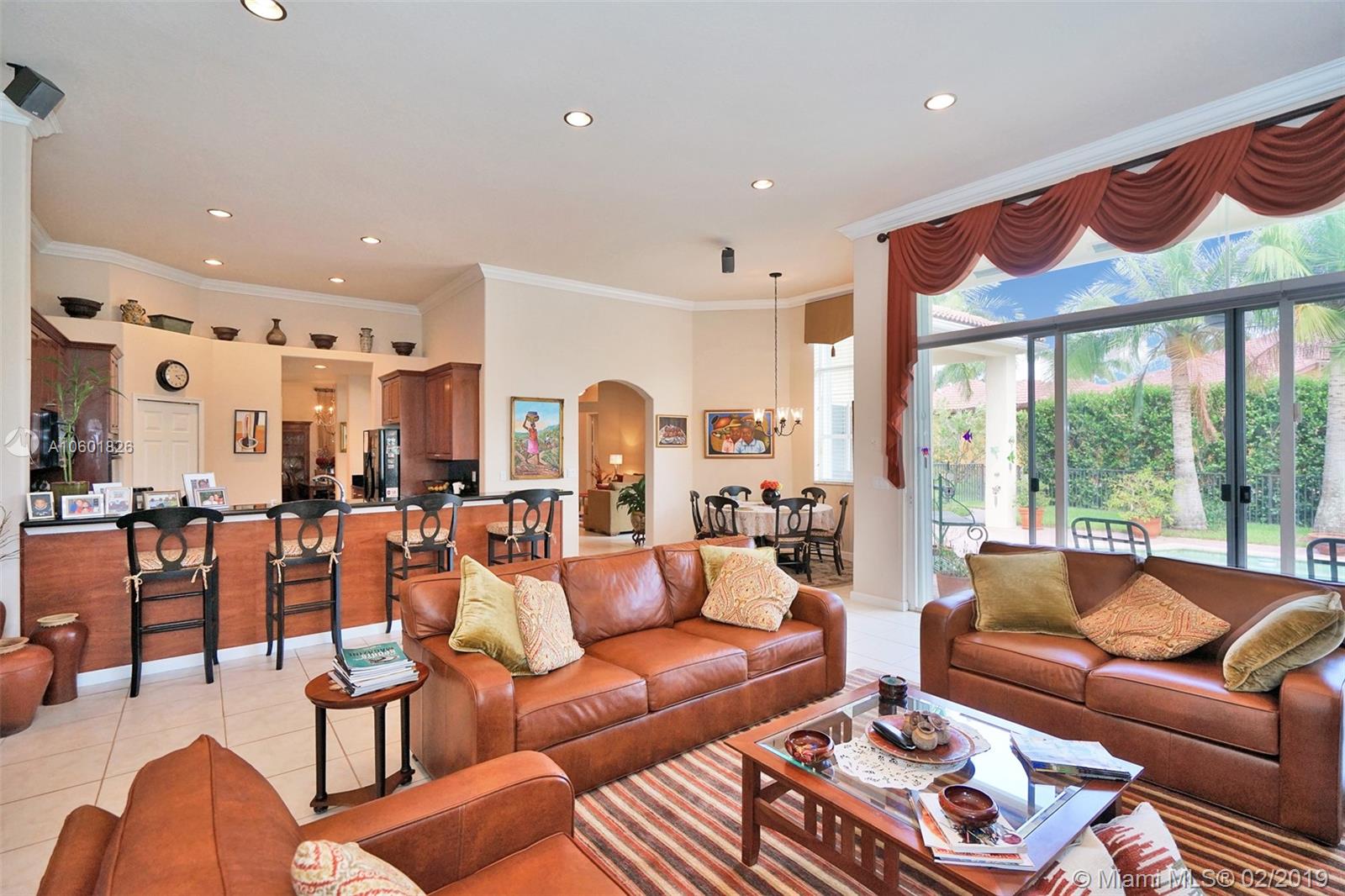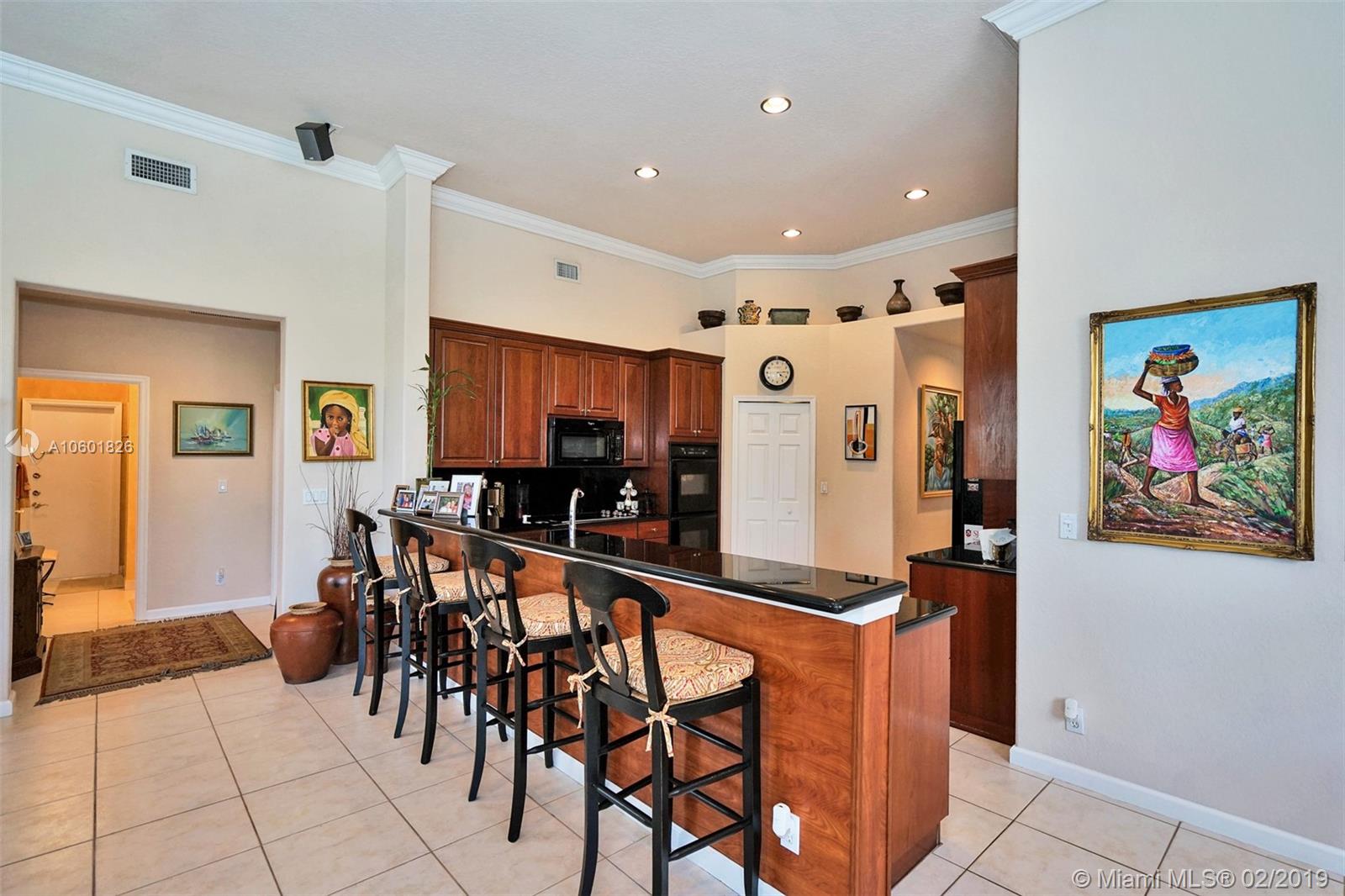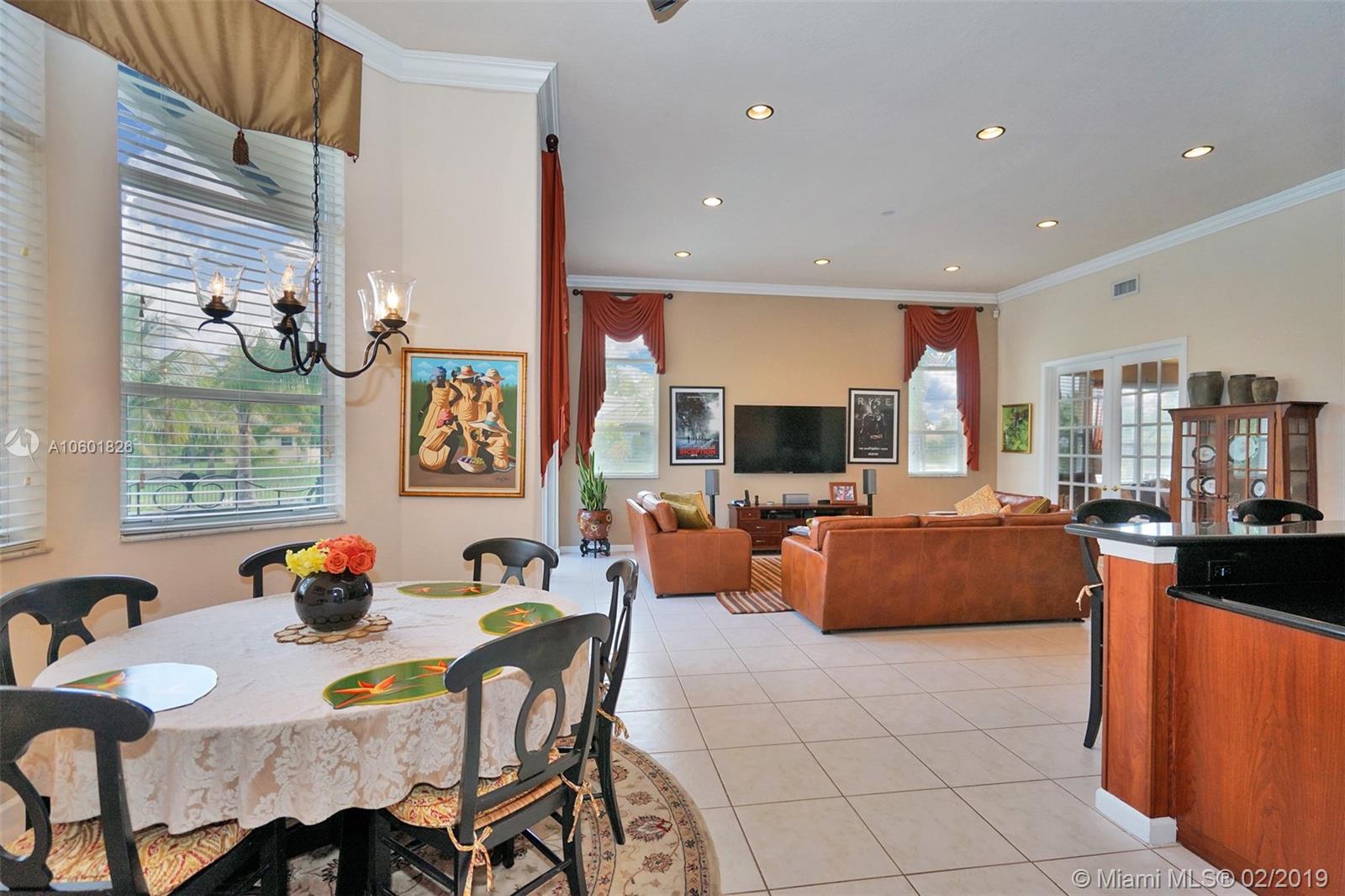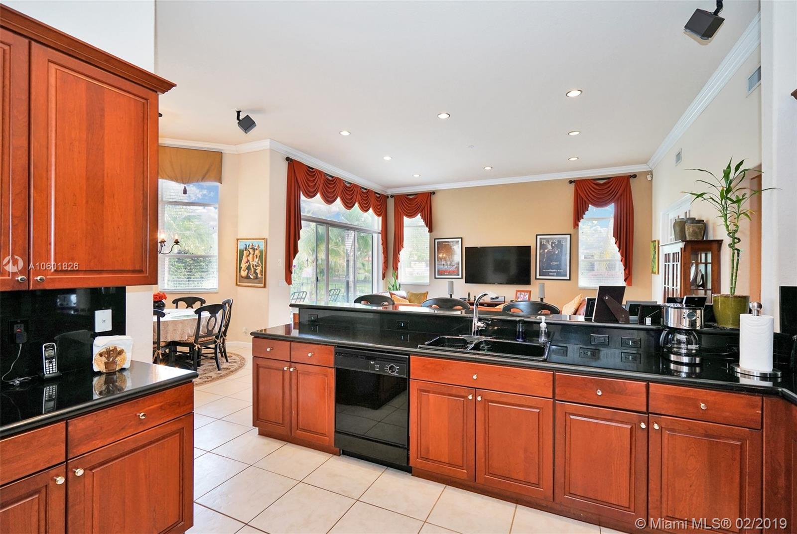 Gorgeous Waterfront Pool Home on an oversized lot. Featuring 5 Bedrooms, 3 Bathrooms, plus Den, & 3 Car Garage. Home Boasts 3,538 SF under air w/ High Ceilings, Crown Moldings, Split/Open Floor Plan, & Lots of Natural Light. Gourmet Chef’s Kitchen w/ Double Oven, Cherrywood Cabinets, Black Granite Countertops, Black Appliance, & Lg Pantry. Enjoy Entertaining in your Formal Dining Room with Butler Pantry/Bar. Master Bedroom w/ Beautiful Pool & Water View, Walk-in Closet. Lg Bedrooms w/ Ceiling Fans and Spacious Closets. Fenced Private Backyard w/ Free Form Heated Pool & Mature Landscaping. Home Protected w/ Accordion Shutters and 16 Camera Security System w/ DVR.