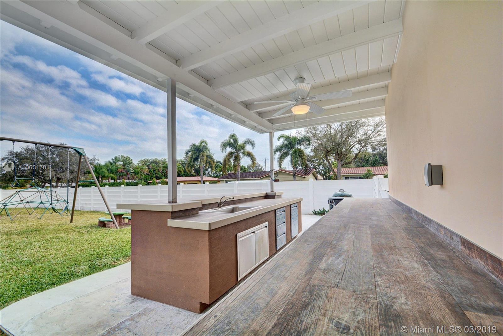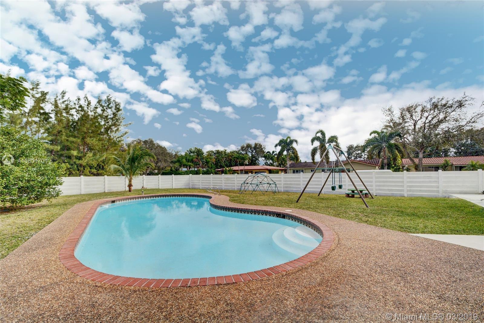 Absolutely gorgeous pool home completely remodeled to perfection w/ high end impact windows & doors throughout. Largest corner lot & one of biggest backyards in all Hollywood Hills! Living area is enormous, bright & beautiful w/ an exquisite vaulted tile ceiling, new tile floors & contemporary fireplace. Kitchen is incredible w/ cooking island w/ terrazzo counter tops, newer SS appliances & lavish kitchen cabinets. All bedrooms are large w/ excellent closet space, master bedroom is oversized with his/her walk-in closets. 1 bedroom downstairs w/ full bath accessible to pool area. Luxuriously renovated bathrooms. Oversized 2 car garage. Backyard is unbelievable w/ expensive complete outdoor kitchen, massive pool & gigantic fenced in backyard, wonderful for large parties & kids to play.