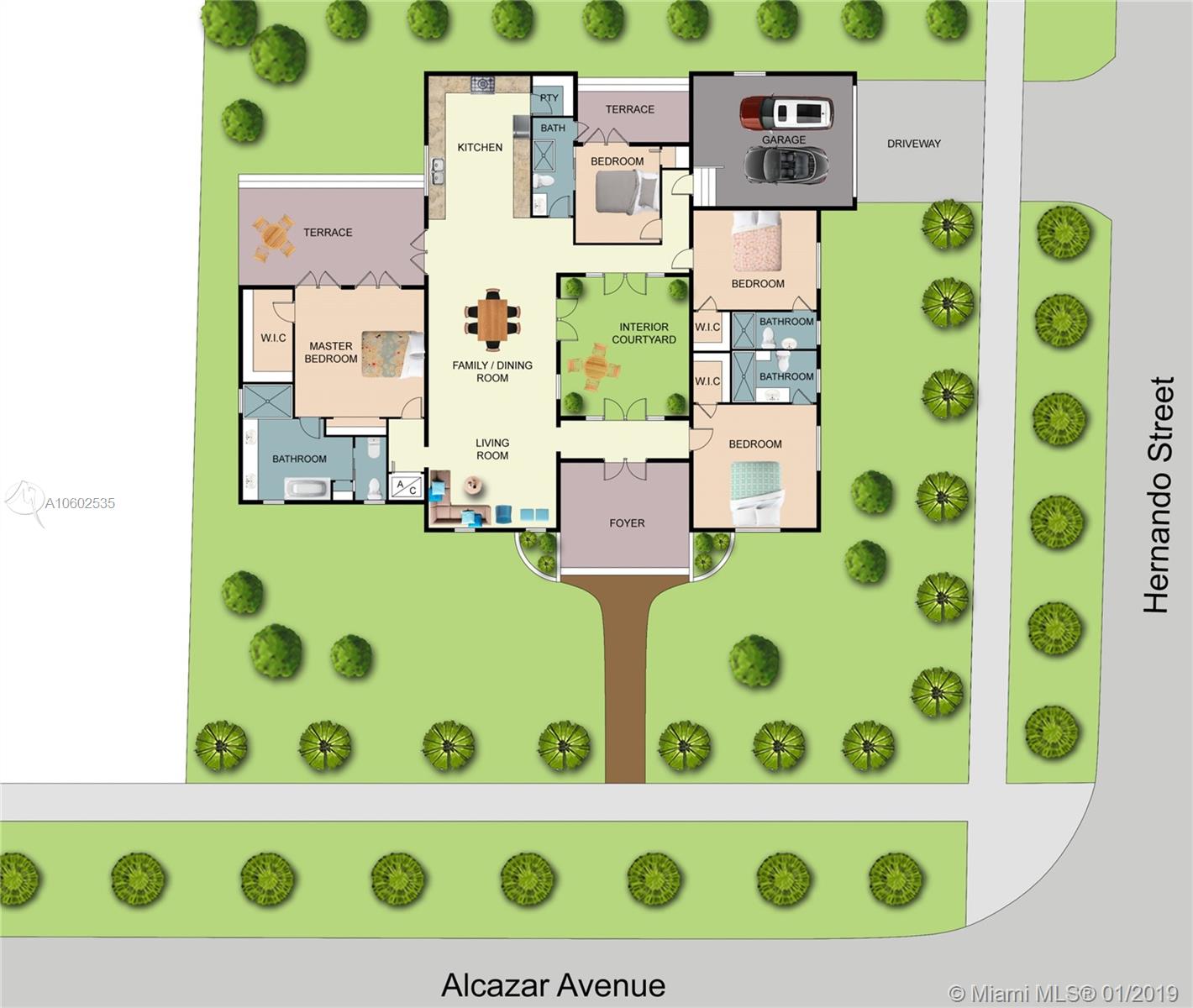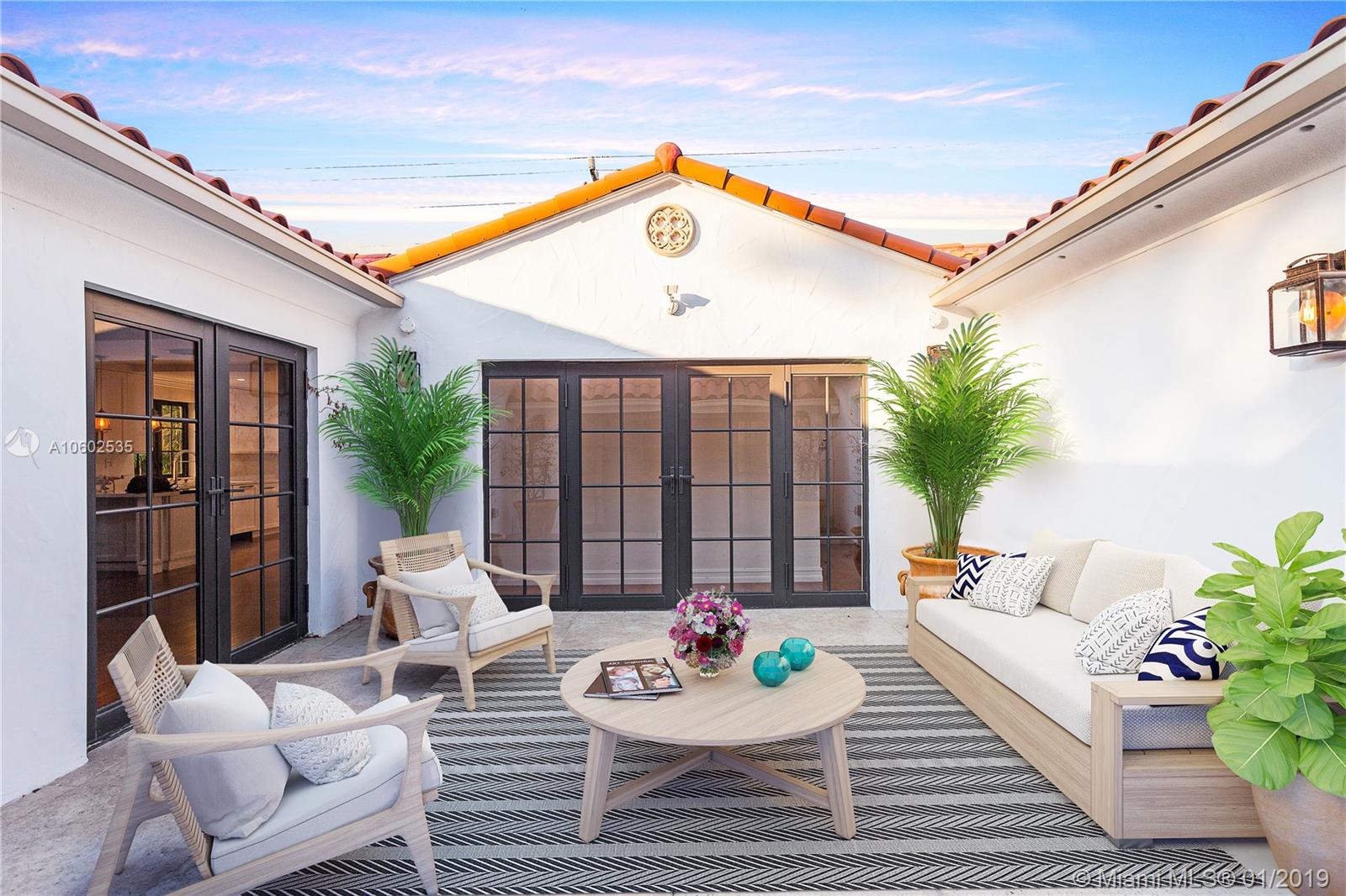 1930's historically designated villa now 100% renovated to absolute perfection! 3462 sq.ft per Coral Gables building plans, on a 10,000 sq ft corner lot, all on one floor, 4 bedrooms and 4 full baths, 2018 built new master suite, wonderful open floor plan with brand new, never been used white on white kitchen open to dining, living, interior courtyard and backyard raised patio area. Room for a pool with architectural drawings available. 2 car garage. Cathedral ceiling in living and dining area. Oak flooring. Foyer. Coveted location in Coral Gables Old Town Historic District within easy walking distance to all the delights of downtown Coral Gables - restaurants, cafes, shops, bookstores, art galleries and just a 15 minute Uber ride to Miami International Airport.