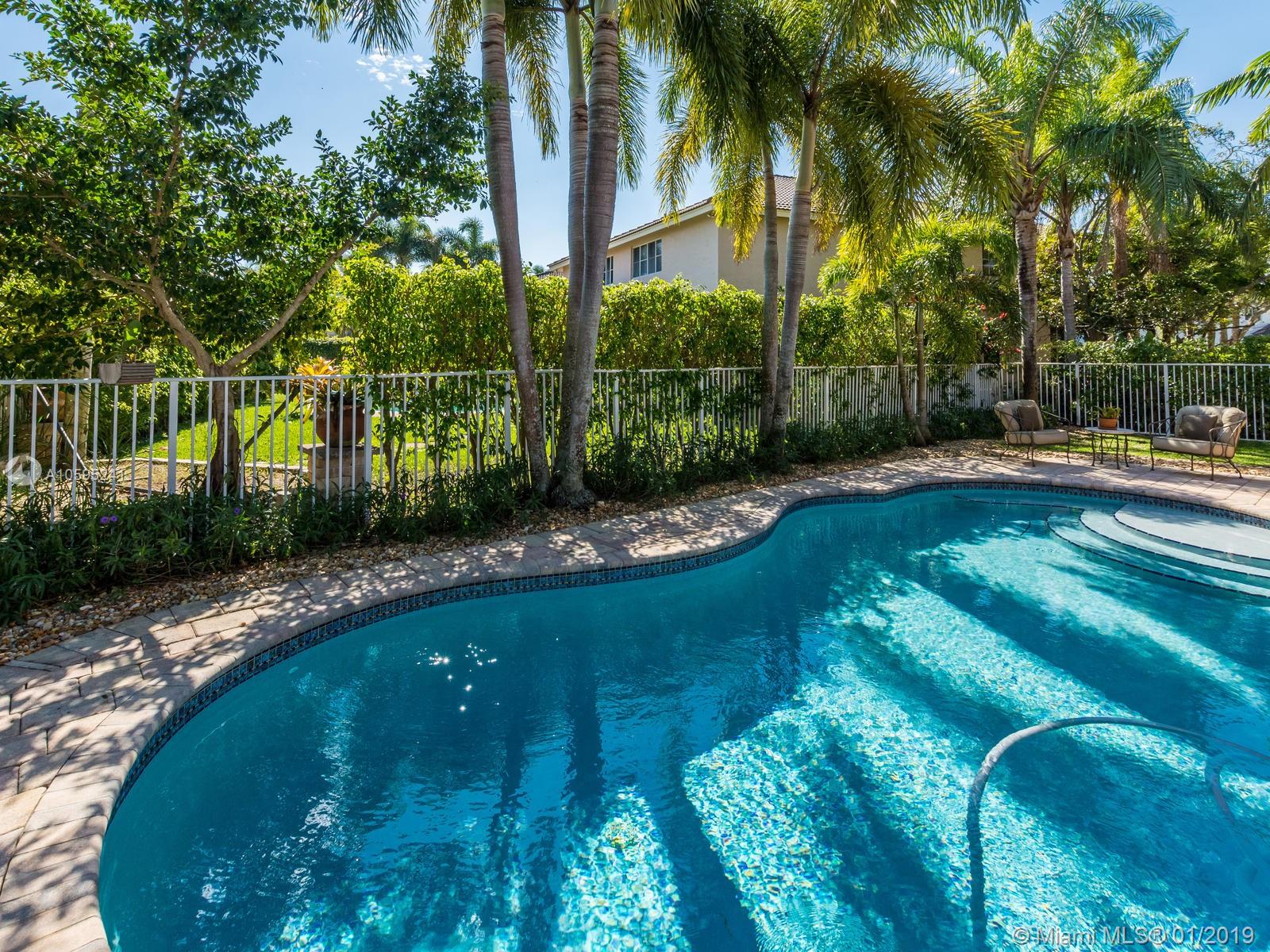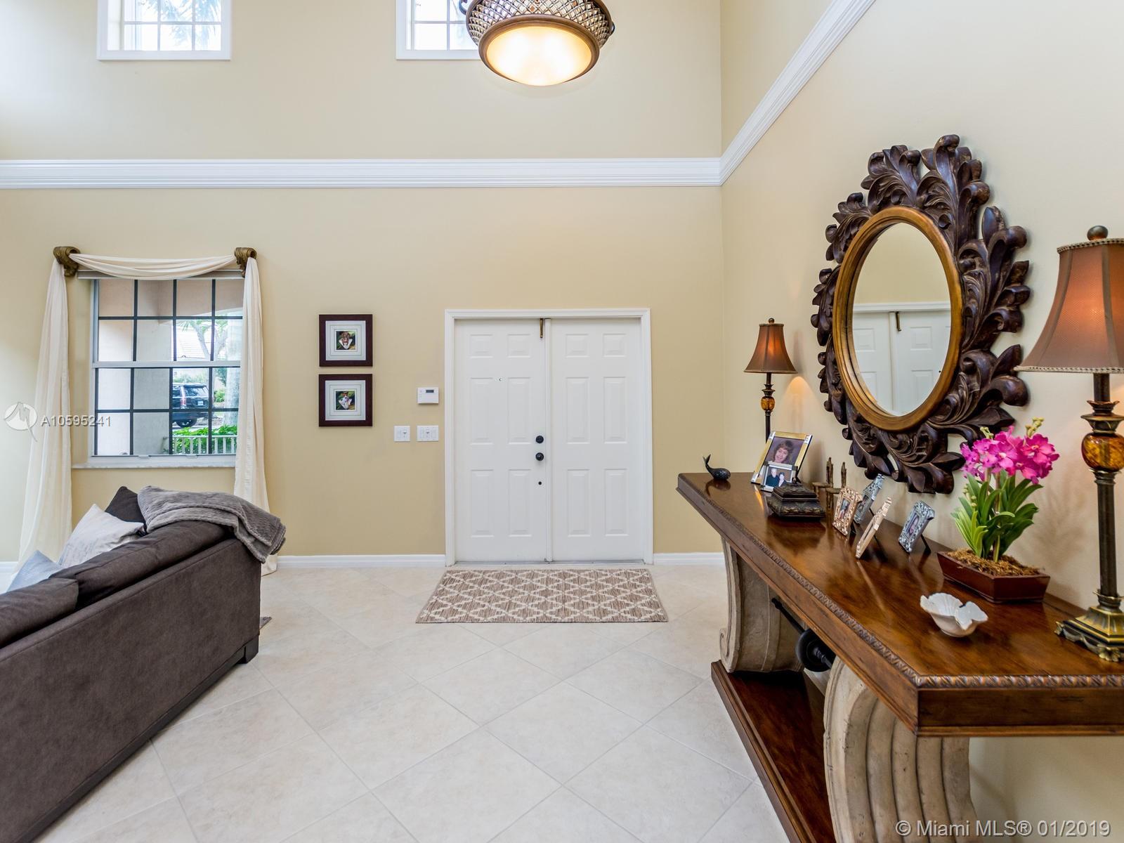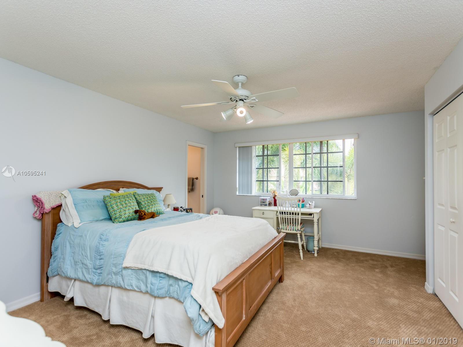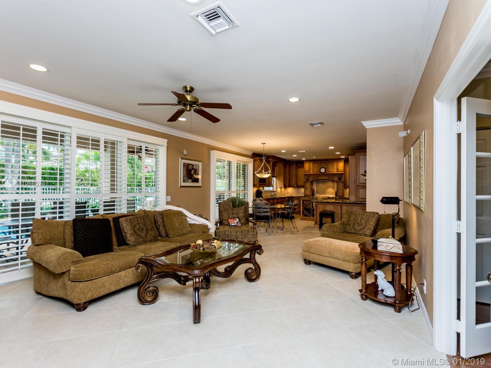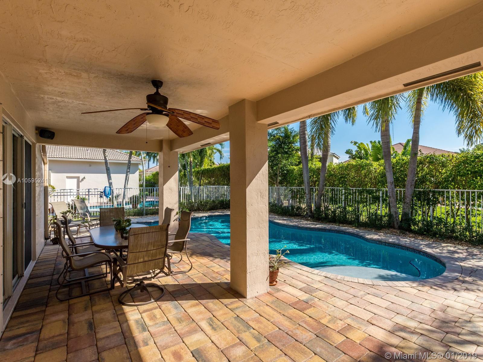 Pristine 6 bedroom/4 bath light and bright home with newer roof (2006) and new AC units (2017). Two story foyer, crown molding, neutral porcelain diagonal tile flooring, wood floor foyer and downstairs bedroom and upgraded carpeting in bedrooms/stairs. Stunning custom kitchen w/ granite, double oven, wood cabinets and top of line stainless steel appliances- perfect for cooking and entertaining. Open floor plan from kitchen to large family room w/ plantation shutters and adjacent bedroom w/ French doors. Grand master bedroom w/ updated master bathroom plus 4 large bedrooms incl. two with Jack & Jill bathroom. Tranquil backyard with covered patio, salt chlorinated pool and newer diamond brite. 2nd story has accordion hurricane shutters/first floor panels. Great neighborhood and A+ schools.