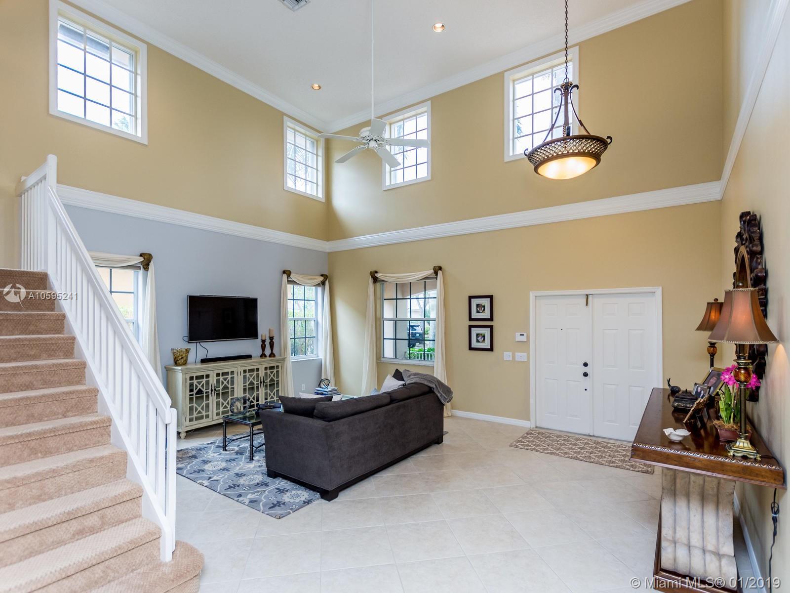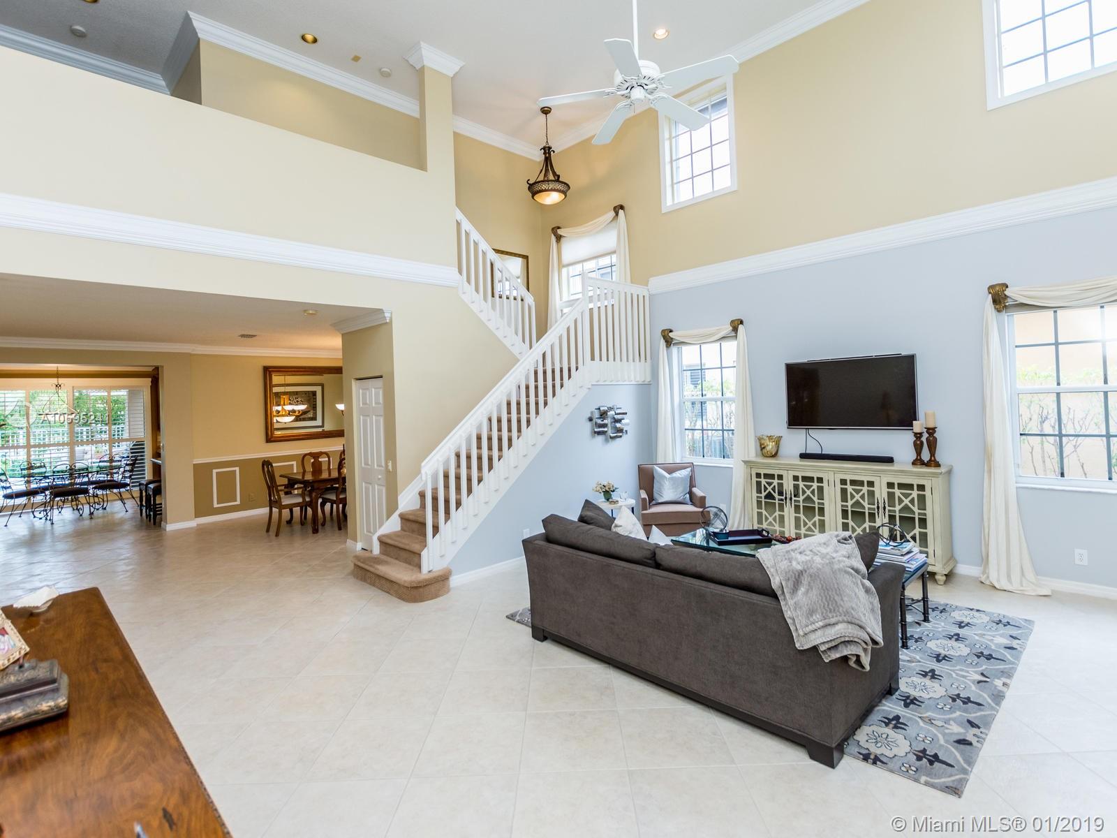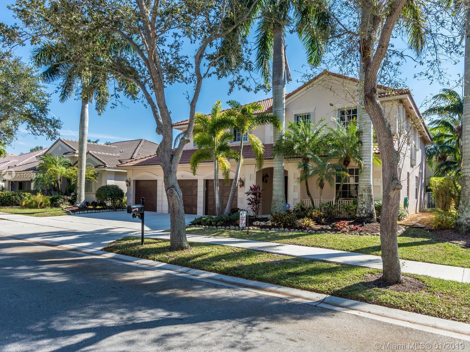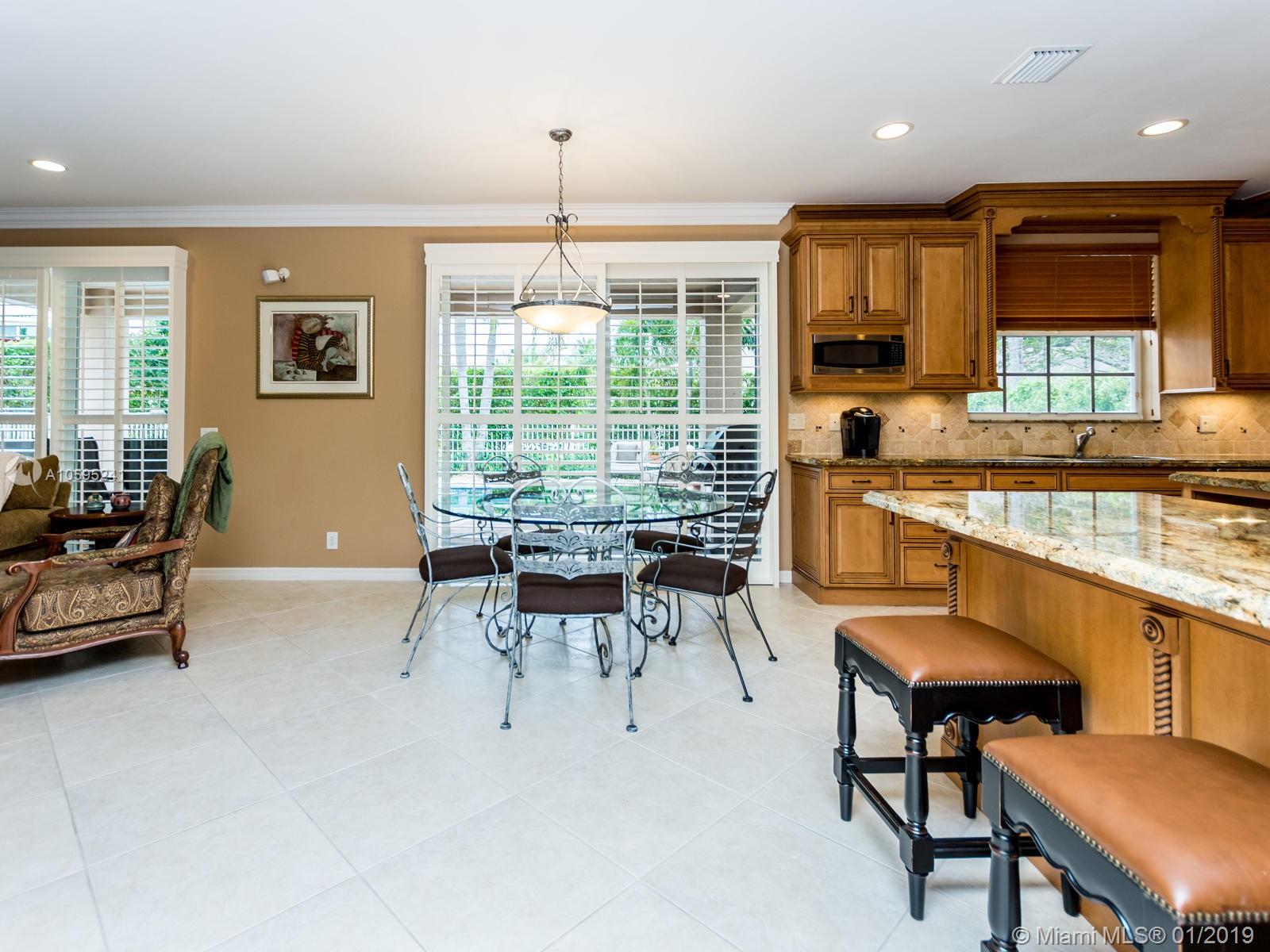 Pristine 6 bedroom/4 bath light and bright home with newer roof (2006) and new AC units (2017). Two story foyer, crown molding, neutral porcelain diagonal tile flooring, wood floor foyer and downstairs bedroom and upgraded carpeting in bedrooms/stairs. Stunning custom kitchen w/ granite, double oven, wood cabinets and top of line stainless steel appliances- perfect for cooking and entertaining. Open floor plan from kitchen to large family room w/ plantation shutters and adjacent bedroom w/ French doors. Grand master bedroom w/ updated master bathroom plus 4 large bedrooms incl. two with Jack & Jill bathroom. Tranquil backyard with covered patio, salt chlorinated pool and newer diamond brite. 2nd story has accordion hurricane shutters/first floor panels. Great neighborhood and A+ schools.
